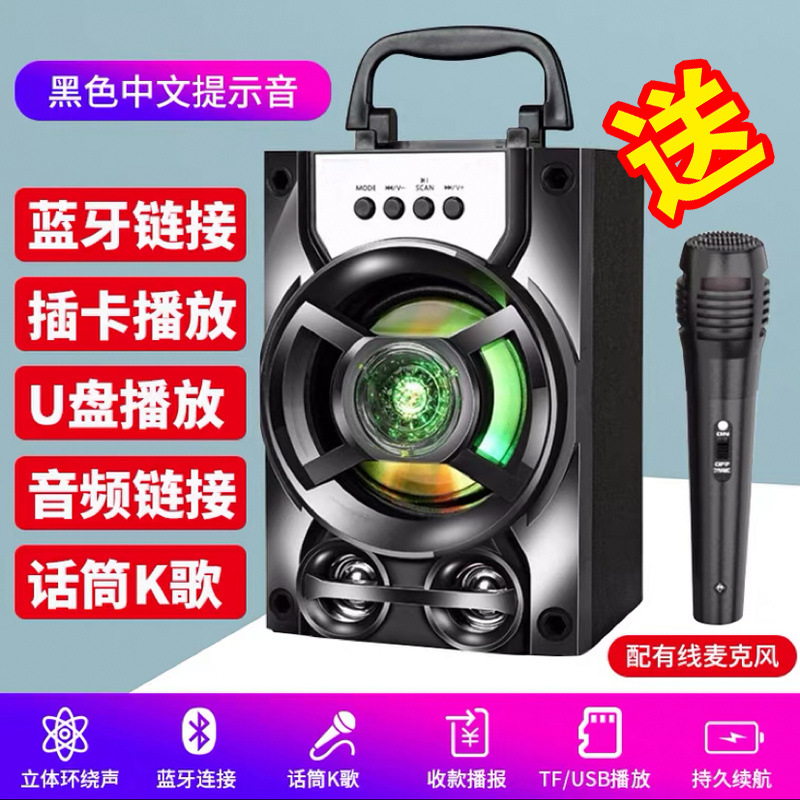 높은 음질 블루투스 사운드 큰 볼륨 노래 무거운 서브 우퍼 편리한 광장 댄스 휴대용 작은 소리 유선 마이크스토어 가기
