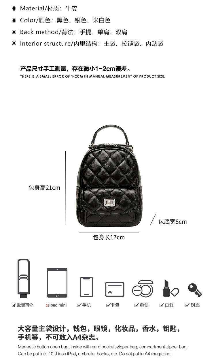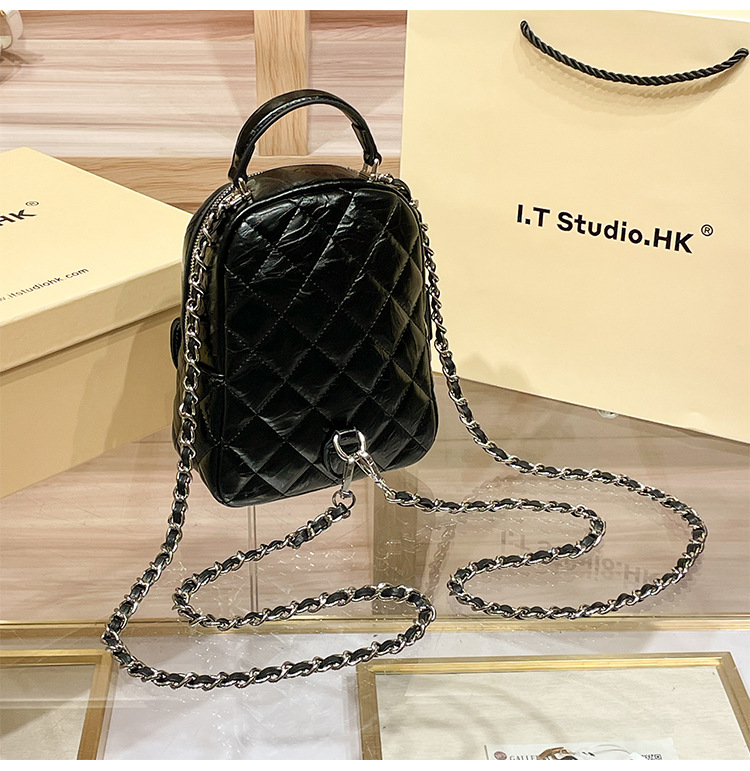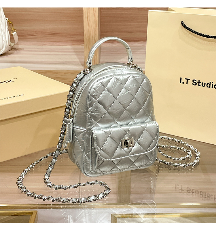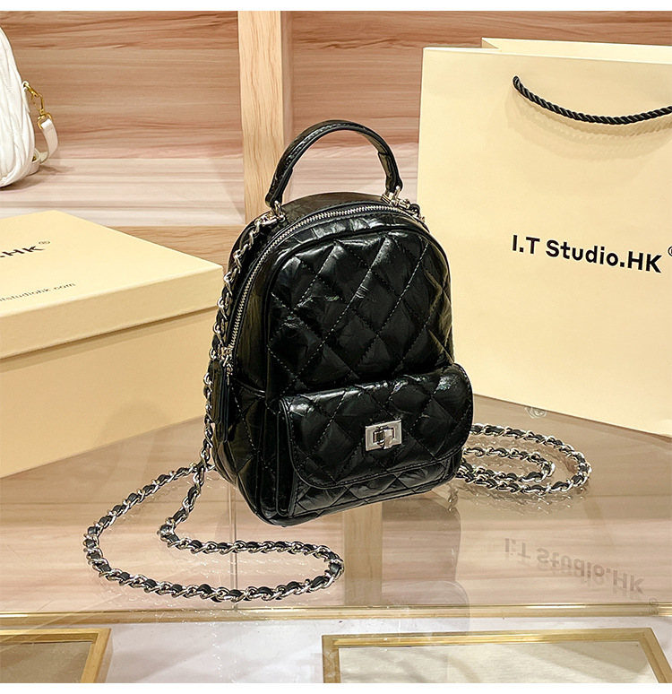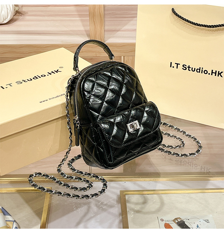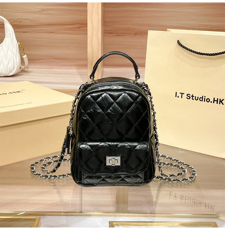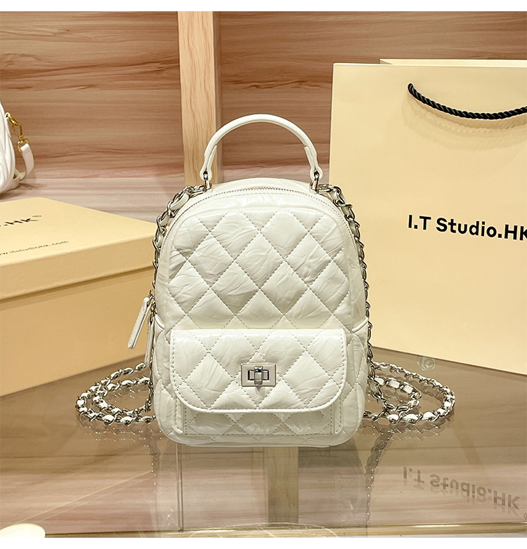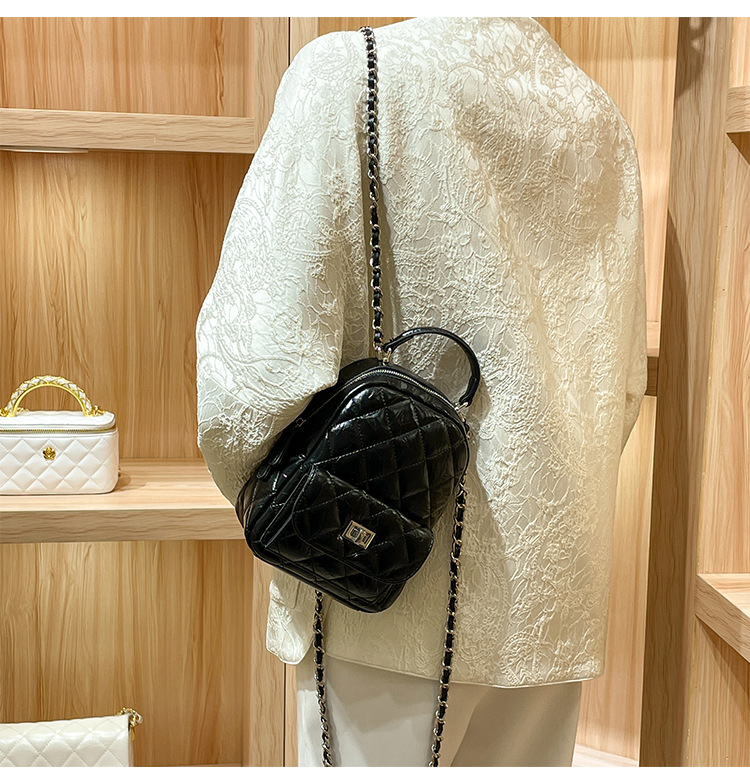 정품 가죽 마름모꼴 체인 배낭 여성의 2025 새로운 패션 봄과 여름 샤넬 스타일 디자인 틈새 여행 배낭스토어 가기