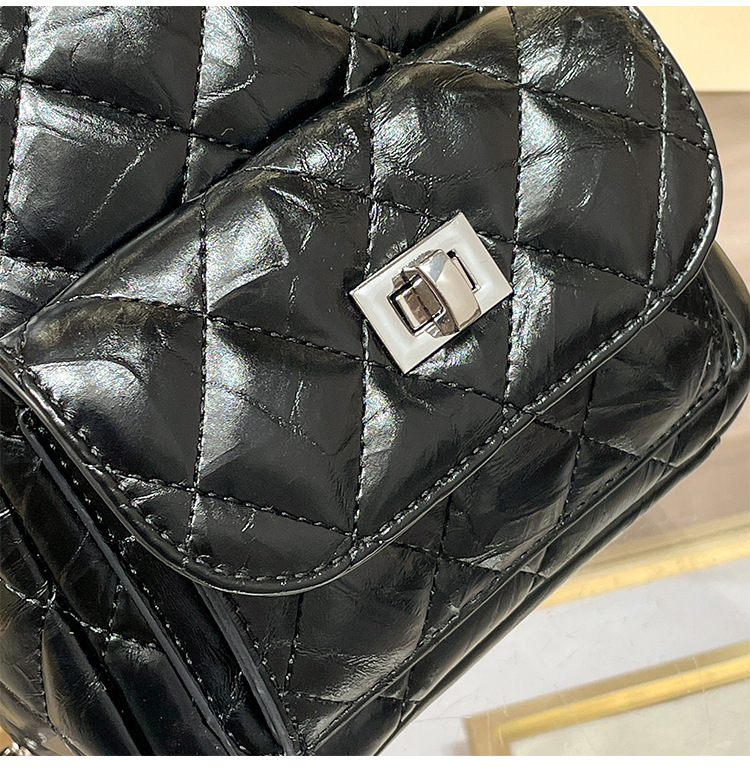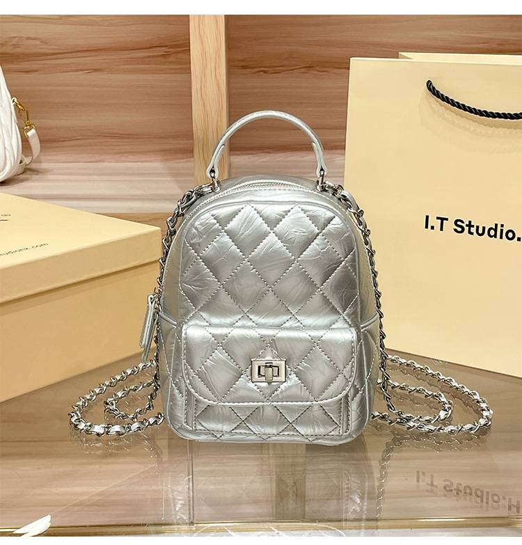 真皮菱格链条双肩包女2025新款时尚春夏小香风设计感小众旅游背包