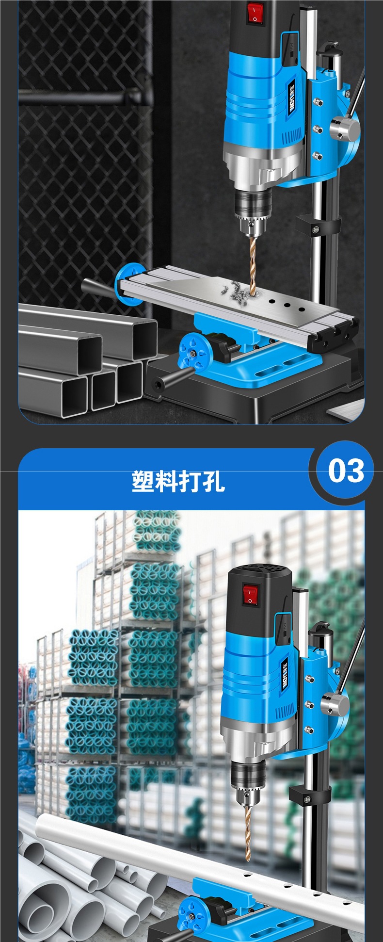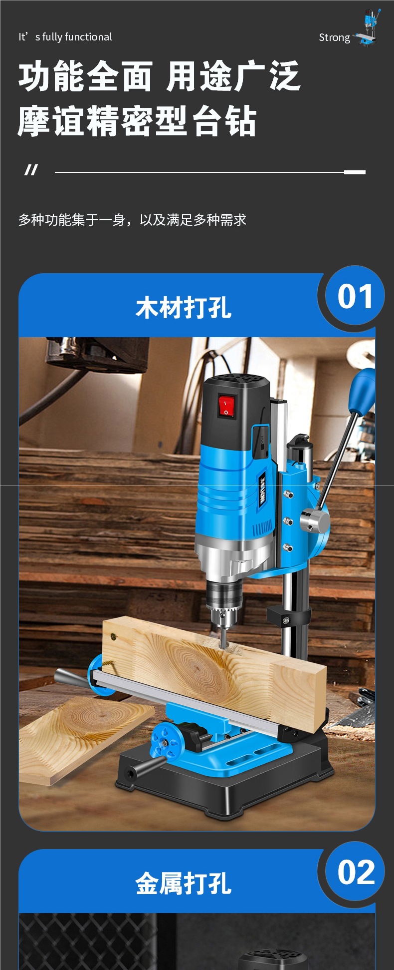 • 850w 업그레이드된 벤치 드릴 + 견고한 다기능 작업대 + 트위스트 드릴 13개 세트
