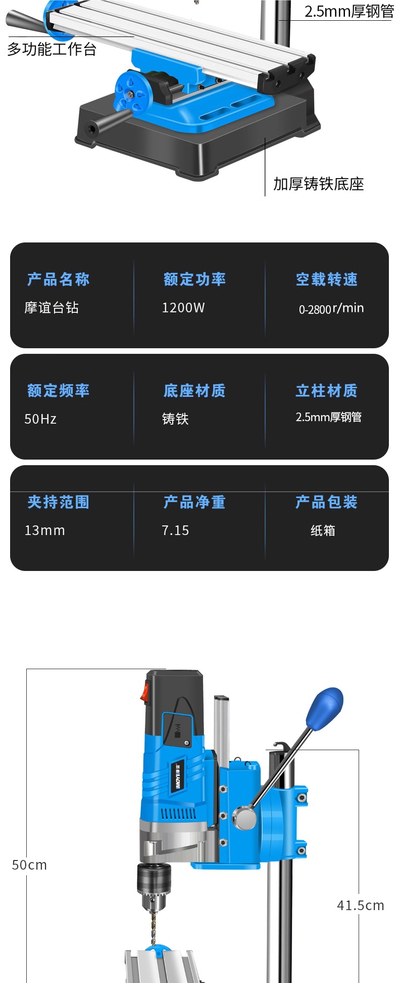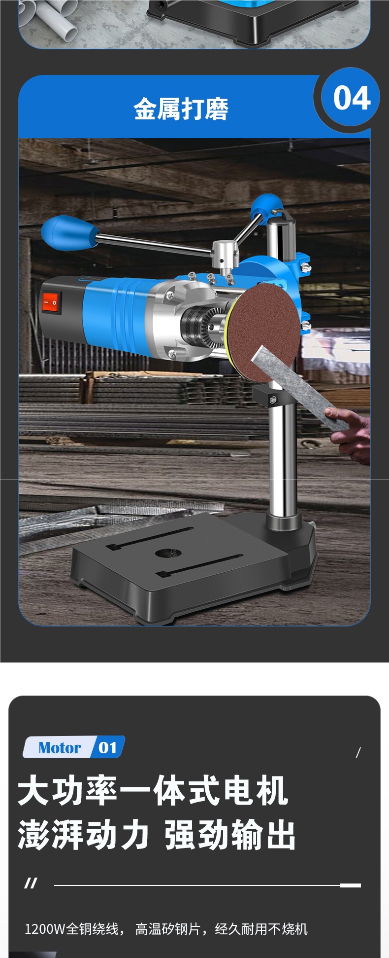 • 1200w 2단계 감속 벤치 드릴 + 경량 다기능 작업대 + 트위스트 드릴 13개 세트