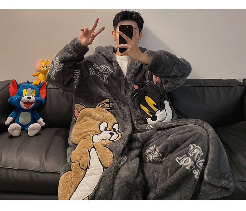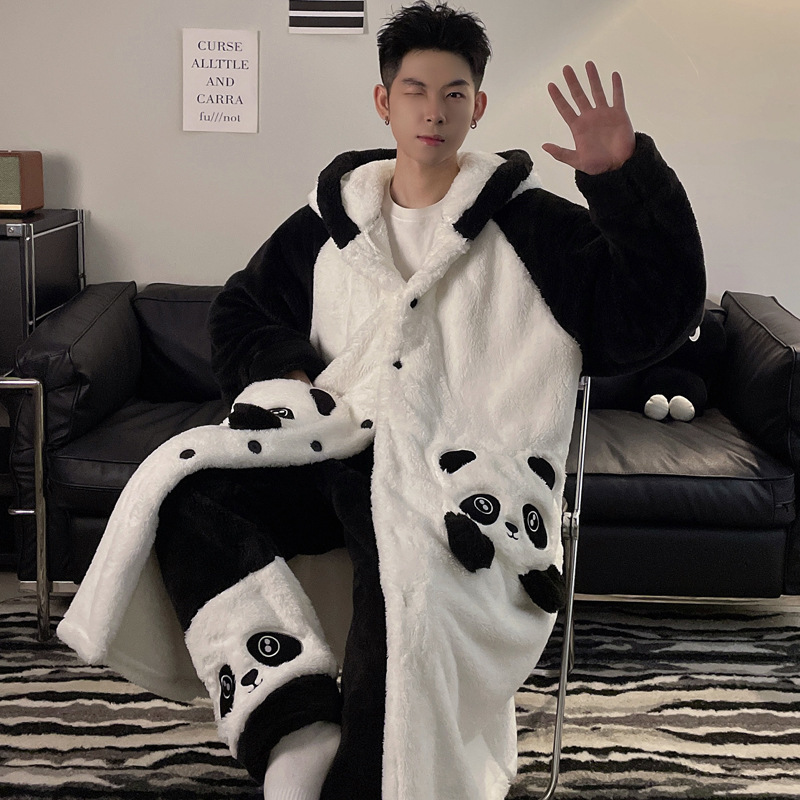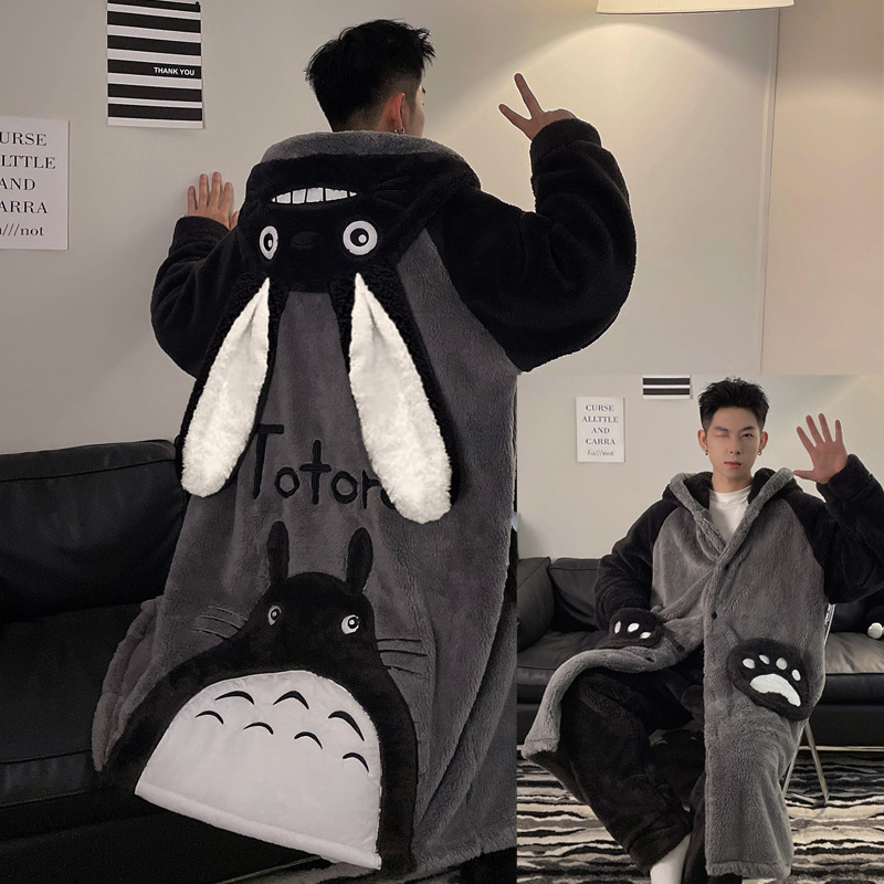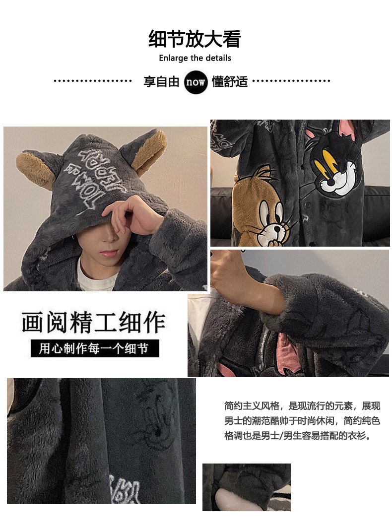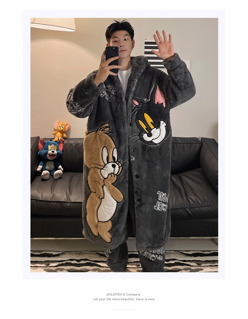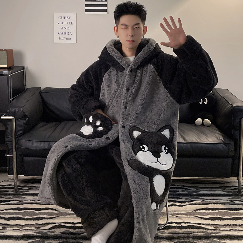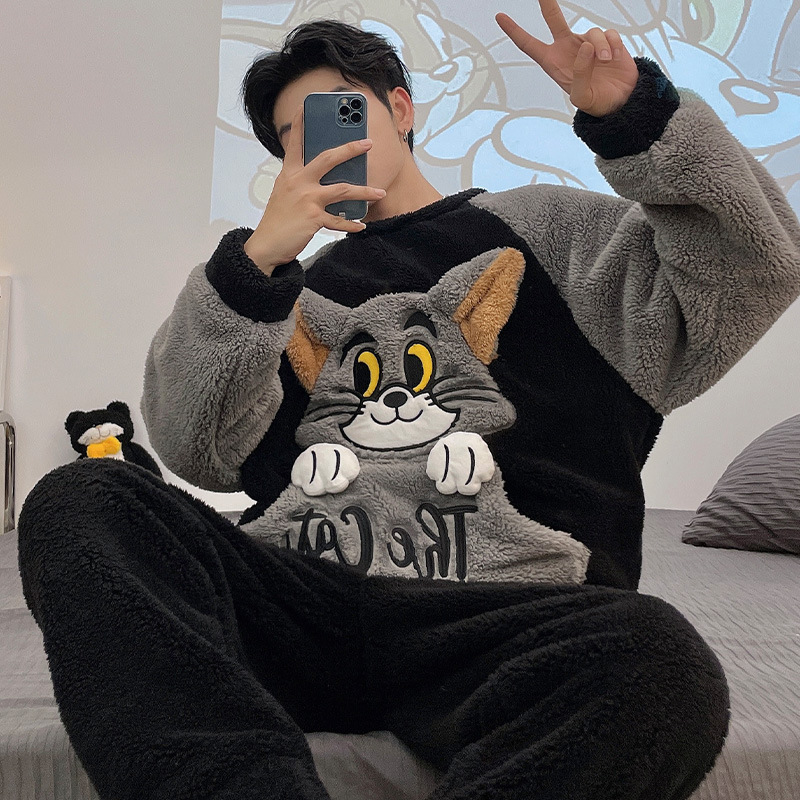 플러스 벨벳 세트 홈 의류 잠옷 남자의 가을과 겨울 두꺼운 크기 십대 만화 플러스 사이즈 산호 양털 긴 잠옷 시즌