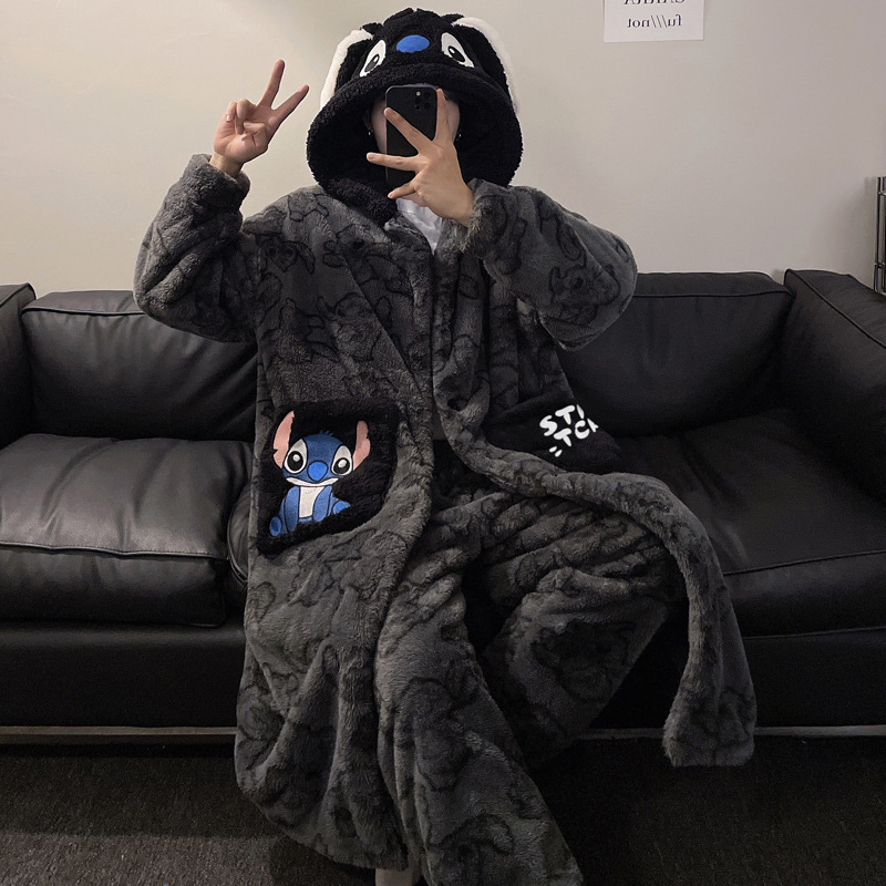 플러스 벨벳 세트 홈 의류 잠옷 남자의 가을과 겨울 두꺼운 크기 십대 만화 플러스 사이즈 산호 양털 긴 잠옷 시즌스토어 가기