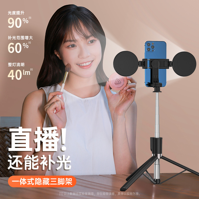 새로운 휴대 전화 블루투스 셀카 스틱 트레몰로 원격 제어 확장 더블 채우기 조명 착륙 다기능 데스크탑 라이브 방송 스탠드