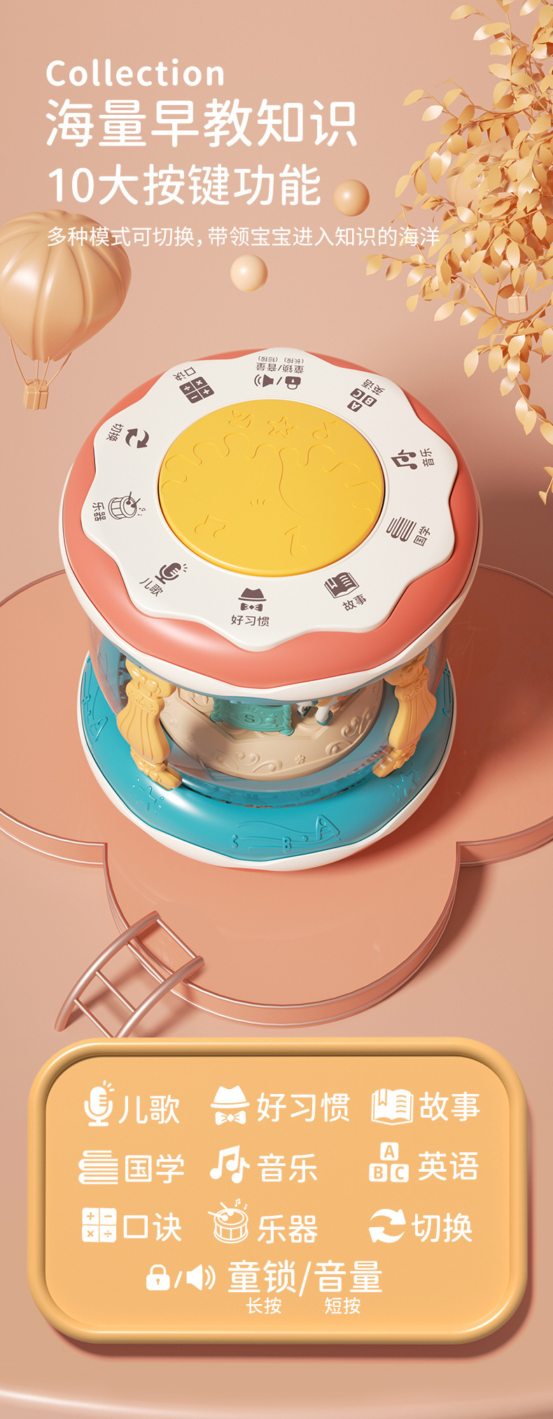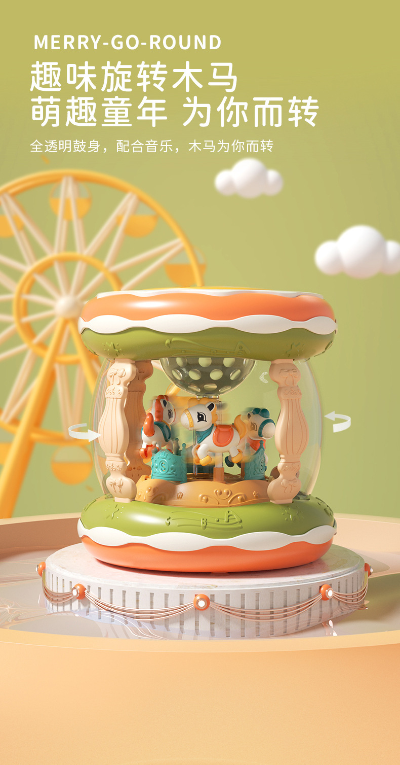아기 장난감 음악 박수 드럼 0-6-12 개월 아기 조기 교육 교육 회전 목마 핸드 크랩 드럼 충전식스토어 가기