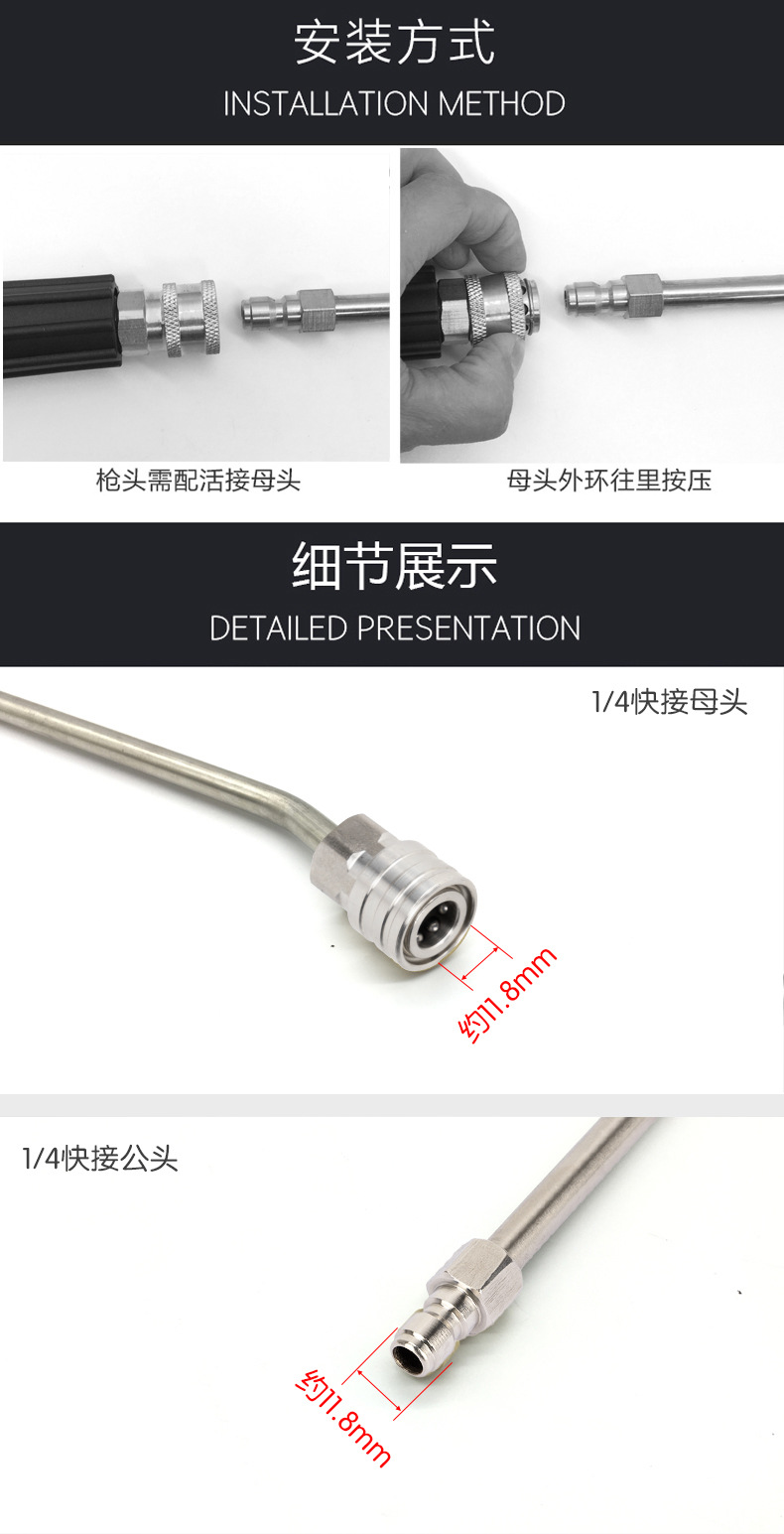 Xun 고압 자동차 세척 물총 연장 팔꿈치 1/4 빠른 연결 직각 90 도 길어진 막대 가전 청소 기계 스프레이 건 굽힘