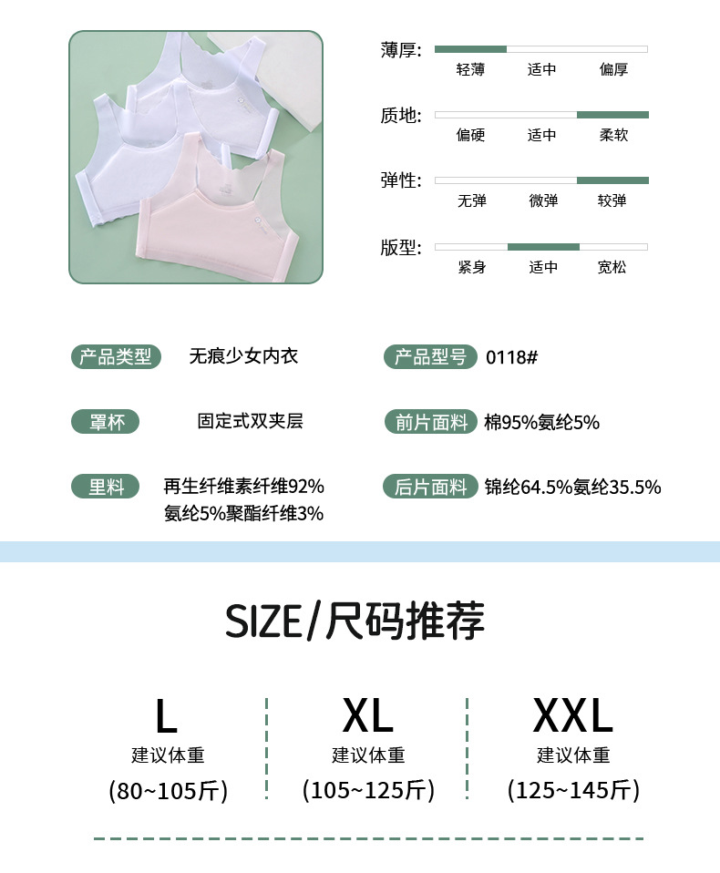 학생 개발 여아 속옷 중학교 여중생 크기 어린이 여름 새로운 추적없는 통기성 조끼 1 단계 부풀림스토어 가기