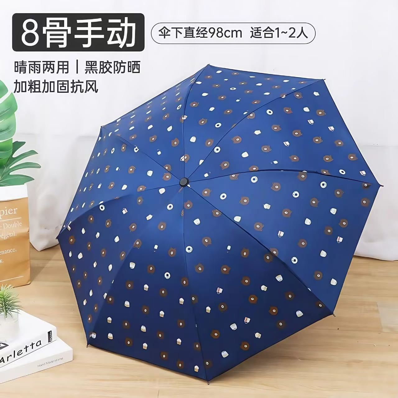 우산 우산 작은 신선한 인쇄 로고 공장 직접 판매 물 꽃 우산 검은 접착제 선 스크린 광고스토어 가기