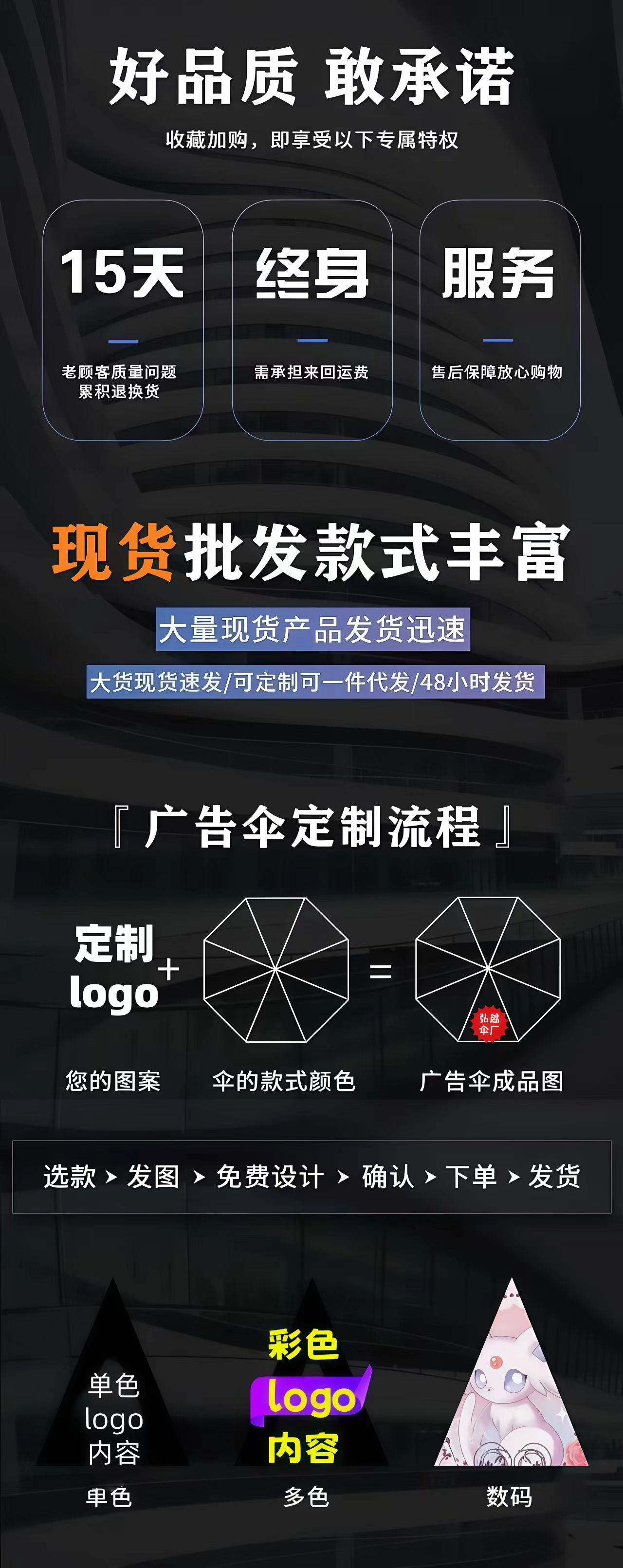 우산 우산 작은 신선한 인쇄 로고 공장 직접 판매 물 꽃 우산 검은 접착제 선 스크린 광고