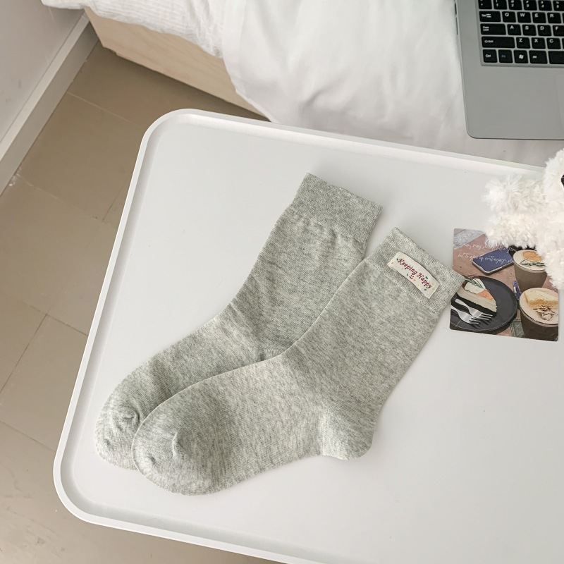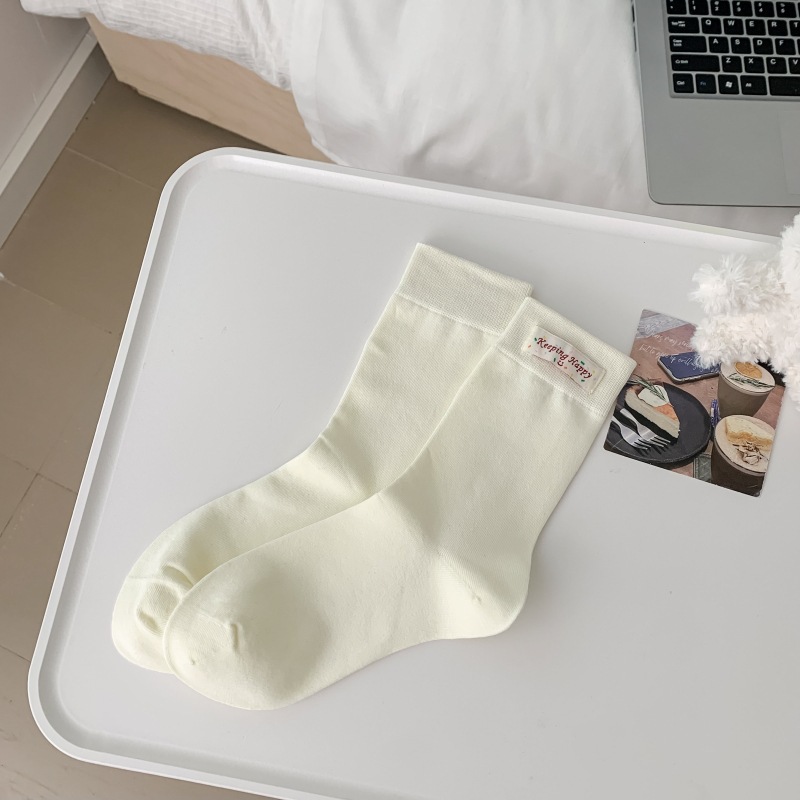 일본식 천 라벨 스태킹 양말 여자 대학 심플 스타일 양말 봄 및 여름 통기성 올 매치 미드 튜브 양말 여성용 코튼 양말스토어 가기