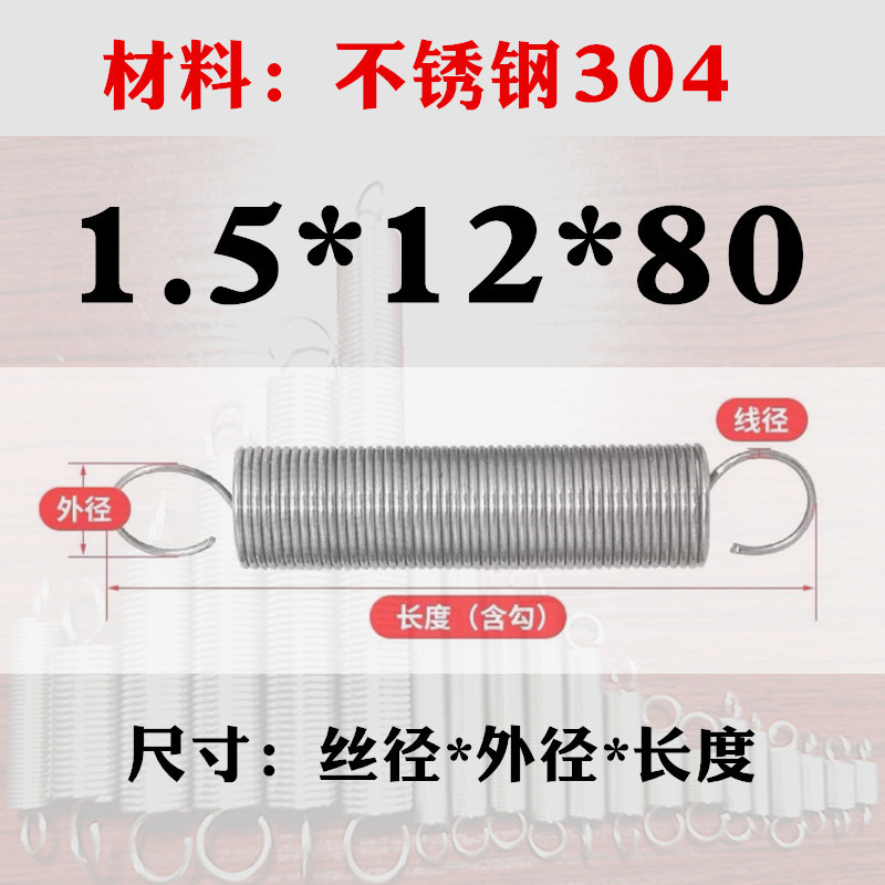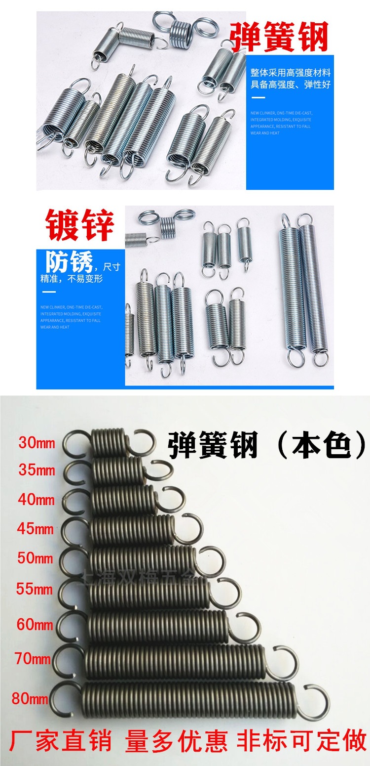 후크 스프링 장력 스프링 후크가있는 304 스테인레스 스틸 장력 스프링 65 망간 강철 크기 길고 짧은 스프링 장력 스프링스토어 가기