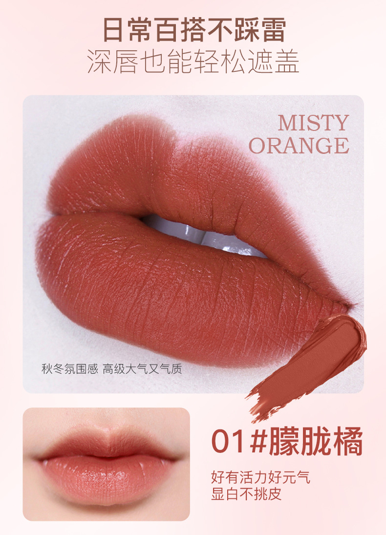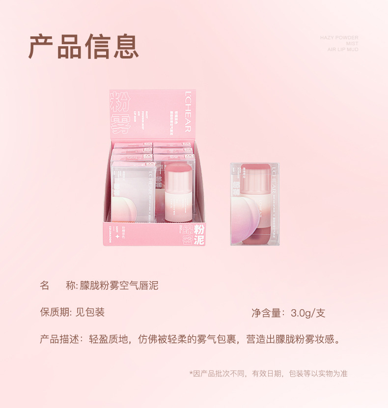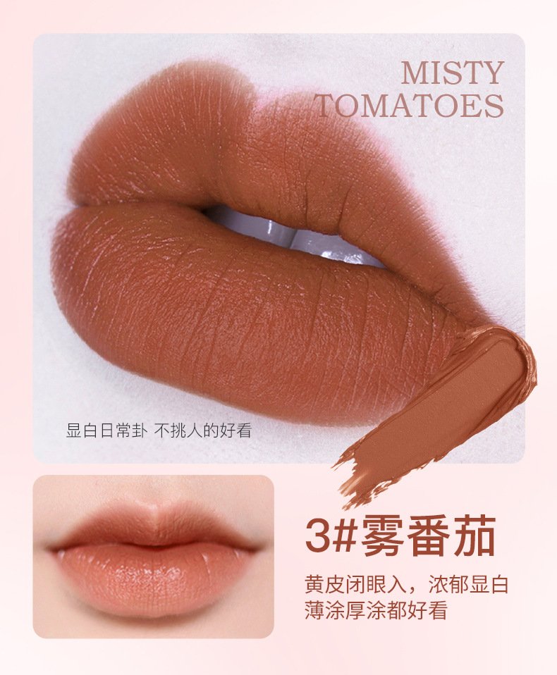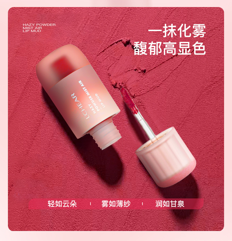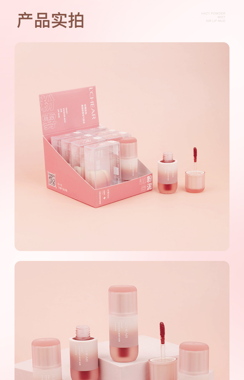 Hazy powder mist air lip mud 면화 짙은 분말 진흙 부드러운 왁스 색 숨겨진 립 라인 비 케이킹 립 머드 립스틱 3g 소녀스토어 가기