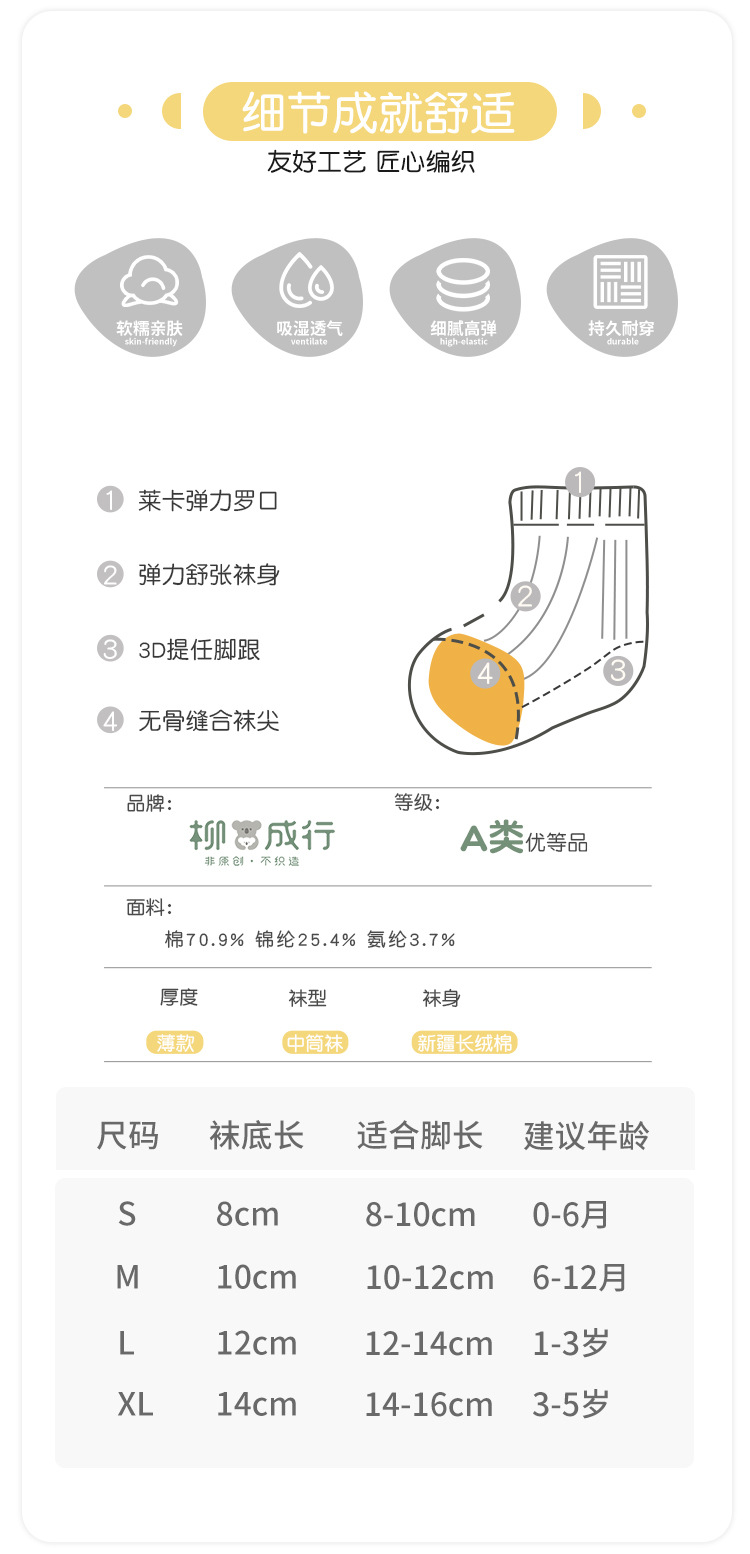 • M 사이즈 양말 밑창 길이 10cm (6~12개월 권장)