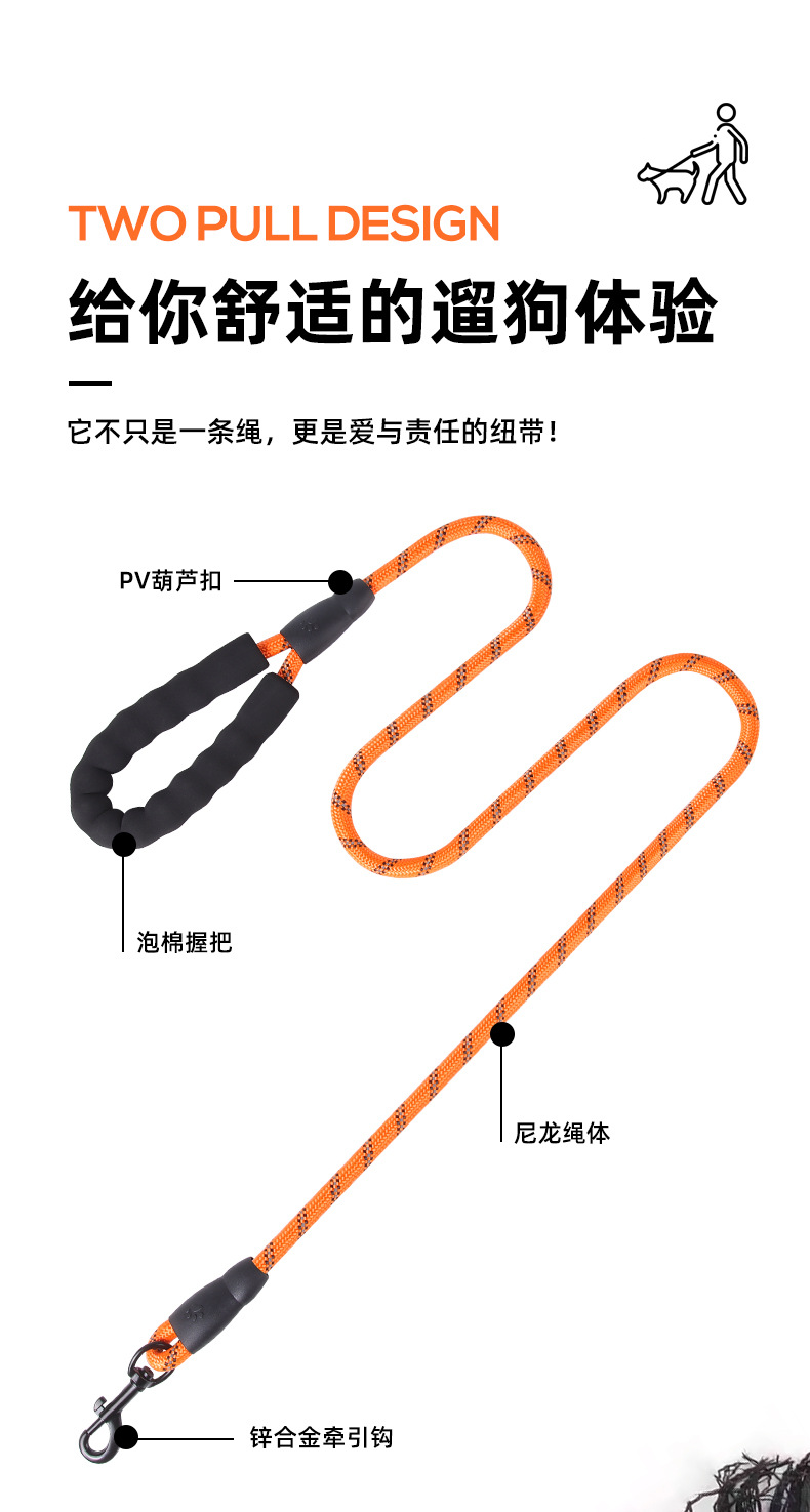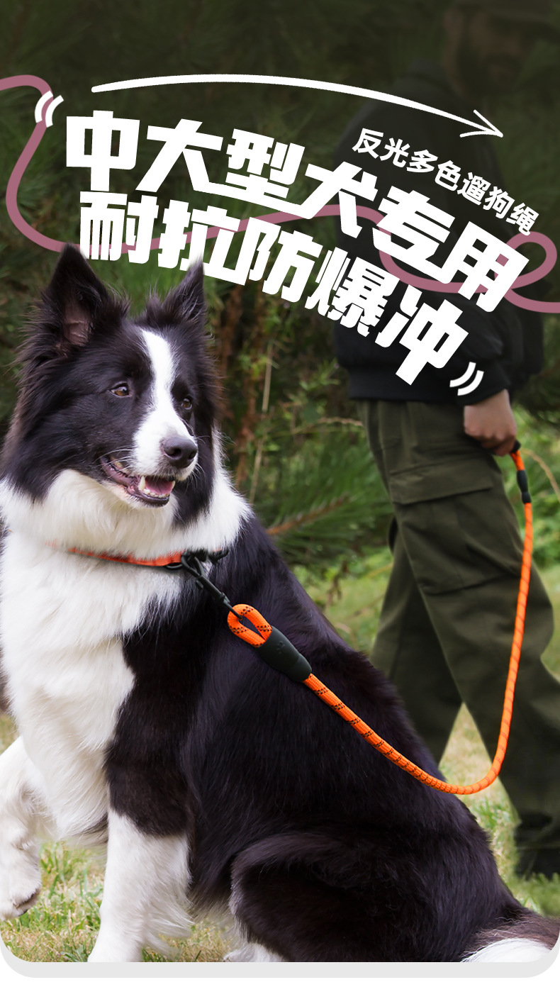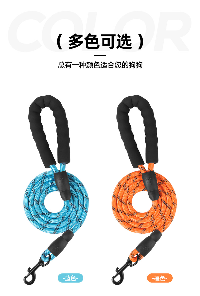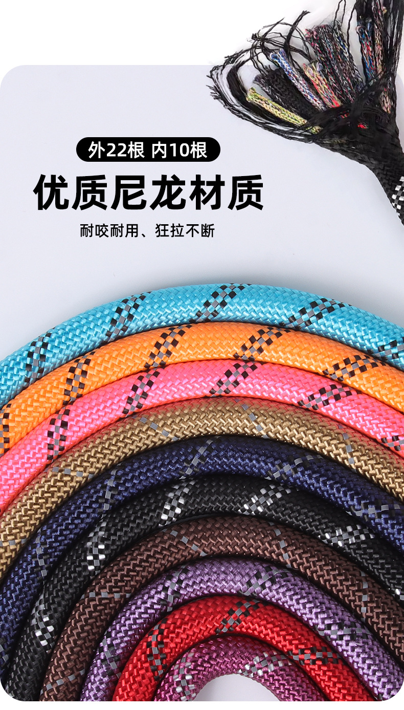 아마존 반사 애완 동물 가죽 끈 개 나일론 라운드 로프 개 체인 큰 개 폭발 방지 폼 개 로프 도매스토어 가기