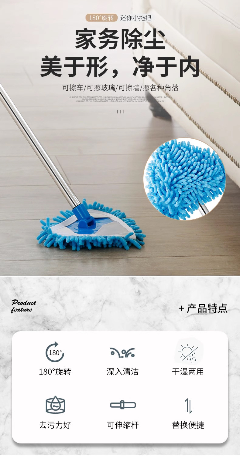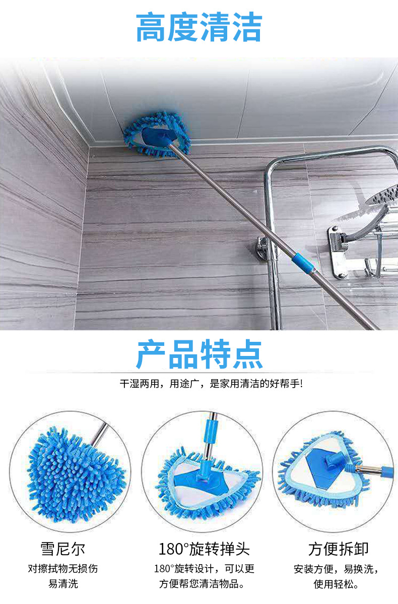 三角拖把伸缩杆子丝头有黑色,蓝色,雪尼尔三角布包边布蓝色,白色,批次不同颜色不同,发货随机,介意慎拍,产品实拍图片联系客服,
