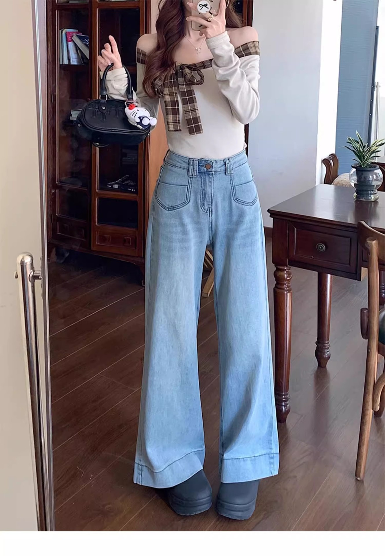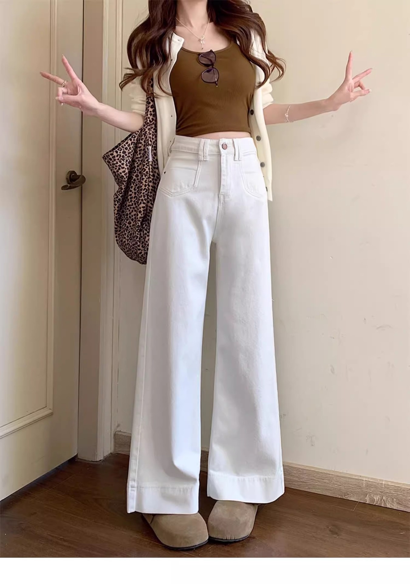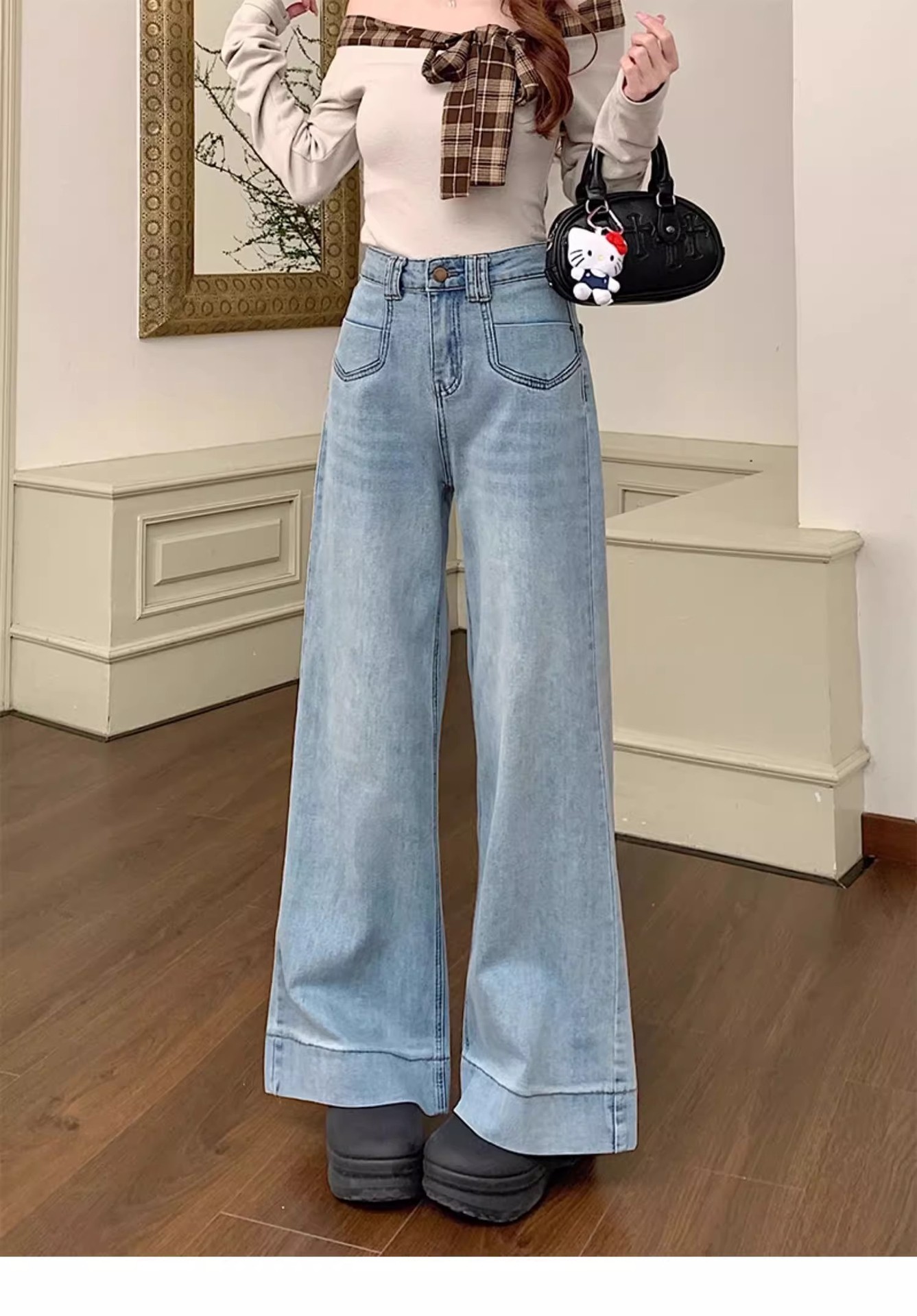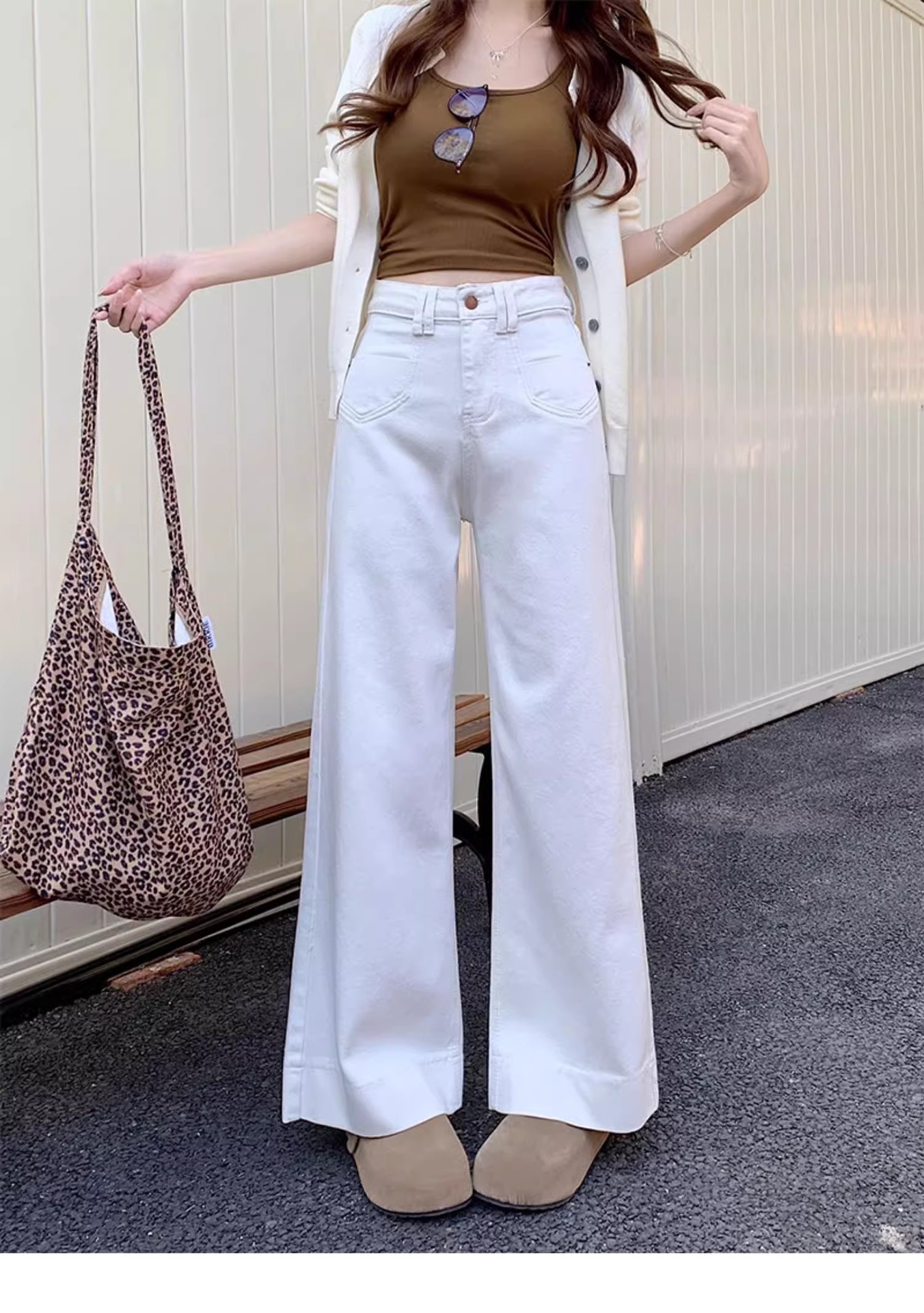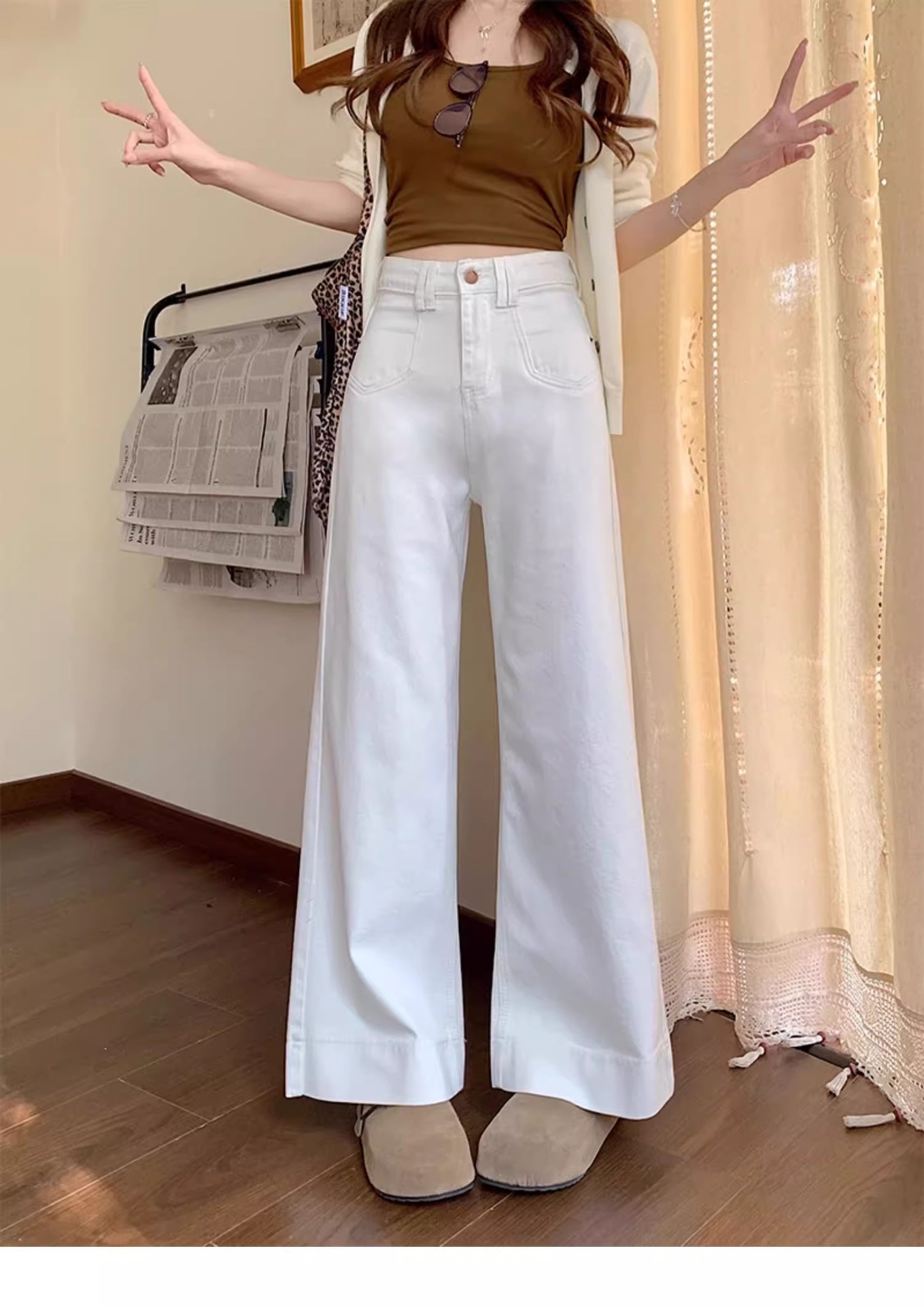 플러스 사이즈 높은 허리 마이크로 플레어 청바지 여성의 봄과 여름 통통녀 배 모양의 몸 느슨한 슬림 스트레이트 레그 와이드 레그 바지스토어 가기