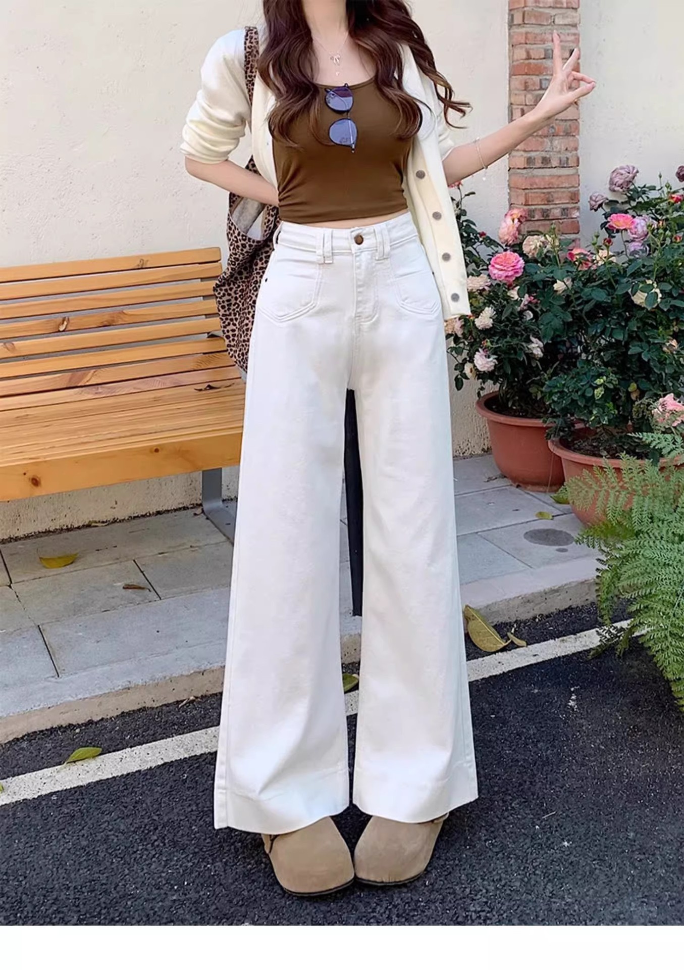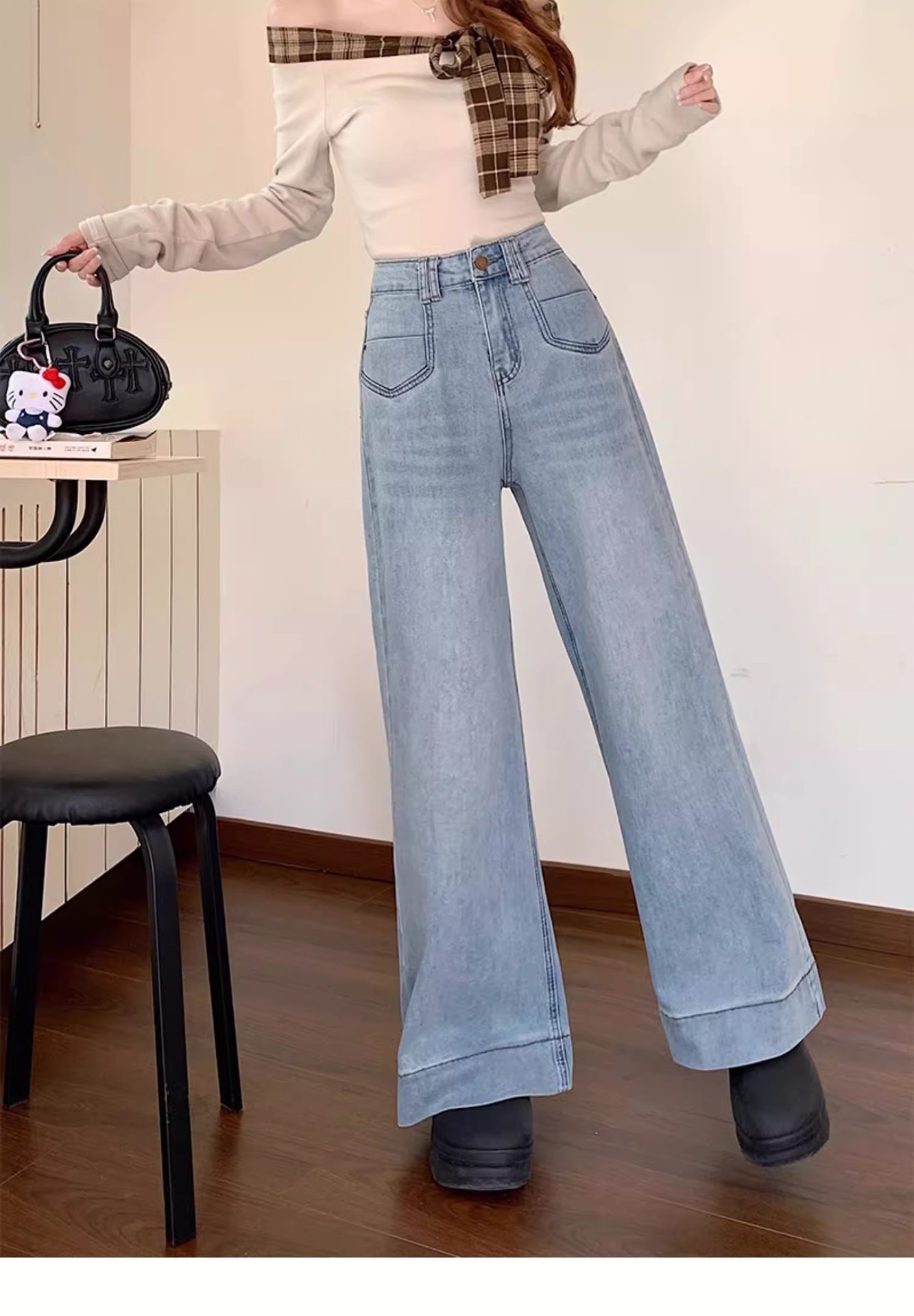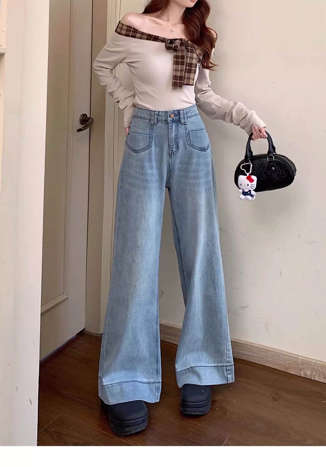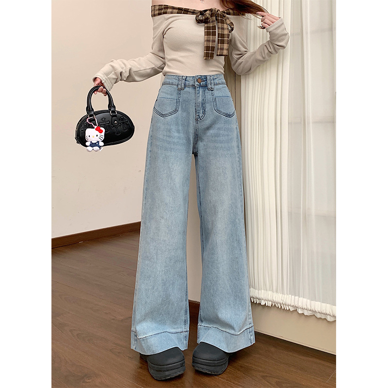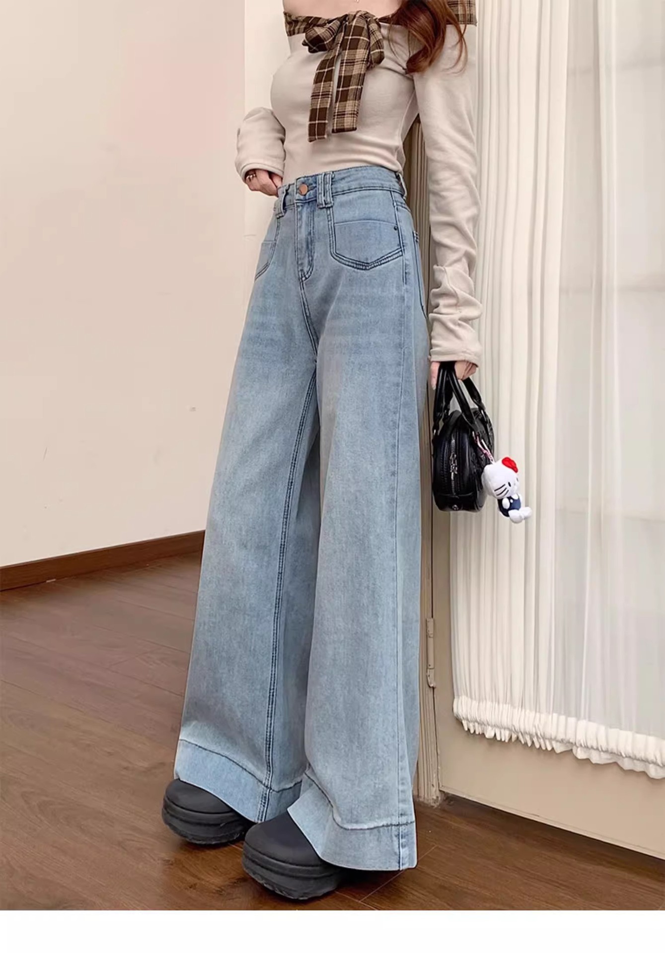 플러스 사이즈 높은 허리 마이크로 플레어 청바지 여성의 봄과 여름 통통녀 배 모양의 몸 느슨한 슬림 스트레이트 레그 와이드 레그 바지스토어 가기
