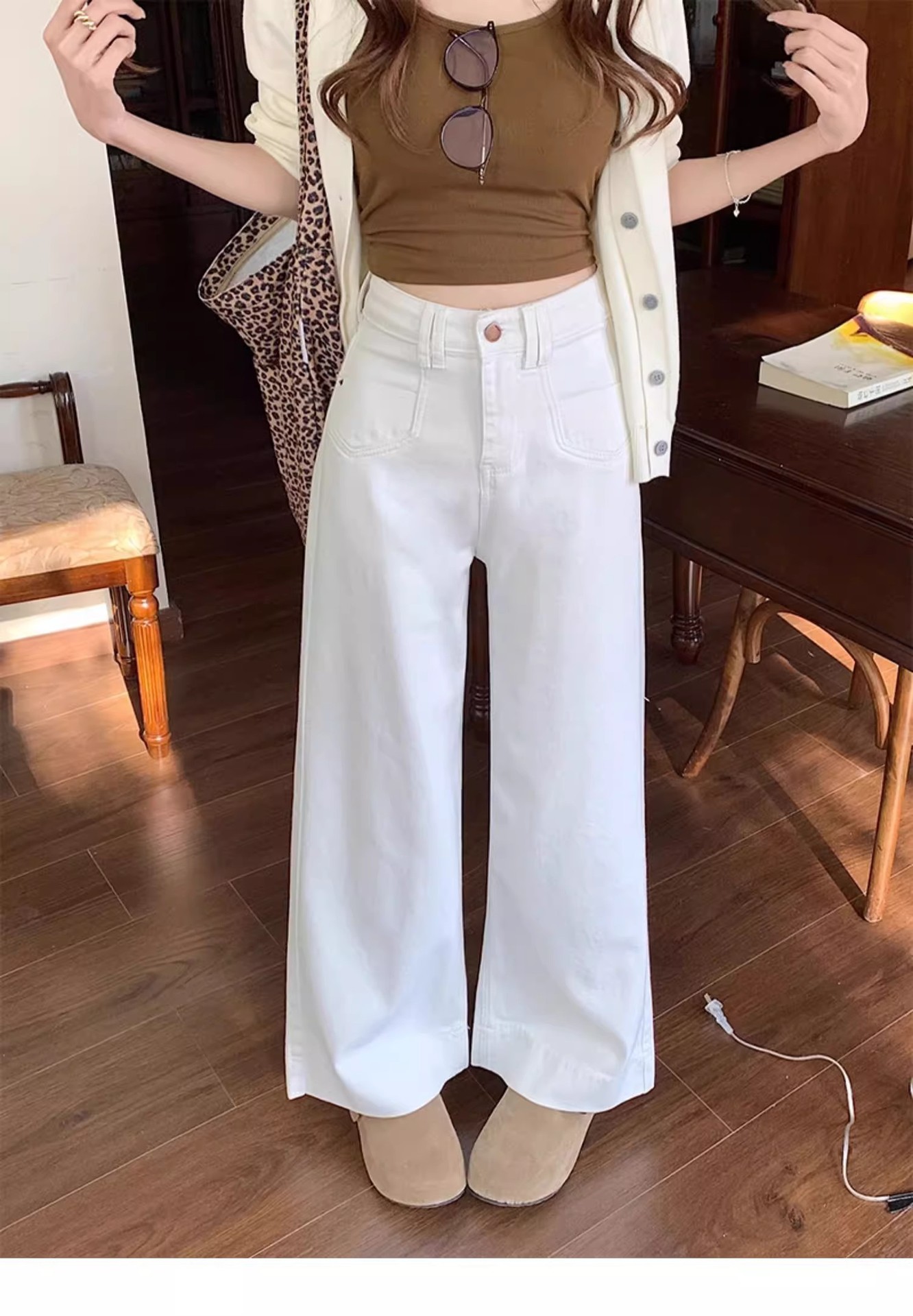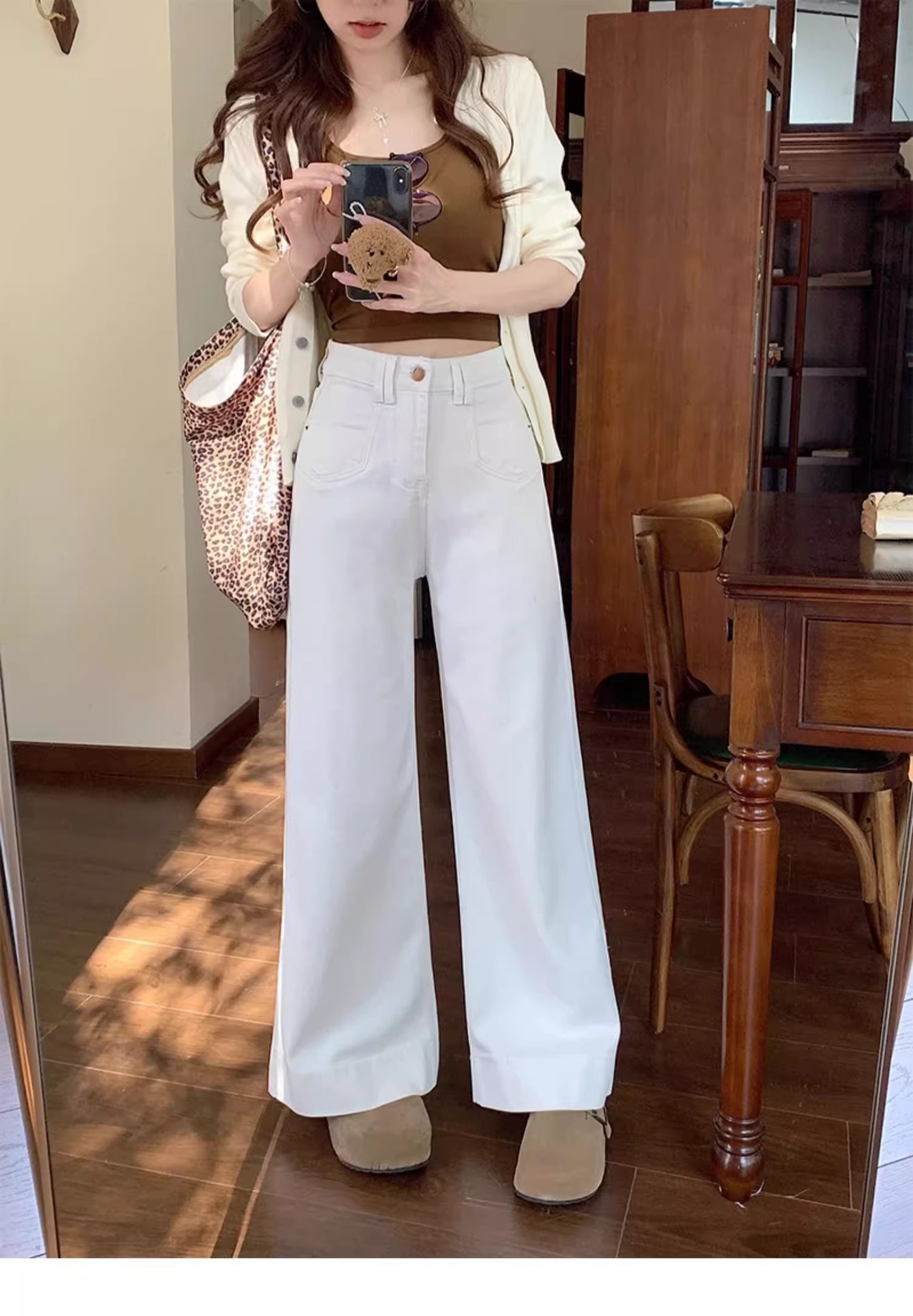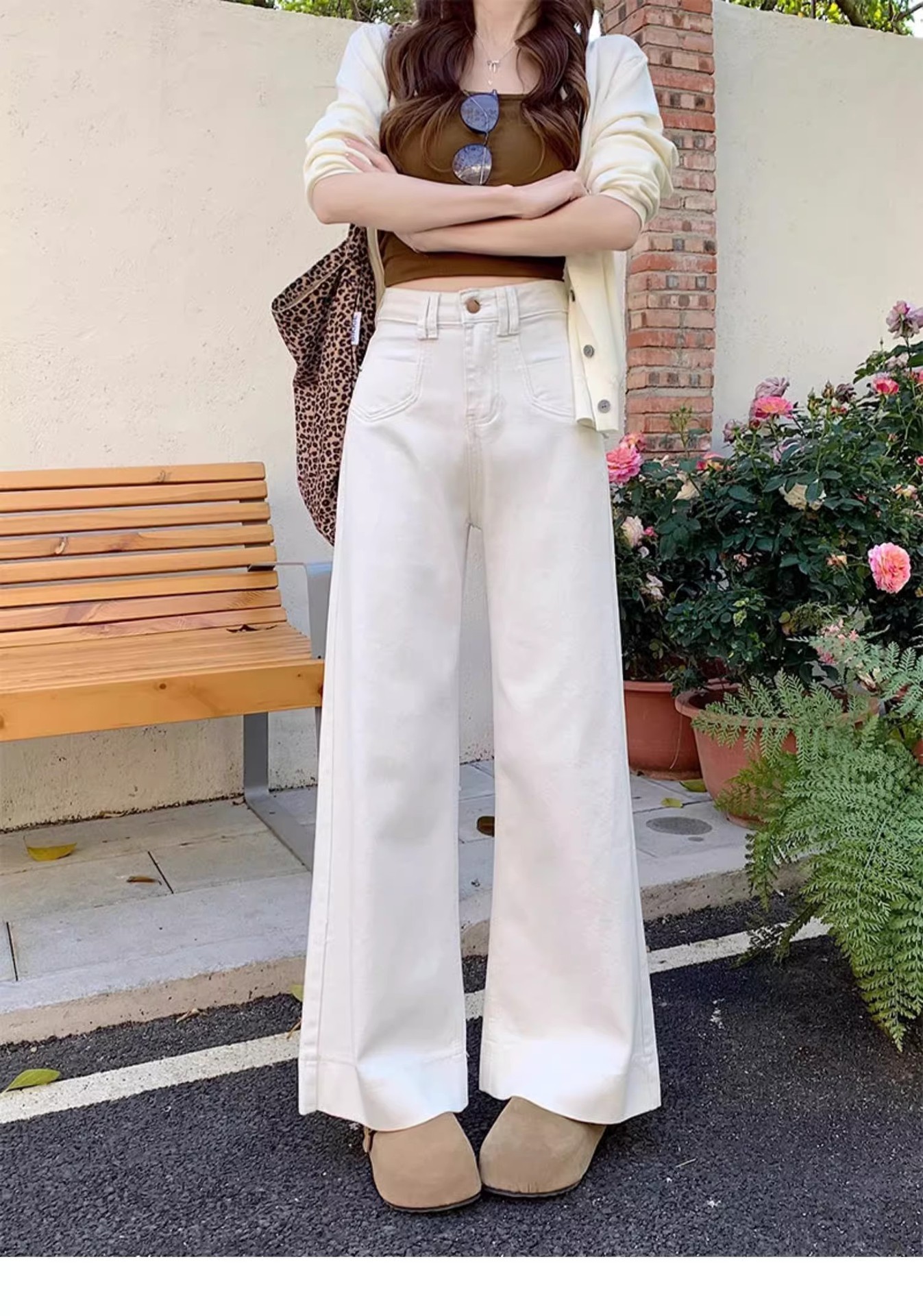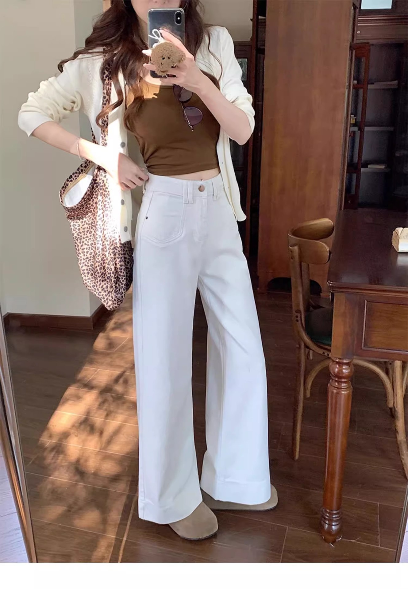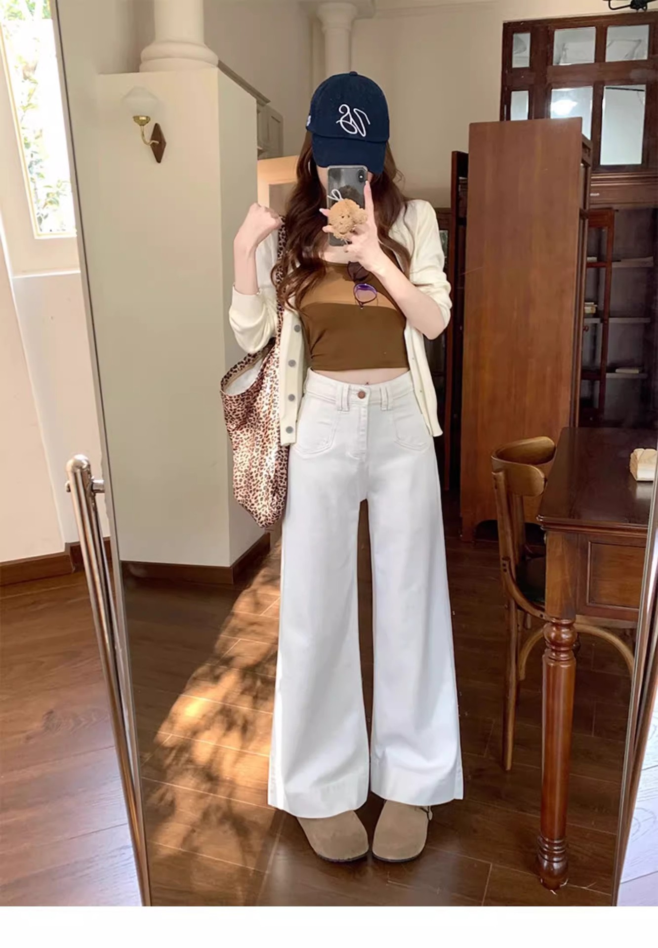 플러스 사이즈 높은 허리 마이크로 플레어 청바지 여성의 봄과 여름 통통녀 배 모양의 몸 느슨한 슬림 스트레이트 레그 와이드 레그 바지스토어 가기