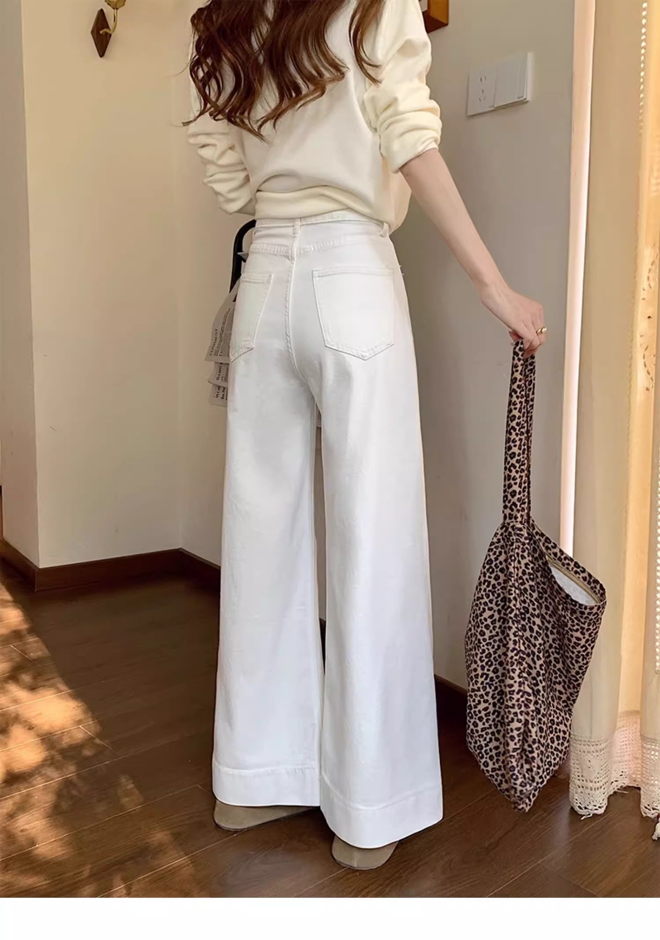플러스 사이즈 높은 허리 마이크로 플레어 청바지 여성의 봄과 여름 통통녀 배 모양의 몸 느슨한 슬림 스트레이트 레그 와이드 레그 바지
