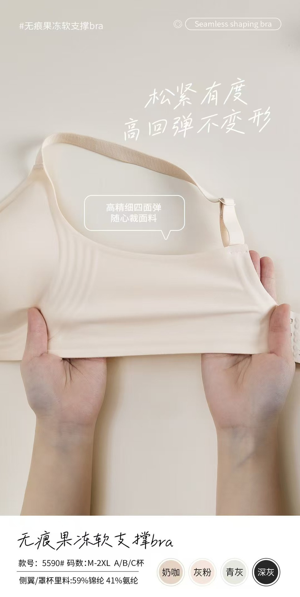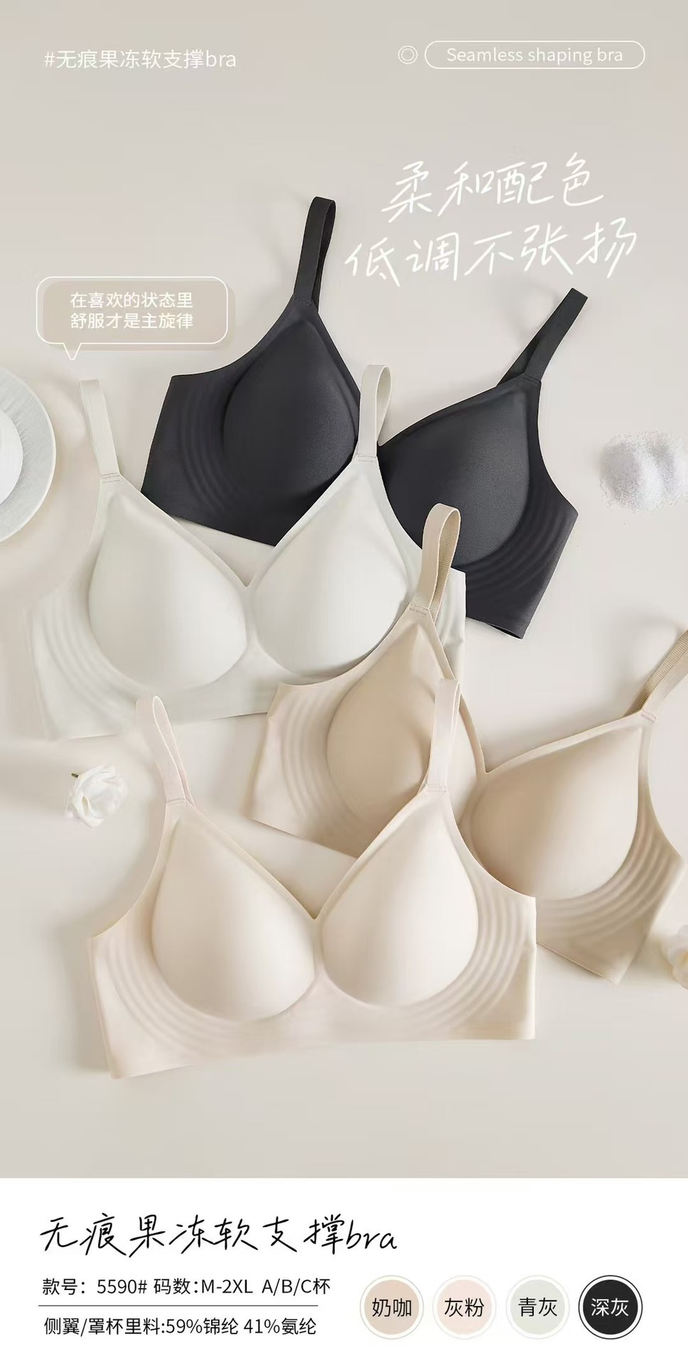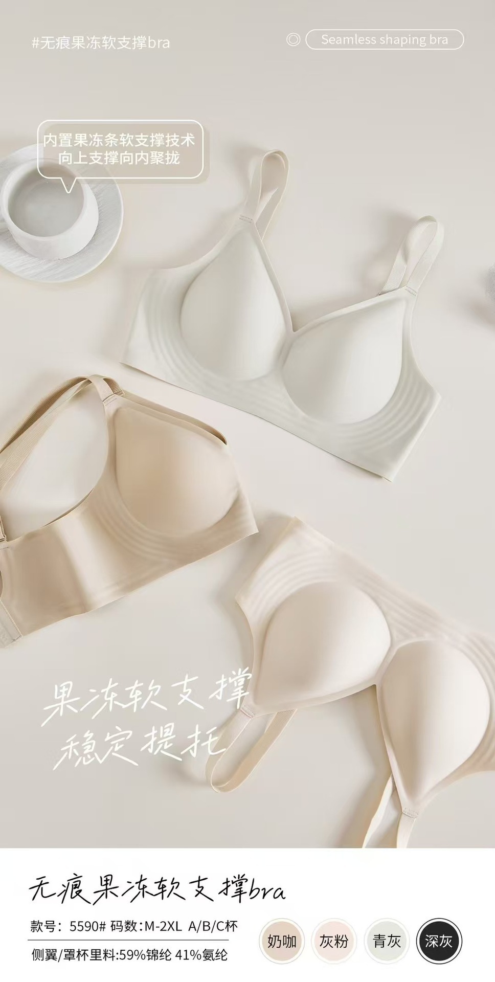 5590 노 컷 알몸 속옷 여성용 젤리 소프트 지원 스틸 링이없는 조정 가능한 클리어 유방 울트라 소프트 얇은 브래지어