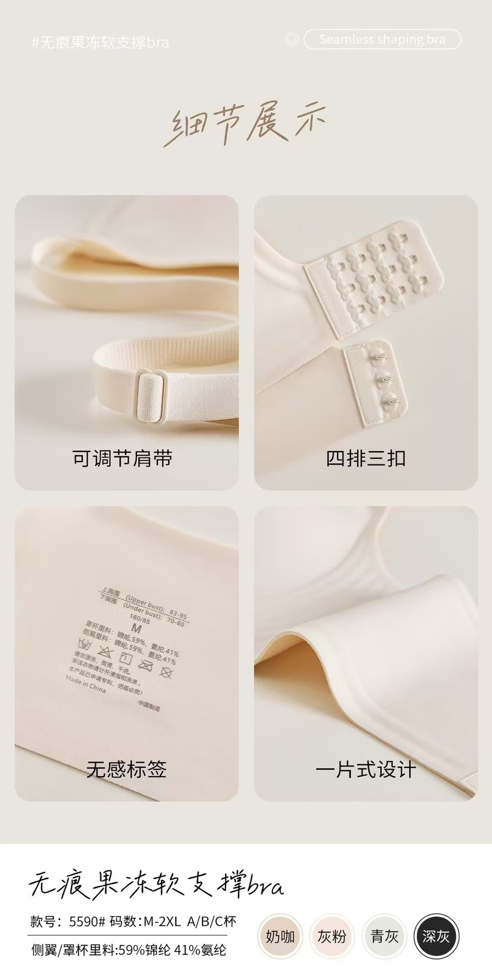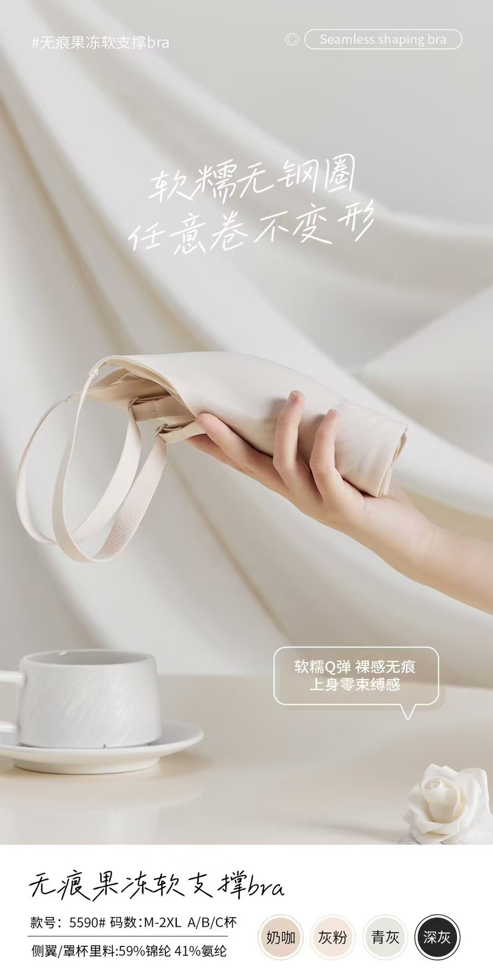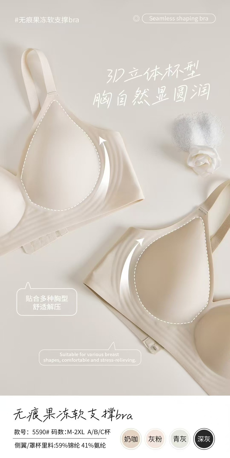 5590 노 컷 알몸 속옷 여성용 젤리 소프트 지원 스틸 링이없는 조정 가능한 클리어 유방 울트라 소프트 얇은 브래지어