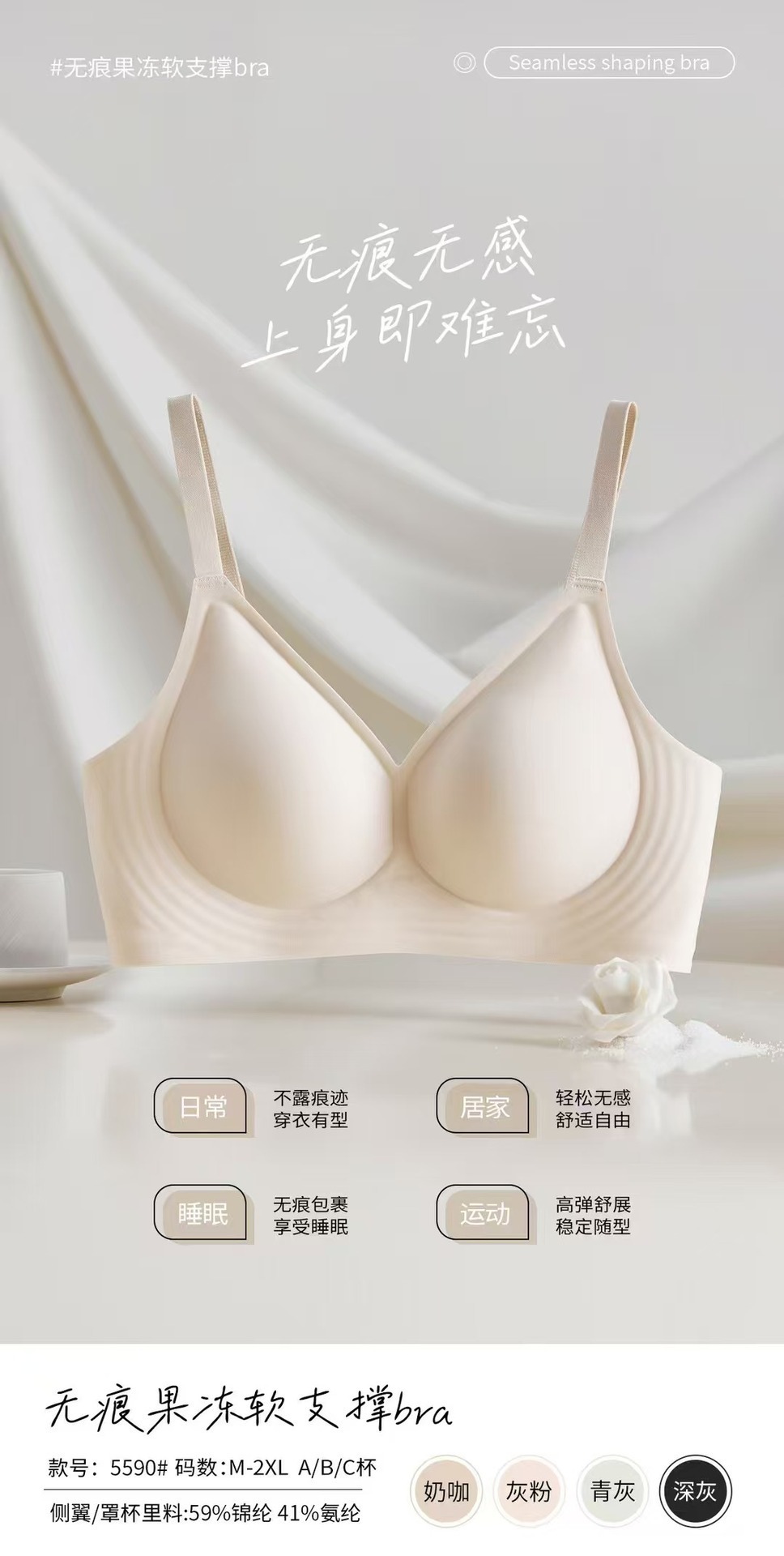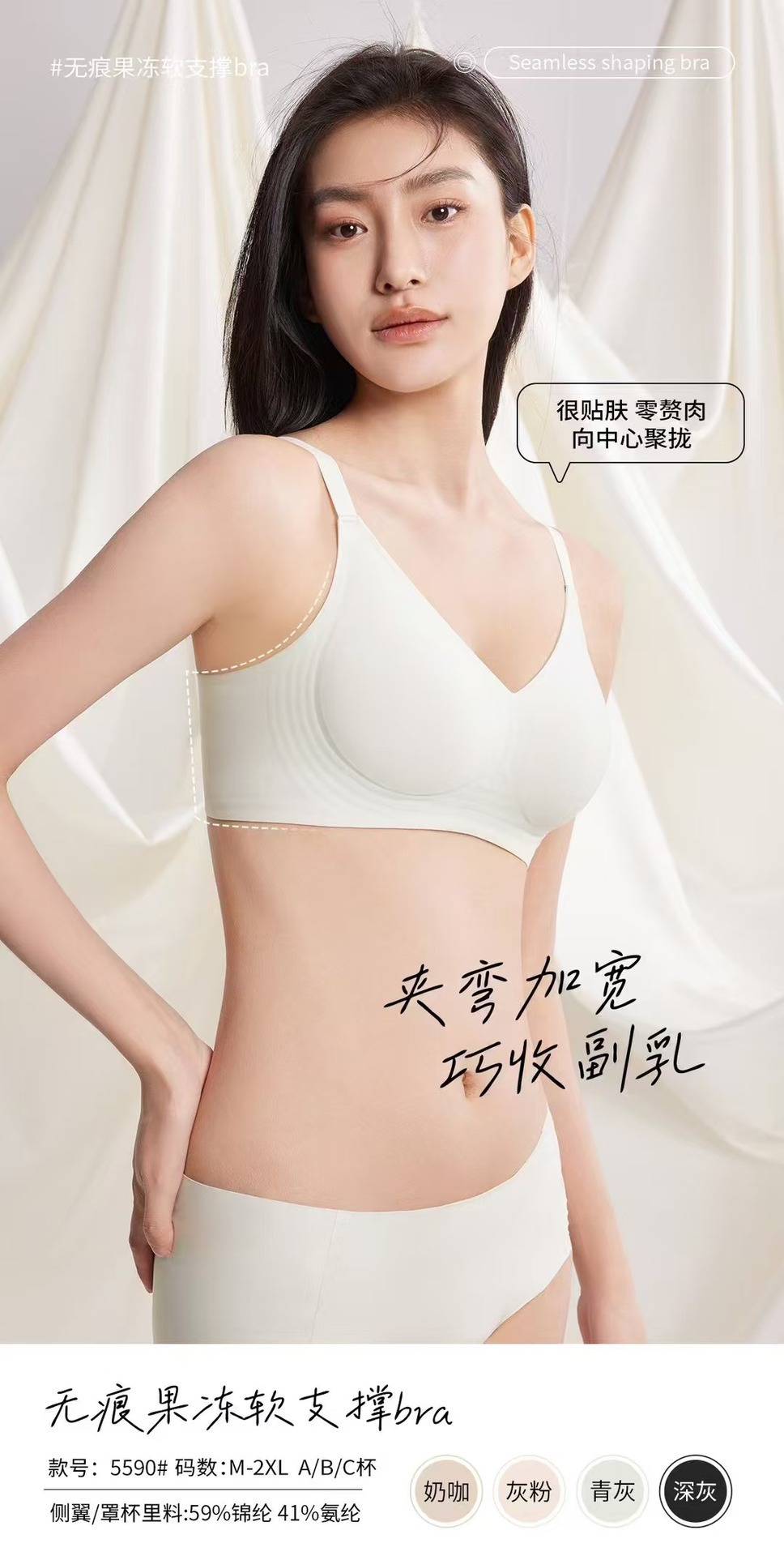 5590 노 컷 알몸 속옷 여성용 젤리 소프트 지원 스틸 링이없는 조정 가능한 클리어 유방 울트라 소프트 얇은 브래지어스토어 가기