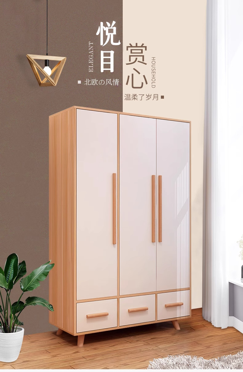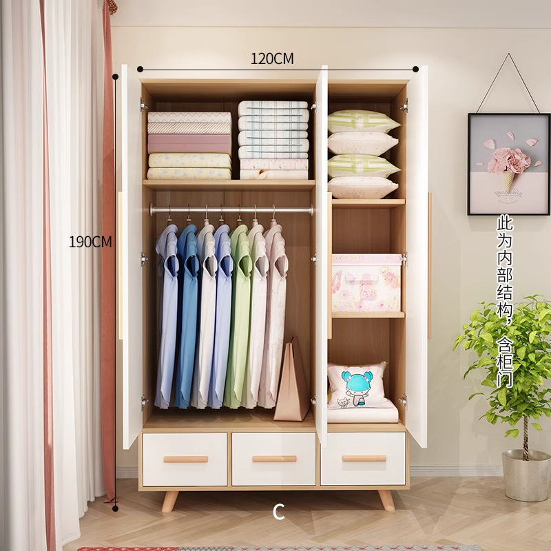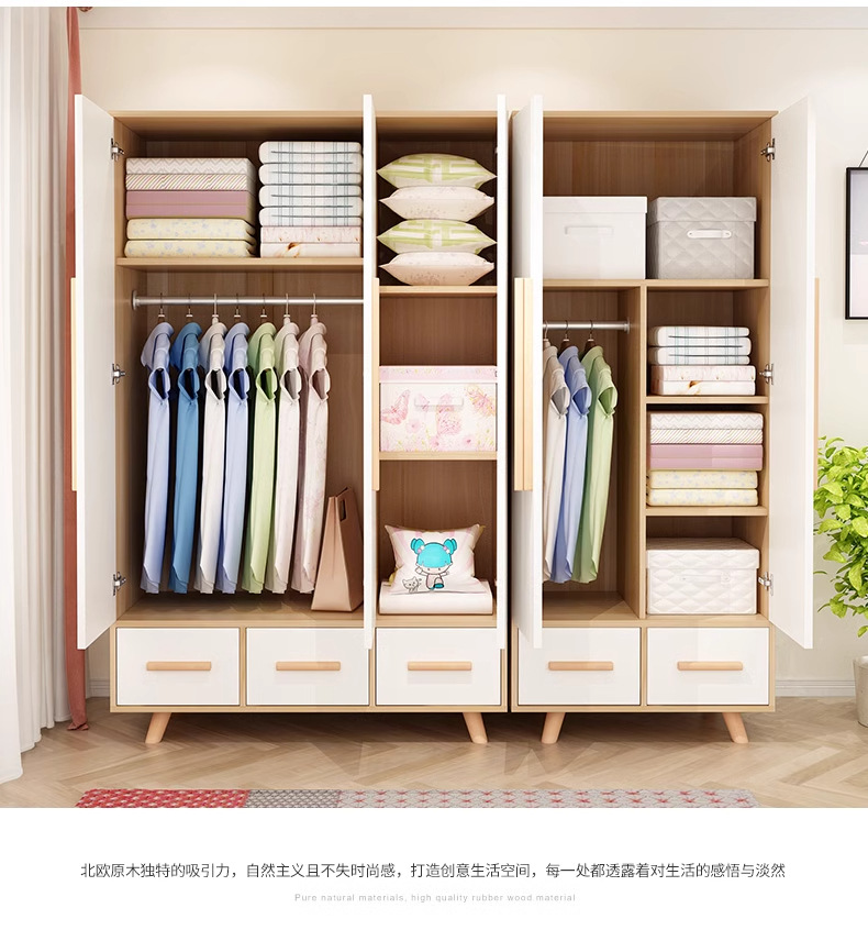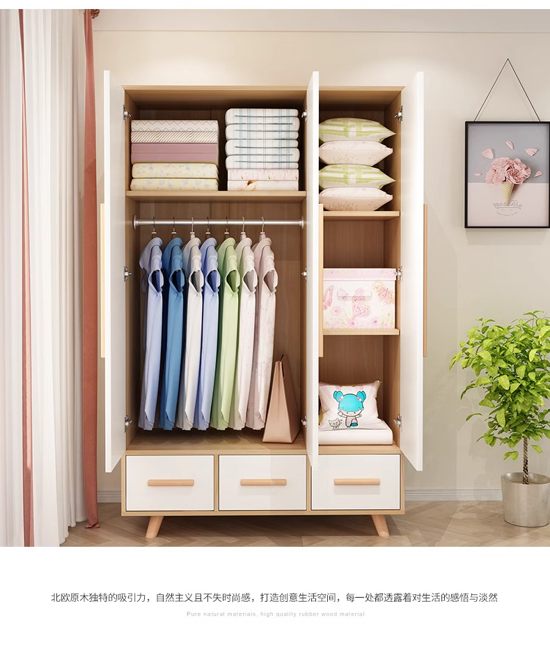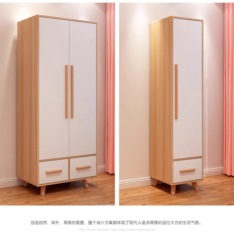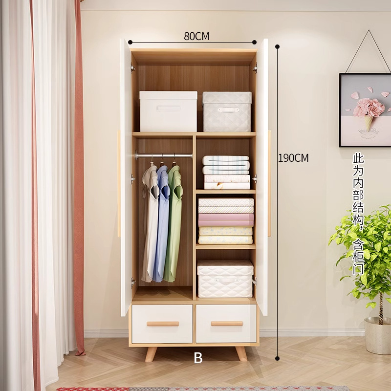 간단한 현대 경제 옷장 간단한 단단한 나무 패널 홈 어셈블리 옷장 북유럽 스타일 침실 보관 캐비닛