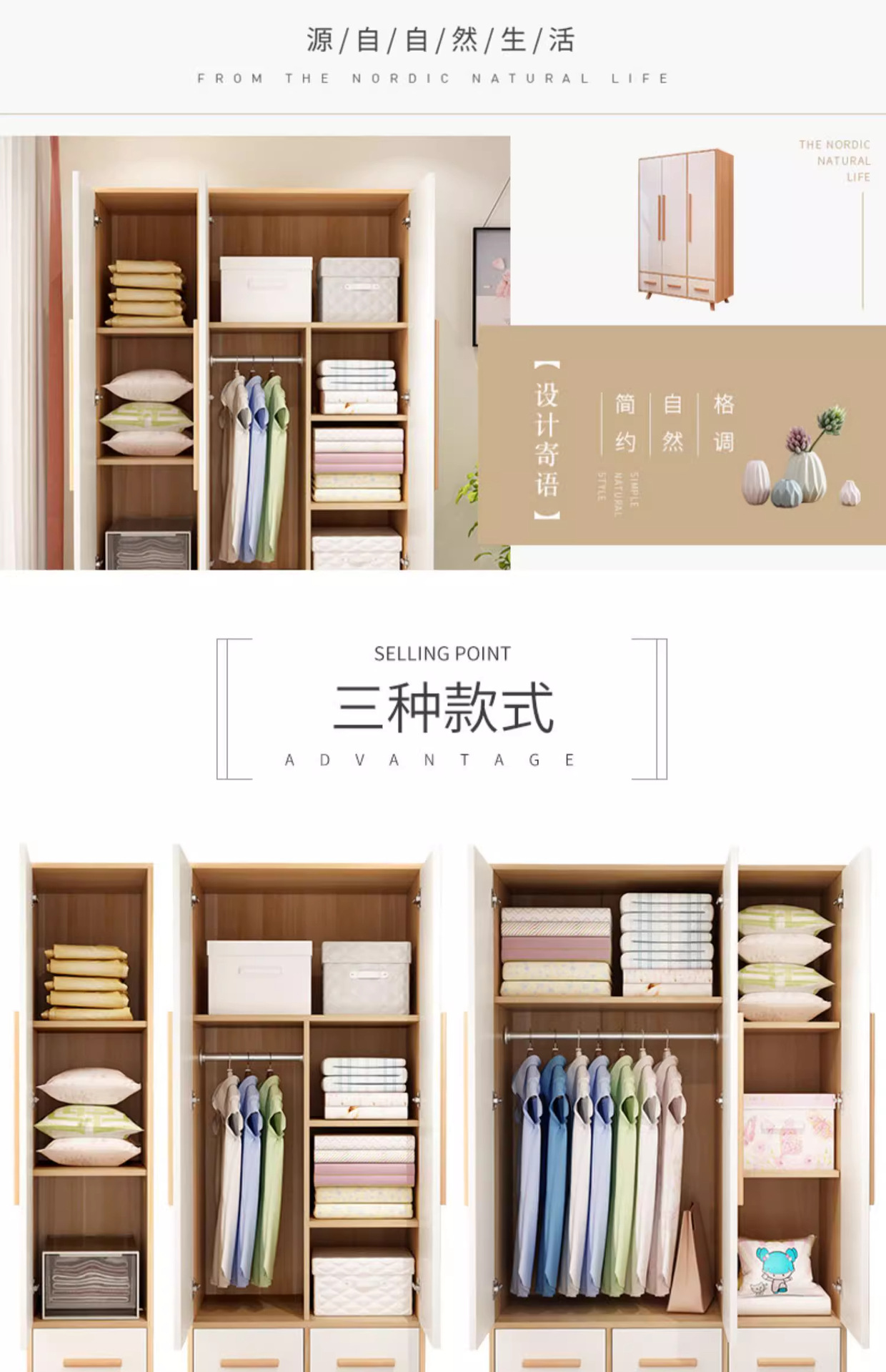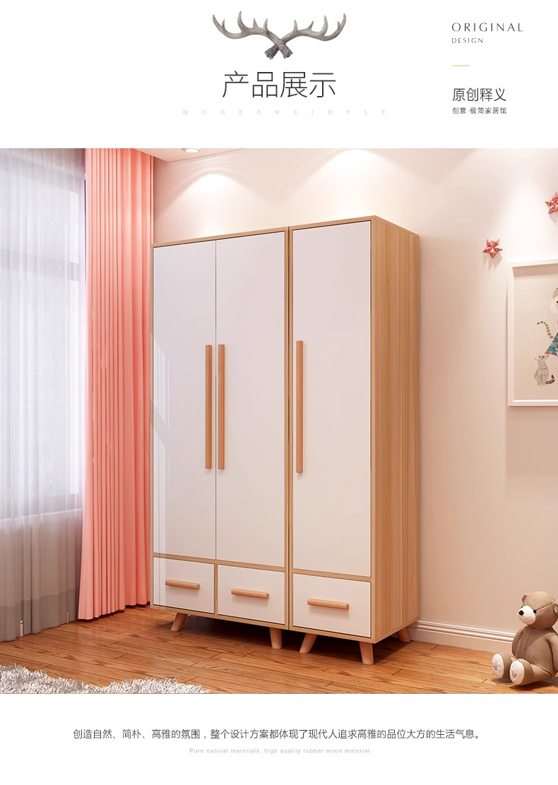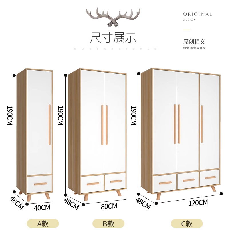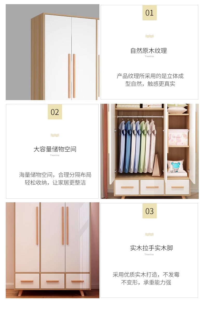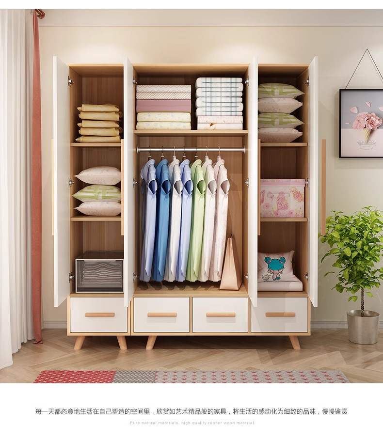 간단한 현대 경제 옷장 간단한 단단한 나무 패널 홈 어셈블리 옷장 북유럽 스타일 침실 보관 캐비닛