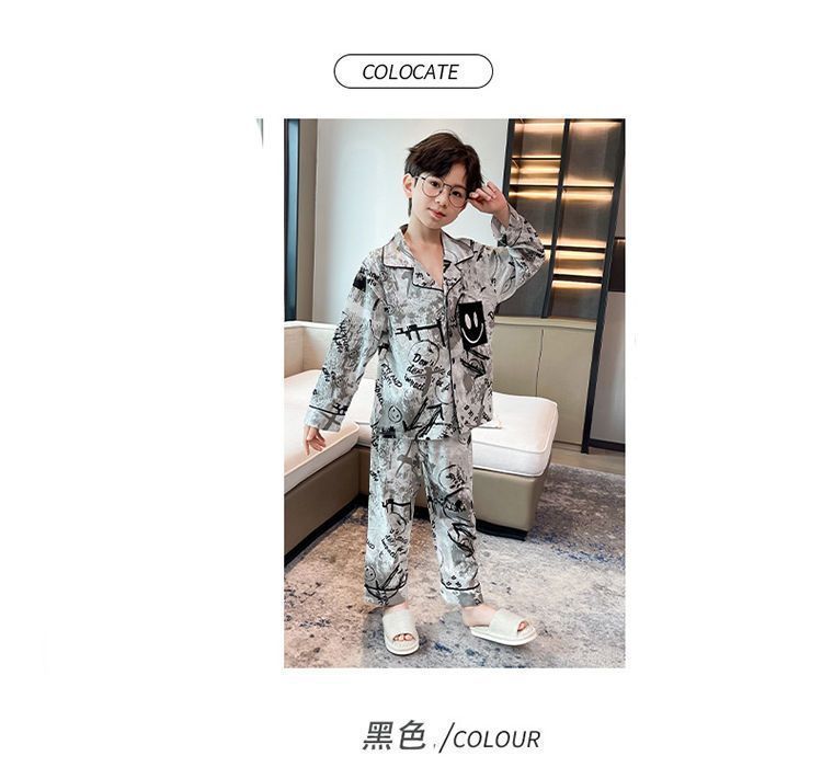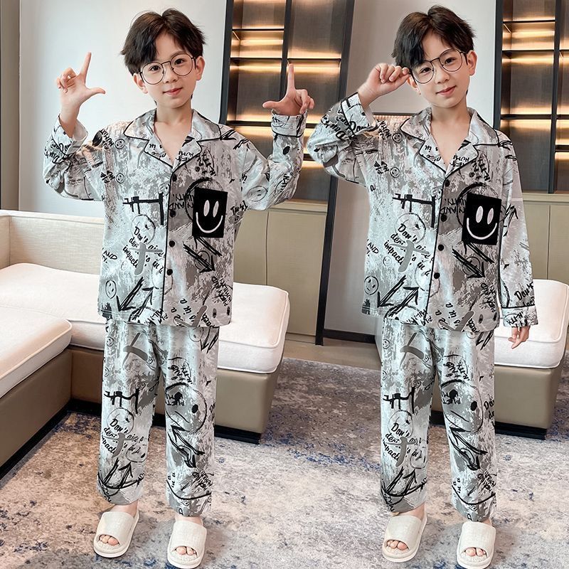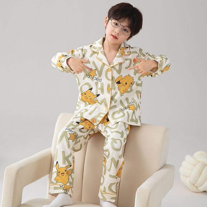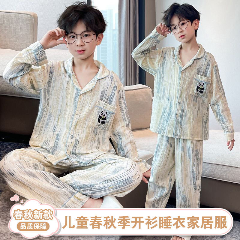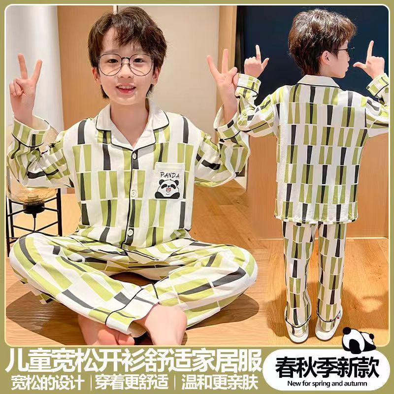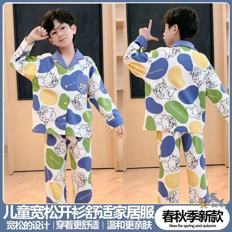 새로운 긴 소매 카디건 느슨한 통기성 홈 옷 잠옷 봄과 가을 부드러운 만화 절묘한 소년 세트스토어 가기