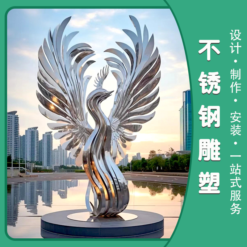 대형 조경 스테인레스 스틸 피닉스 조각 야외 정원 커뮤니티 호텔 장식 거울 스테인레스 스틸 동물 조각