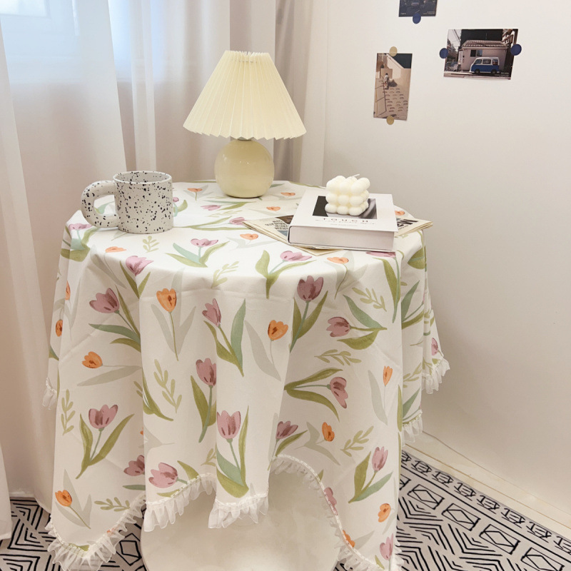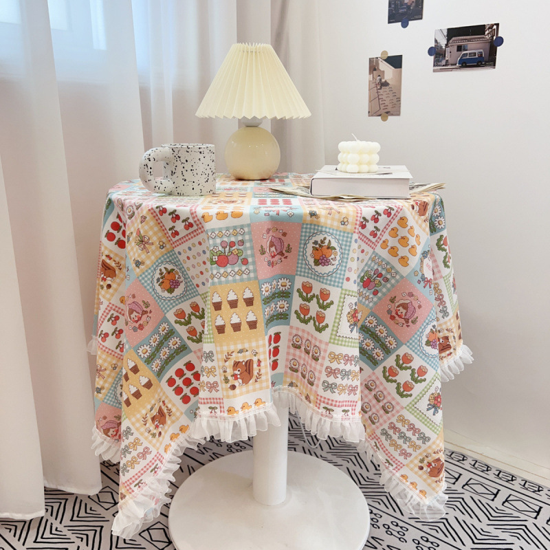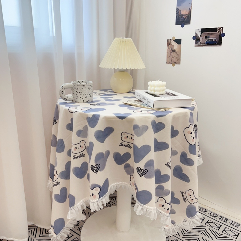 Tassel 레이스 Ins 스타일 식탁보 소녀 하트 만화 꽃 라운드 테이블 스퀘어 테이블 학생 데스크 매트 인터넷 레드 벨벳 패브릭스토어 가기