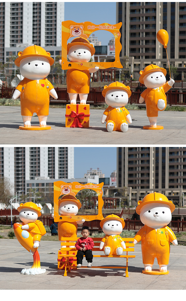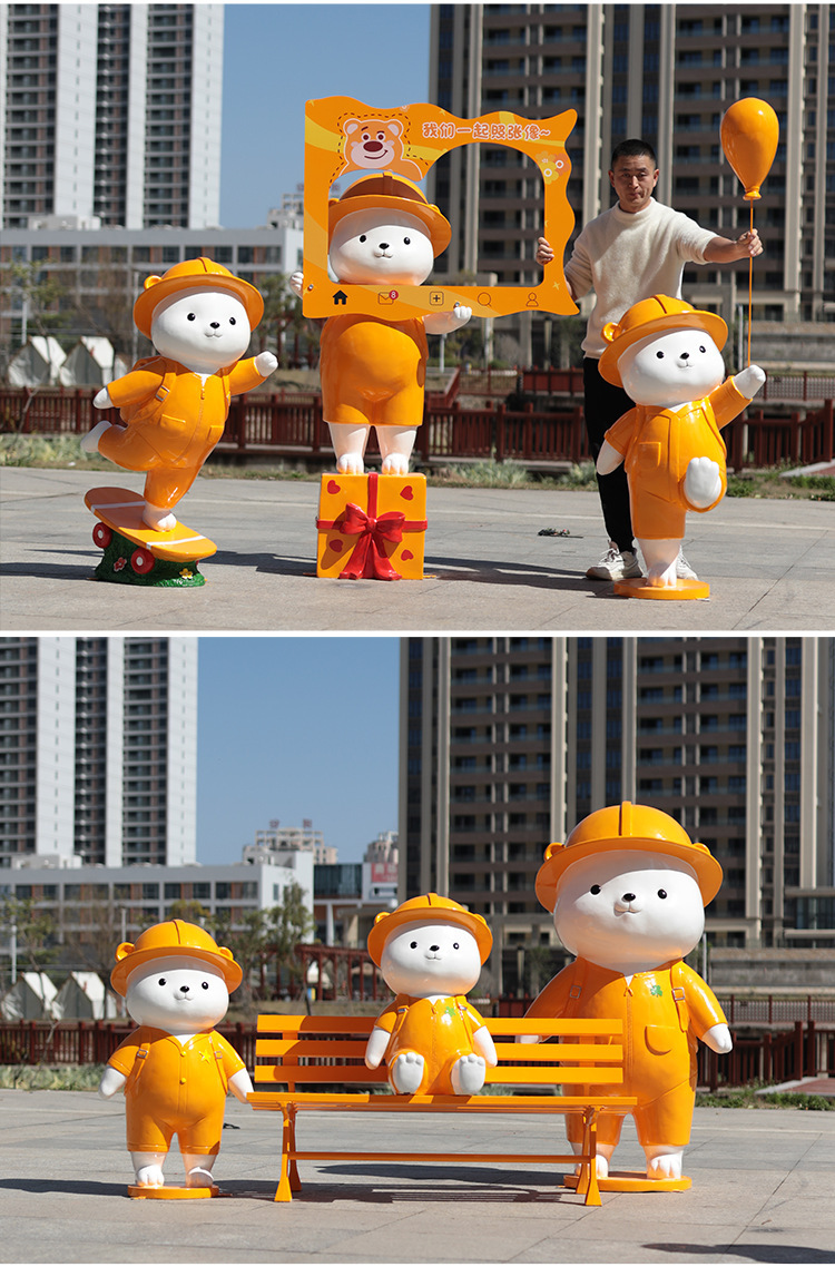 Carto 곰 유리 섬유 강화 플라스틱 조각 우유 차 가게 쇼핑몰 사진 명승지 그물 빨간 펀치 카드 미국 첸 장식 바닥 장식품