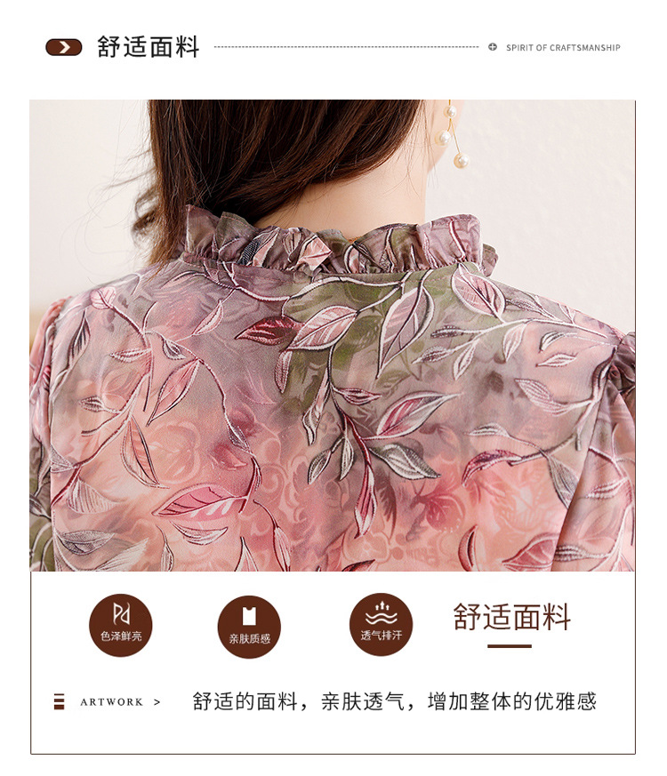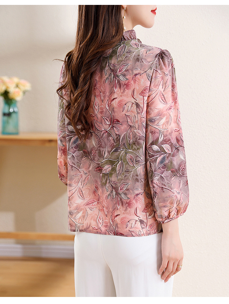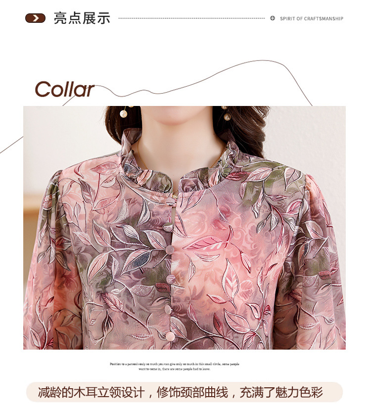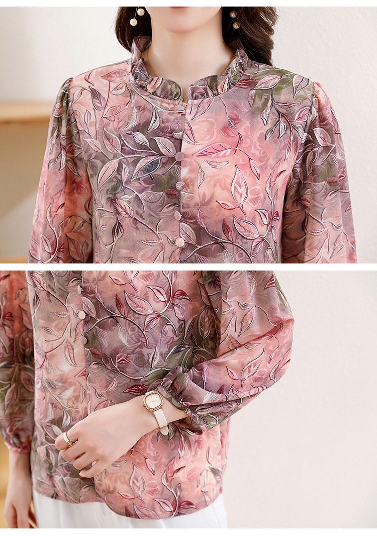 2025 봄 긴 소매 새로운 중국 스타일 국가 스타일 디자인 센스 기질 인쇄 목재 귀 칼라 셔츠 유행 최고 여성 도매