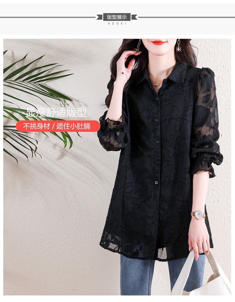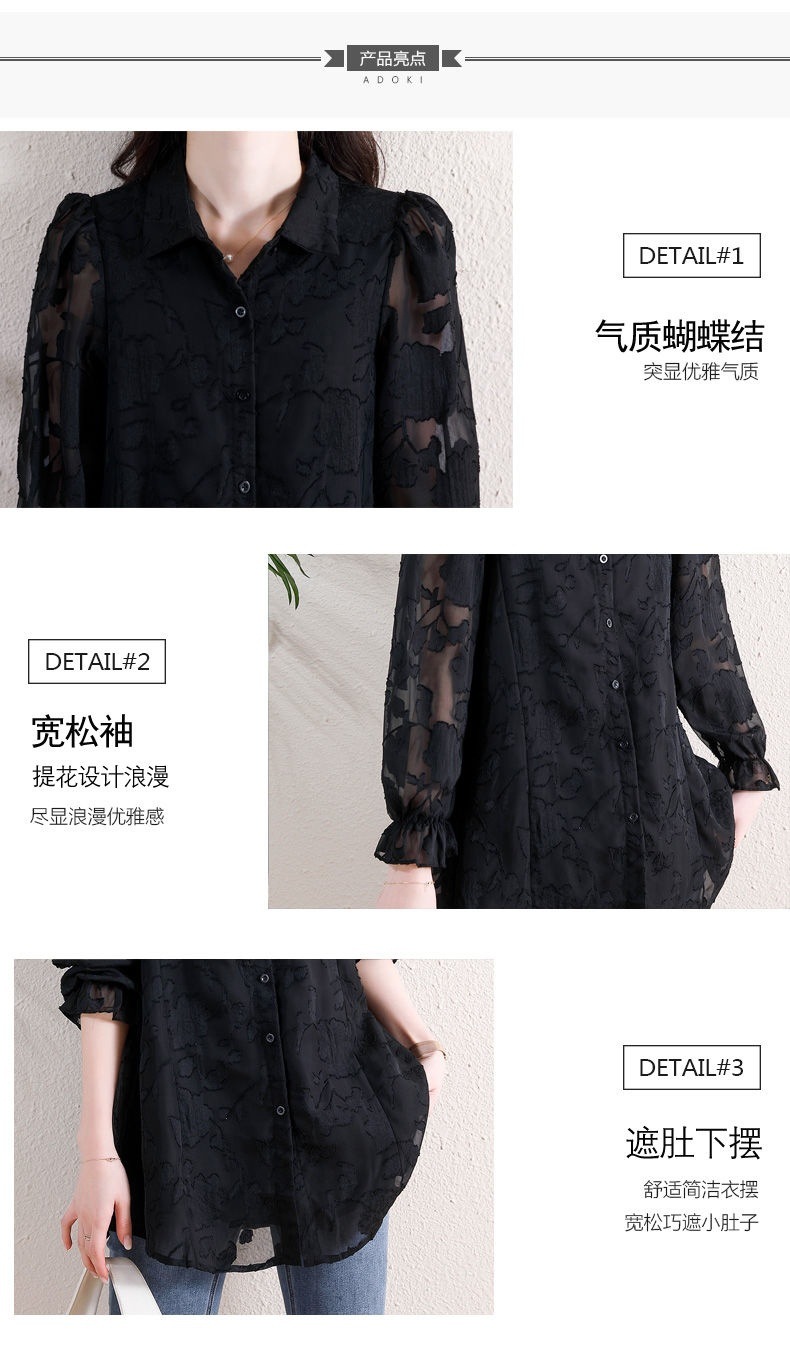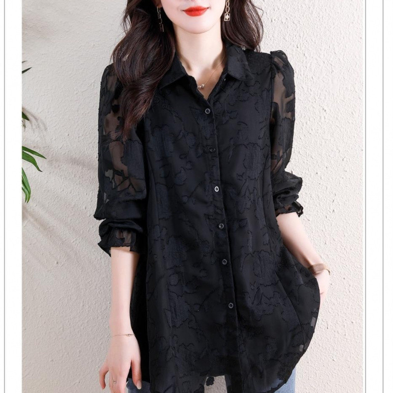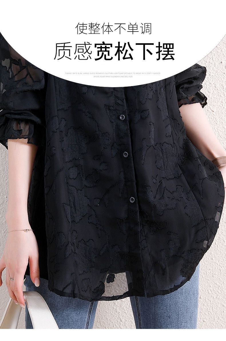 F6B 플러스 사이즈 쉬폰 셔츠 여성 느슨한 할로우 최고 지방 자매 200 진 벨리 커버 슬림 레이스베이스 셔츠스토어 가기