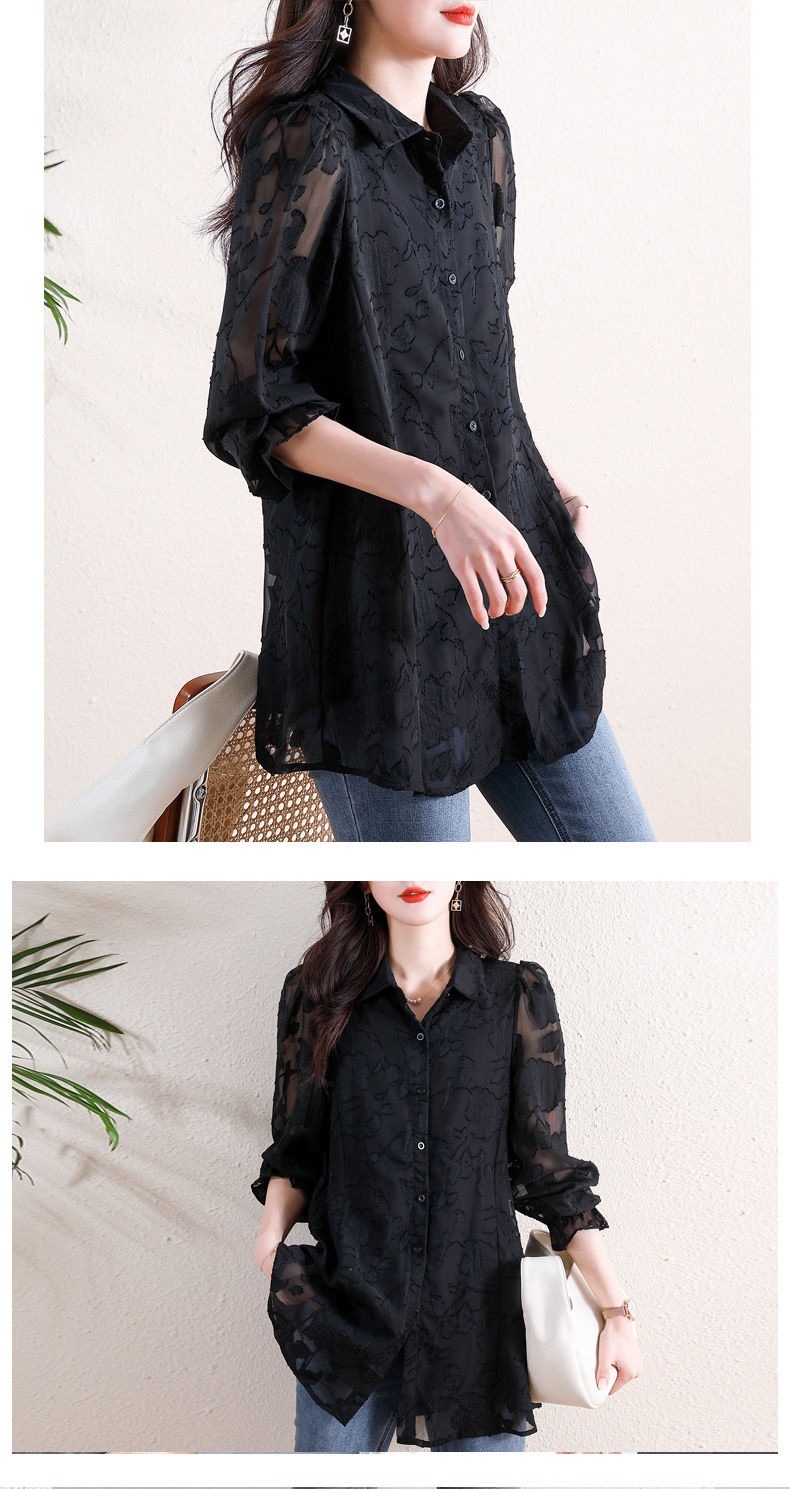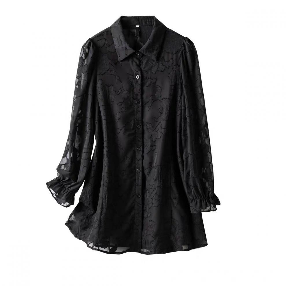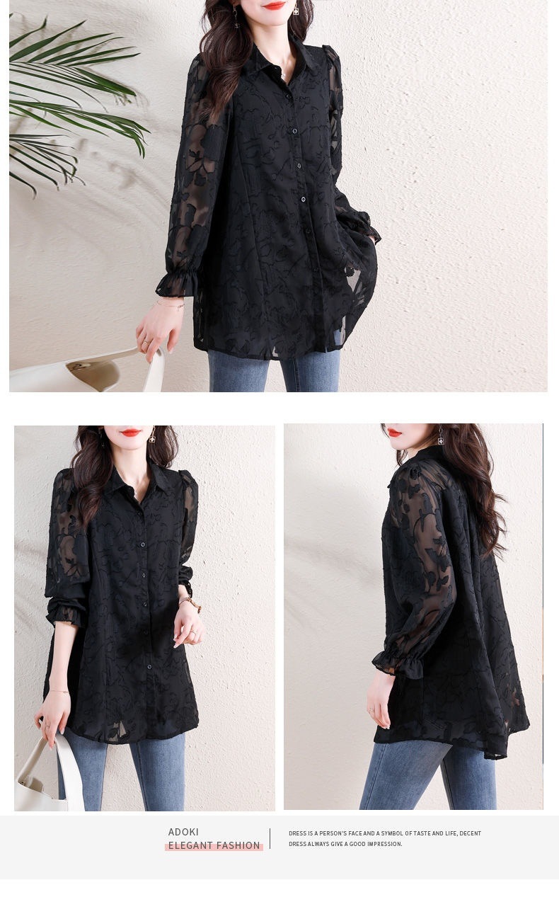 F6B 플러스 사이즈 쉬폰 셔츠 여성 느슨한 할로우 최고 지방 자매 200 진 벨리 커버 슬림 레이스베이스 셔츠스토어 가기