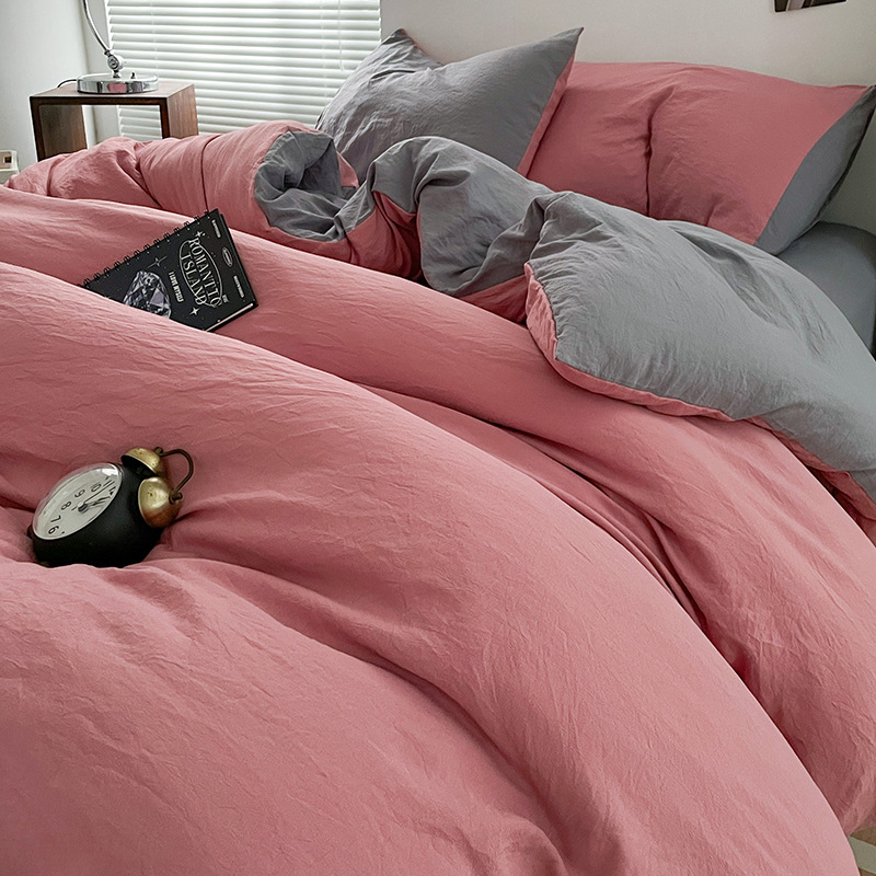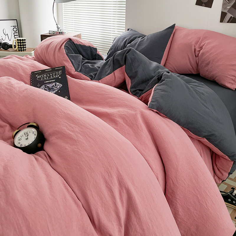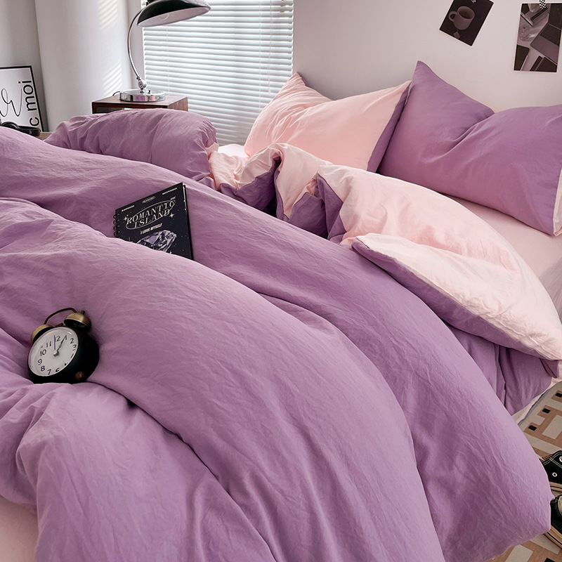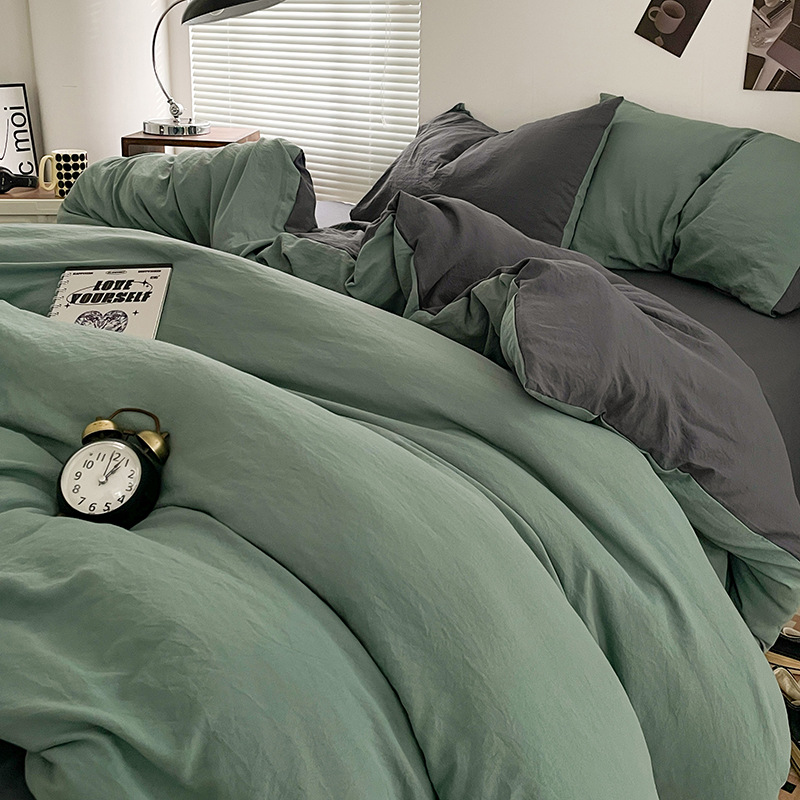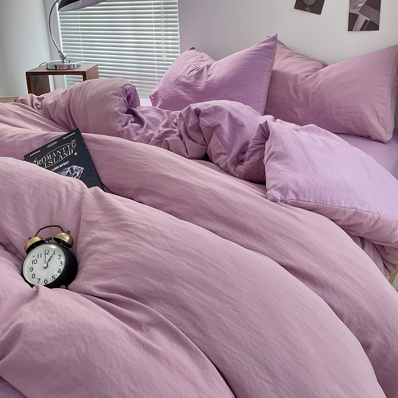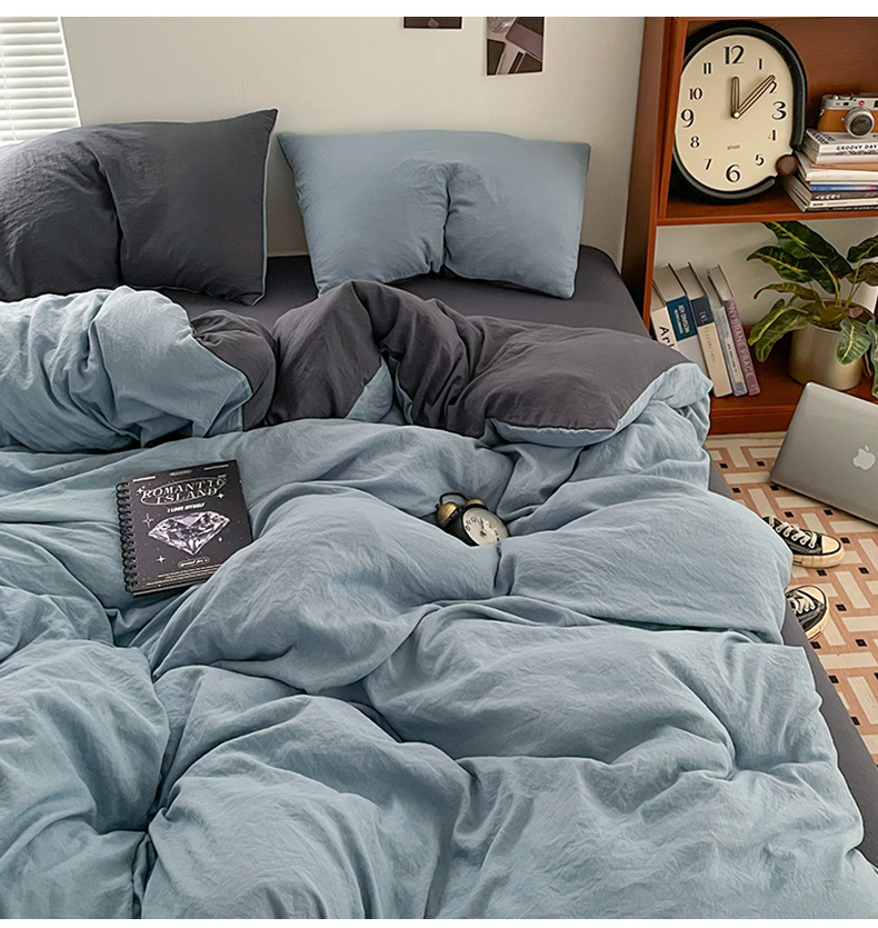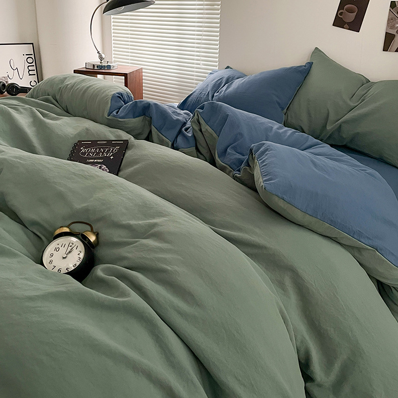 간단한 침구 4 조각 세트 씻은 면화 침대 시트 퀼트 커버 침대 커버 학생 기숙사 싱글 더블 3 피스 세트