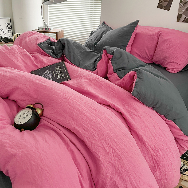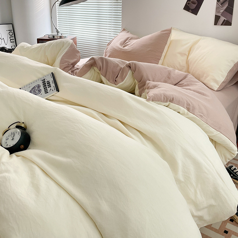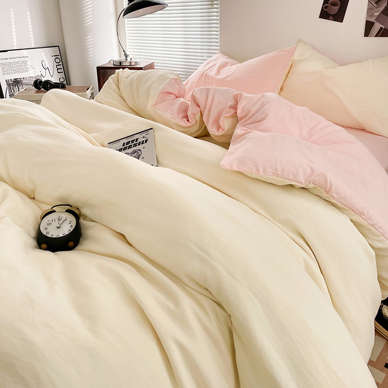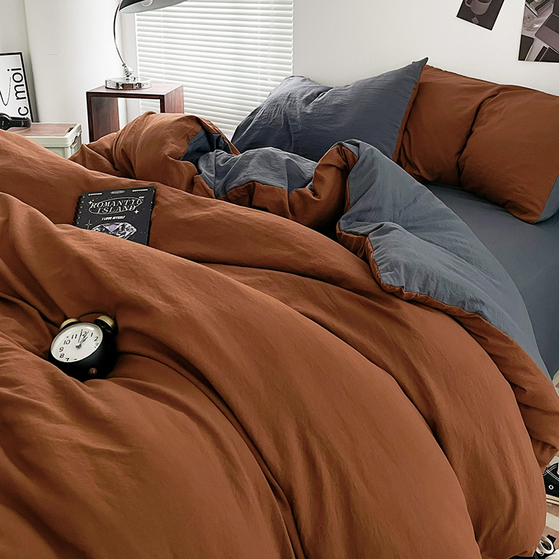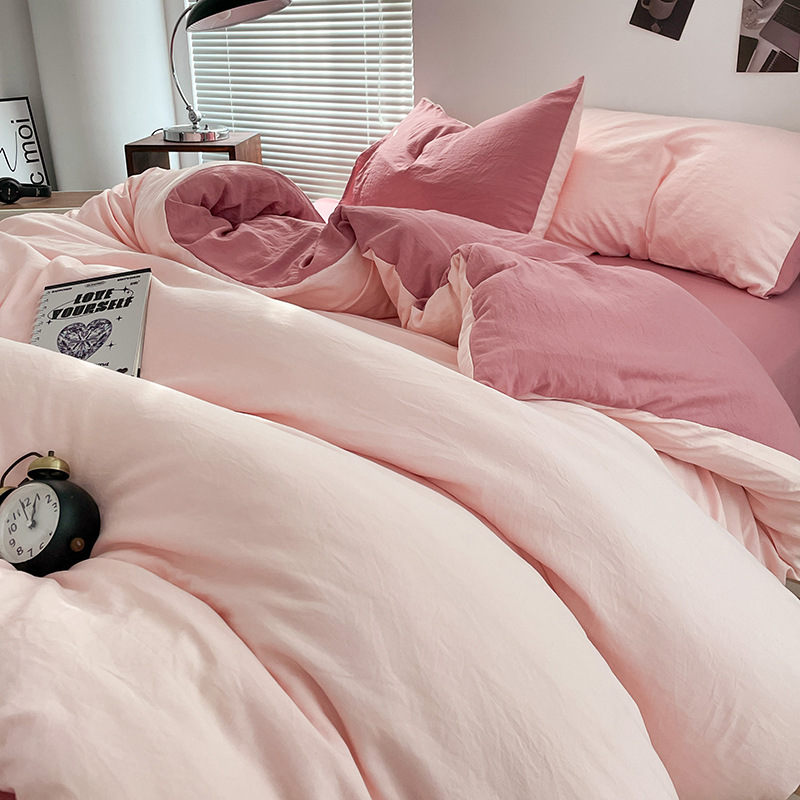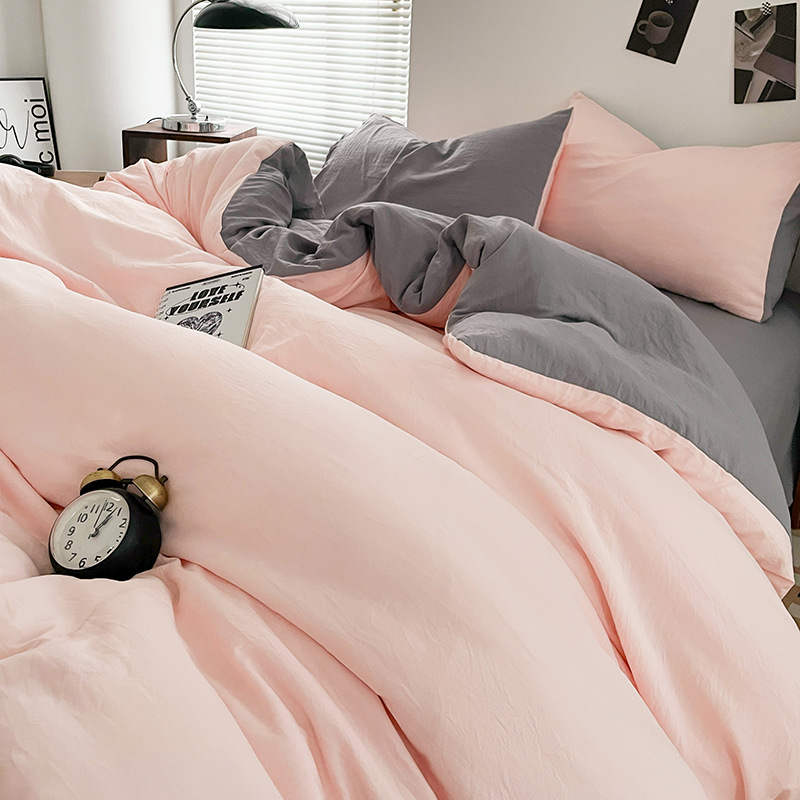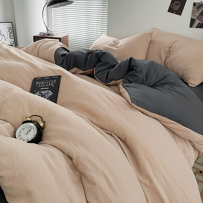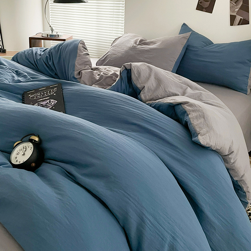 간단한 침구 4 조각 세트 씻은 면화 침대 시트 퀼트 커버 침대 커버 학생 기숙사 싱글 더블 3 피스 세트