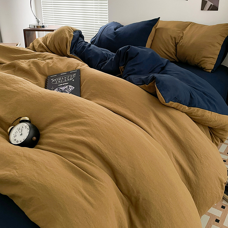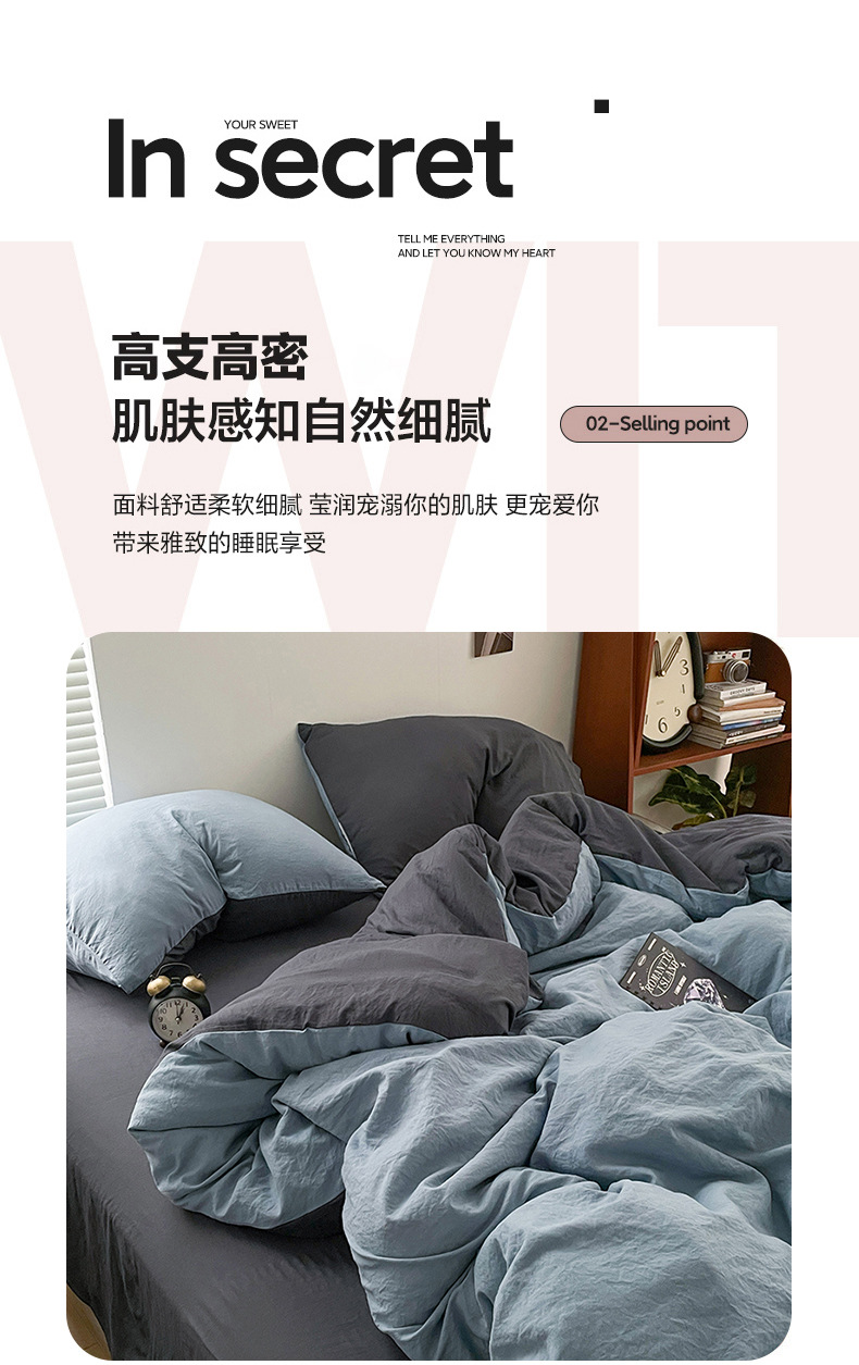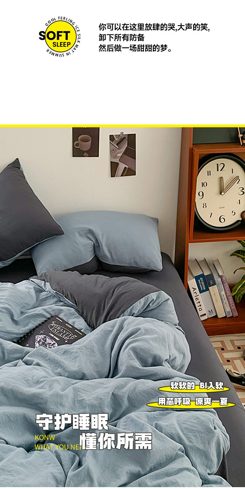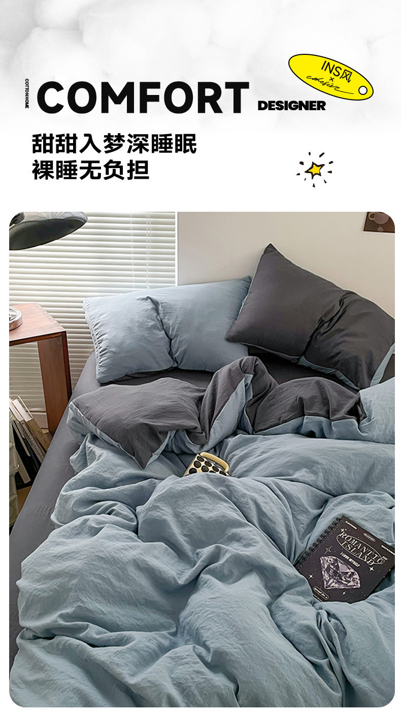 간단한 침구 4 조각 세트 씻은 면화 침대 시트 퀼트 커버 침대 커버 학생 기숙사 싱글 더블 3 피스 세트스토어 가기