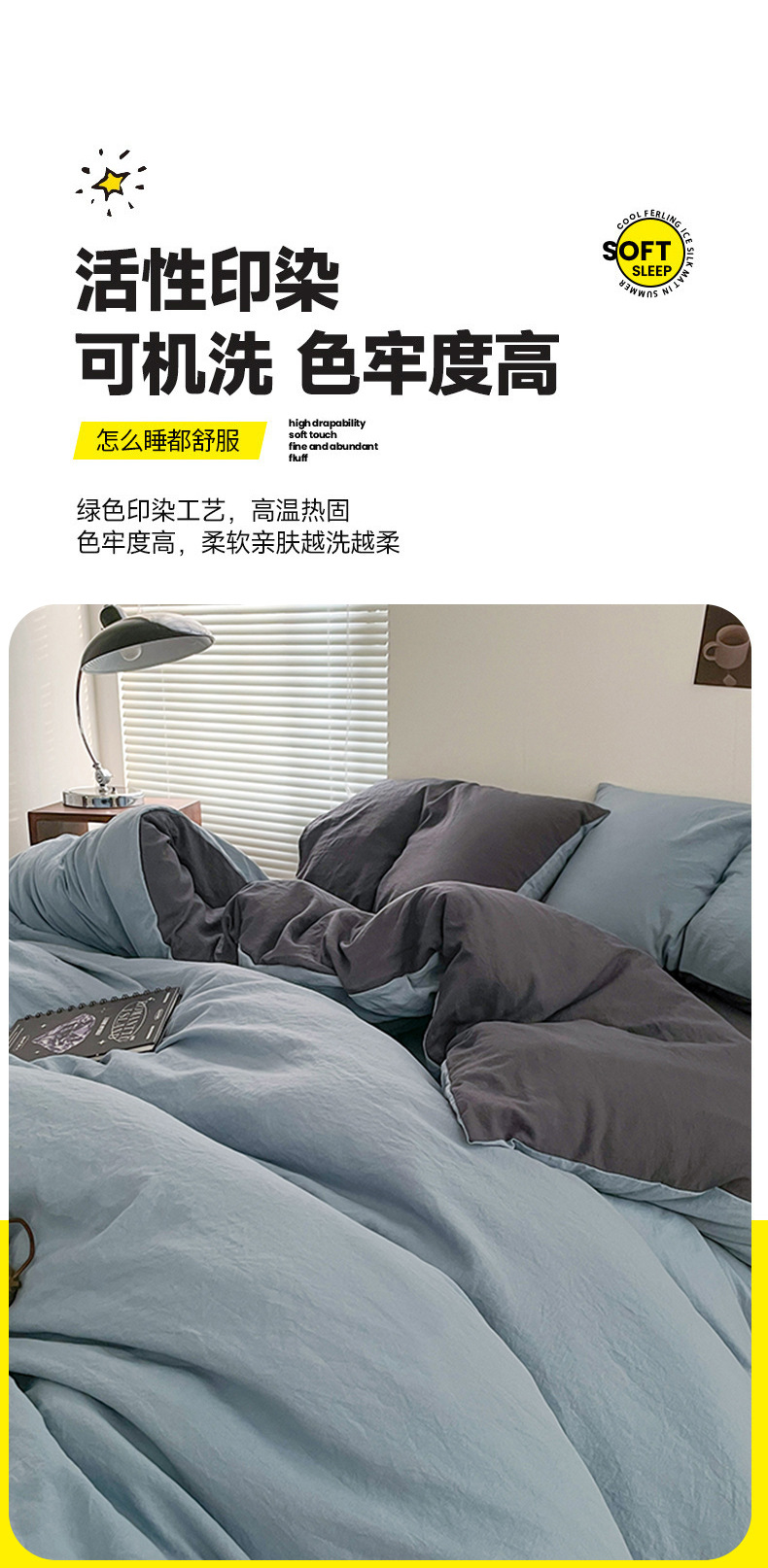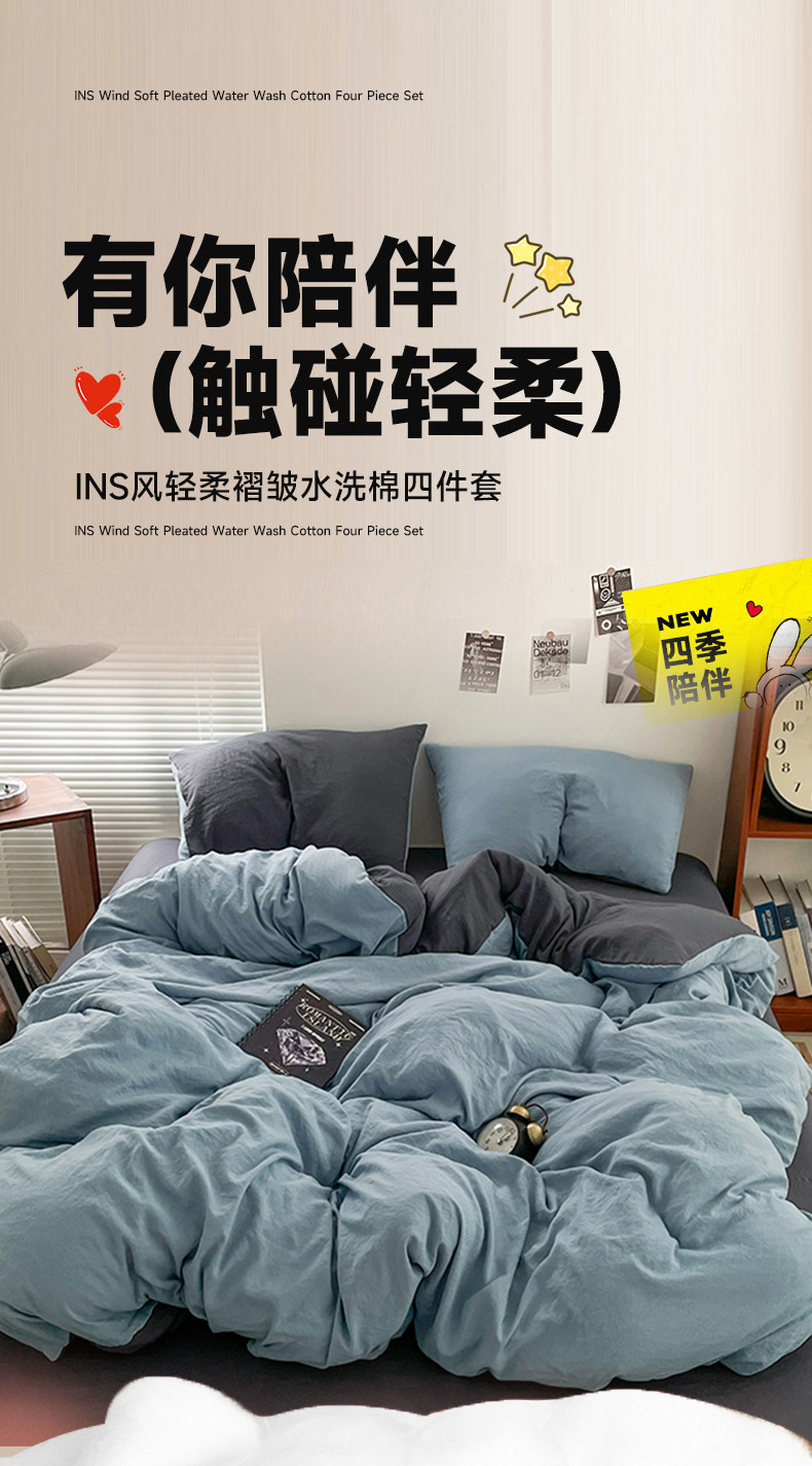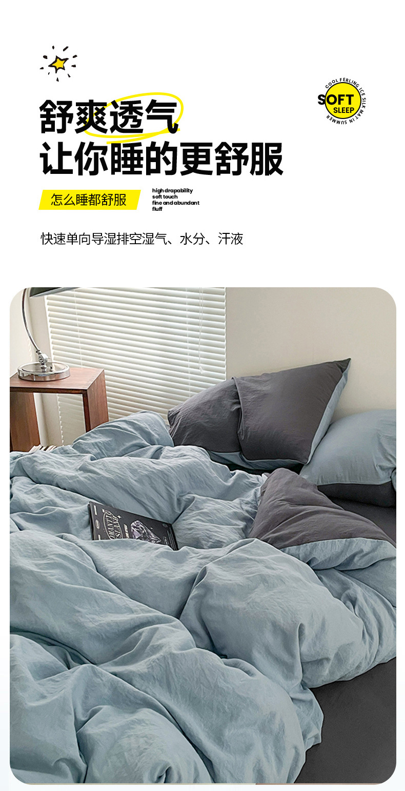 간단한 침구 4 조각 세트 씻은 면화 침대 시트 퀼트 커버 침대 커버 학생 기숙사 싱글 더블 3 피스 세트스토어 가기