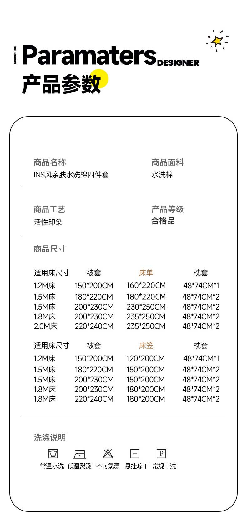 • 적용 가능한 침대 크기: 1.5m 침대 시트, 4피스 이불 커버 200x230