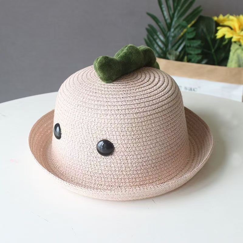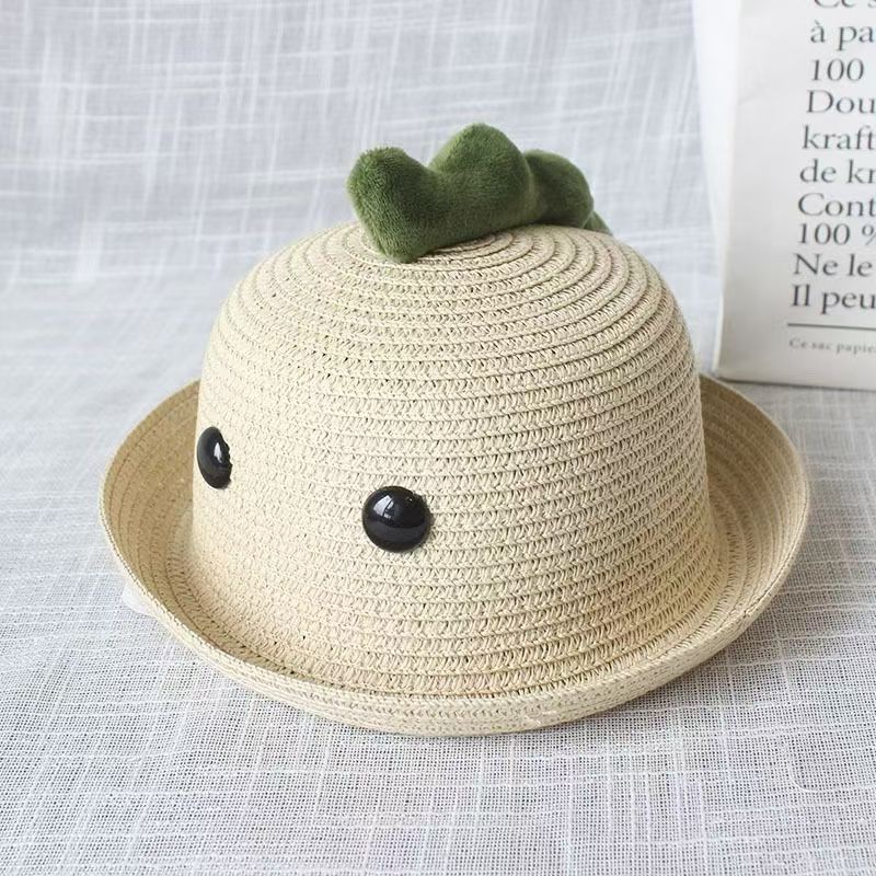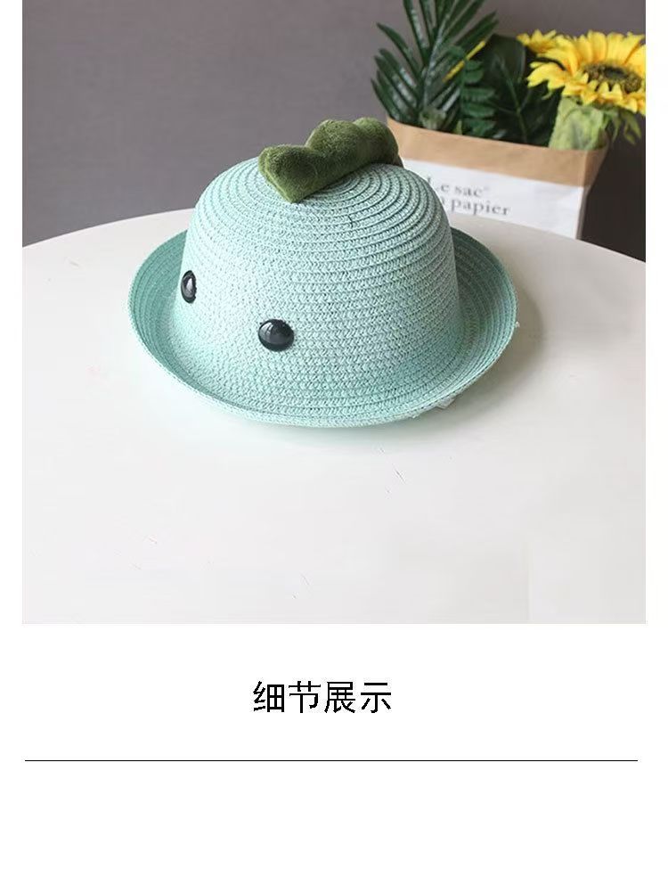공룡 눈 아기 밀짚 모자 귀여운 슈퍼 귀여운 여름 남자와 여자 어린이 해변 차양 모자 아이들의 태양 보호 분지 모자