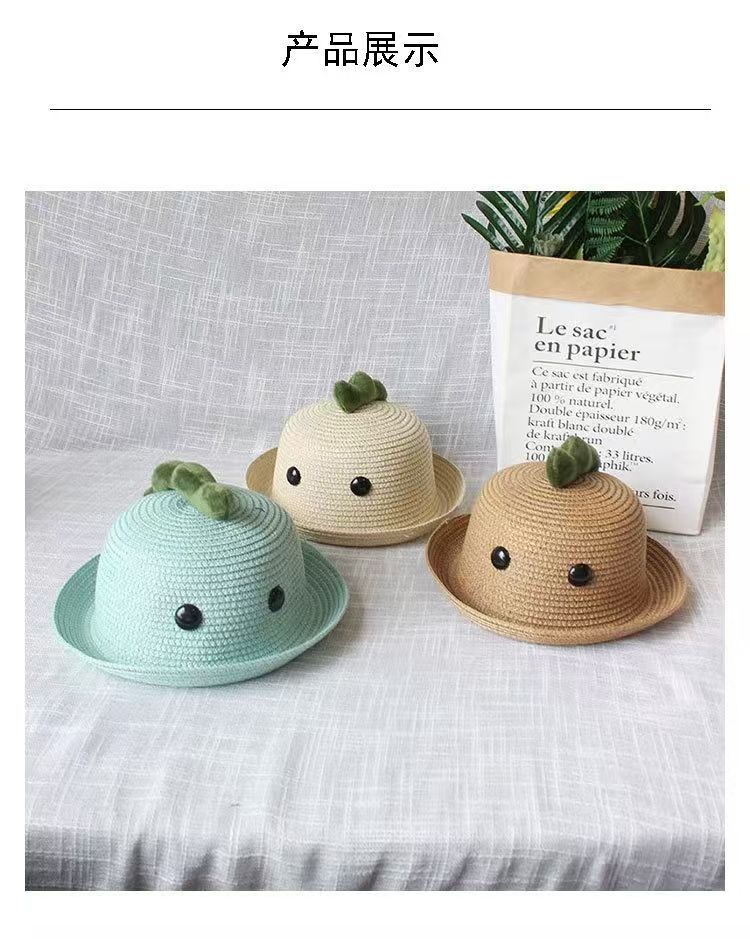 공룡 눈 아기 밀짚 모자 귀여운 슈퍼 귀여운 여름 남자와 여자 어린이 해변 차양 모자 아이들의 태양 보호 분지 모자스토어 가기