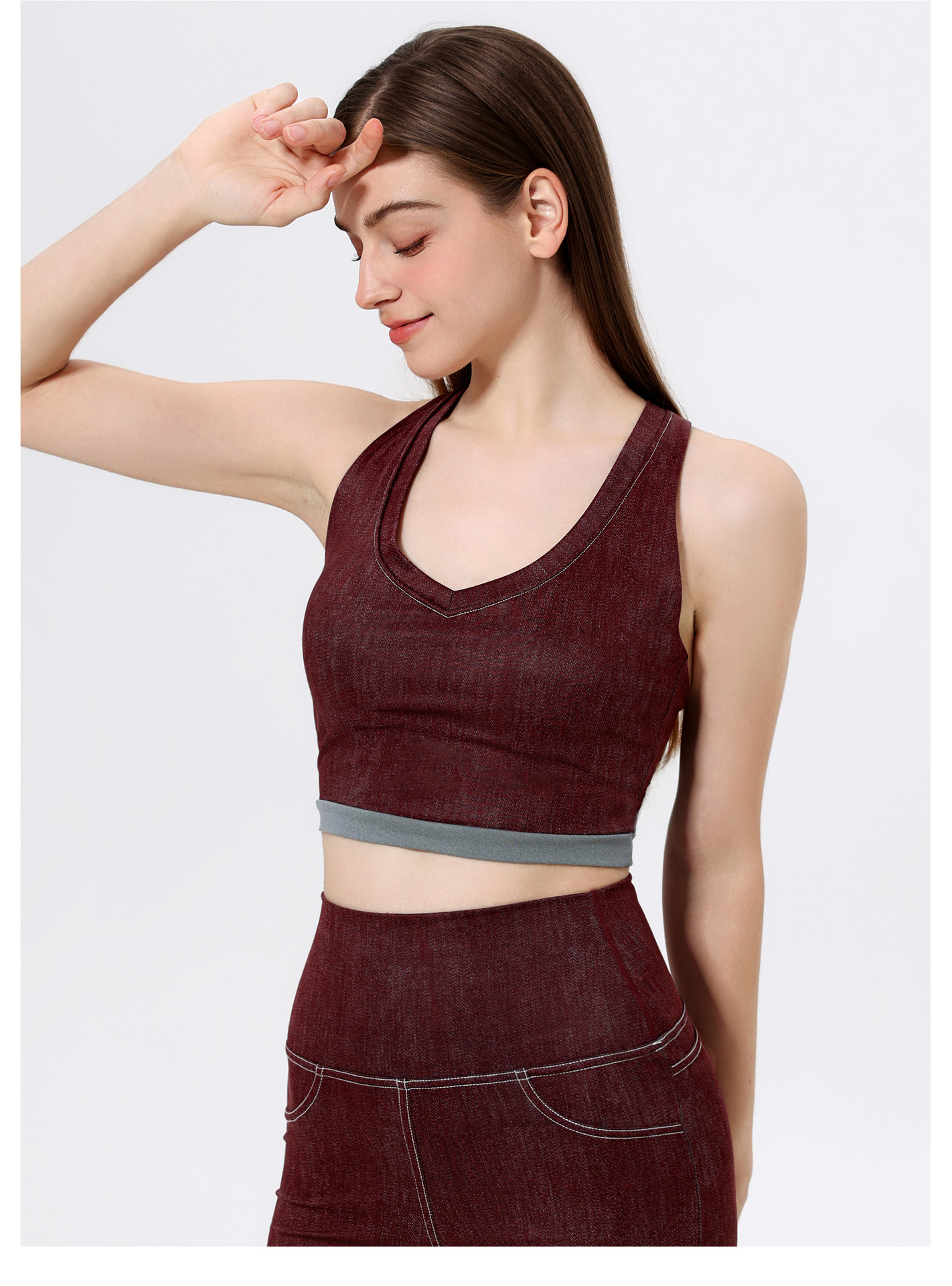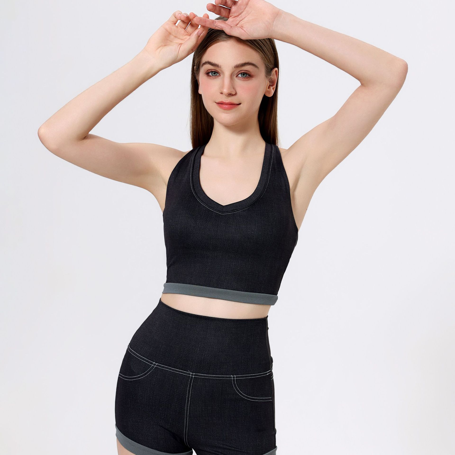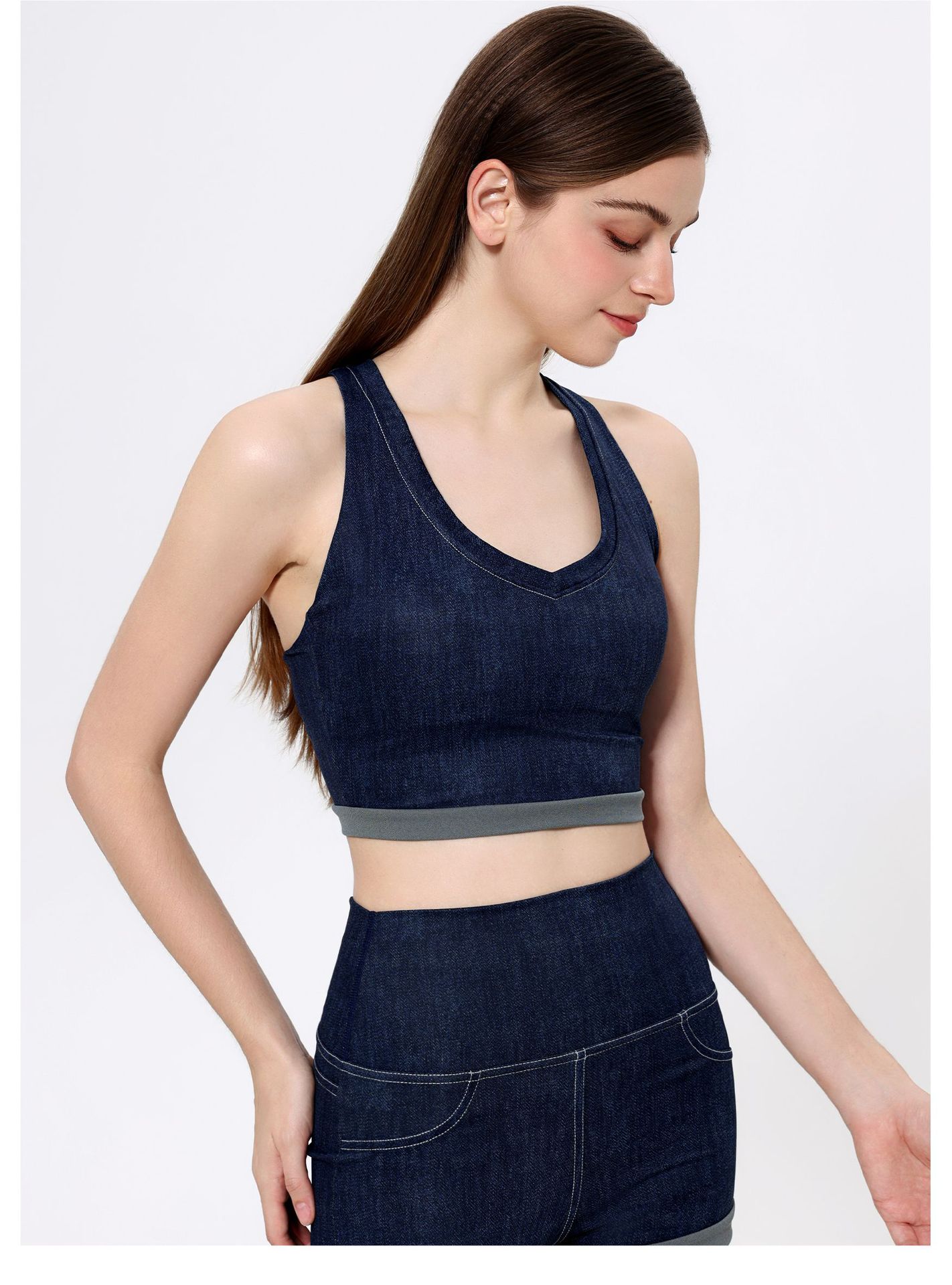 브라만 하트 모조 데님 스포츠 속옷 여성 달리기 아름다운 등받이 필라테스 피트니스 브라 아우터 조끼 요가 옷스토어 가기