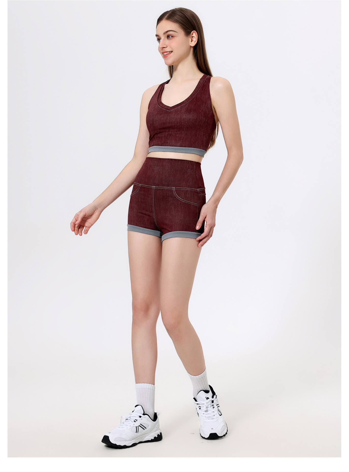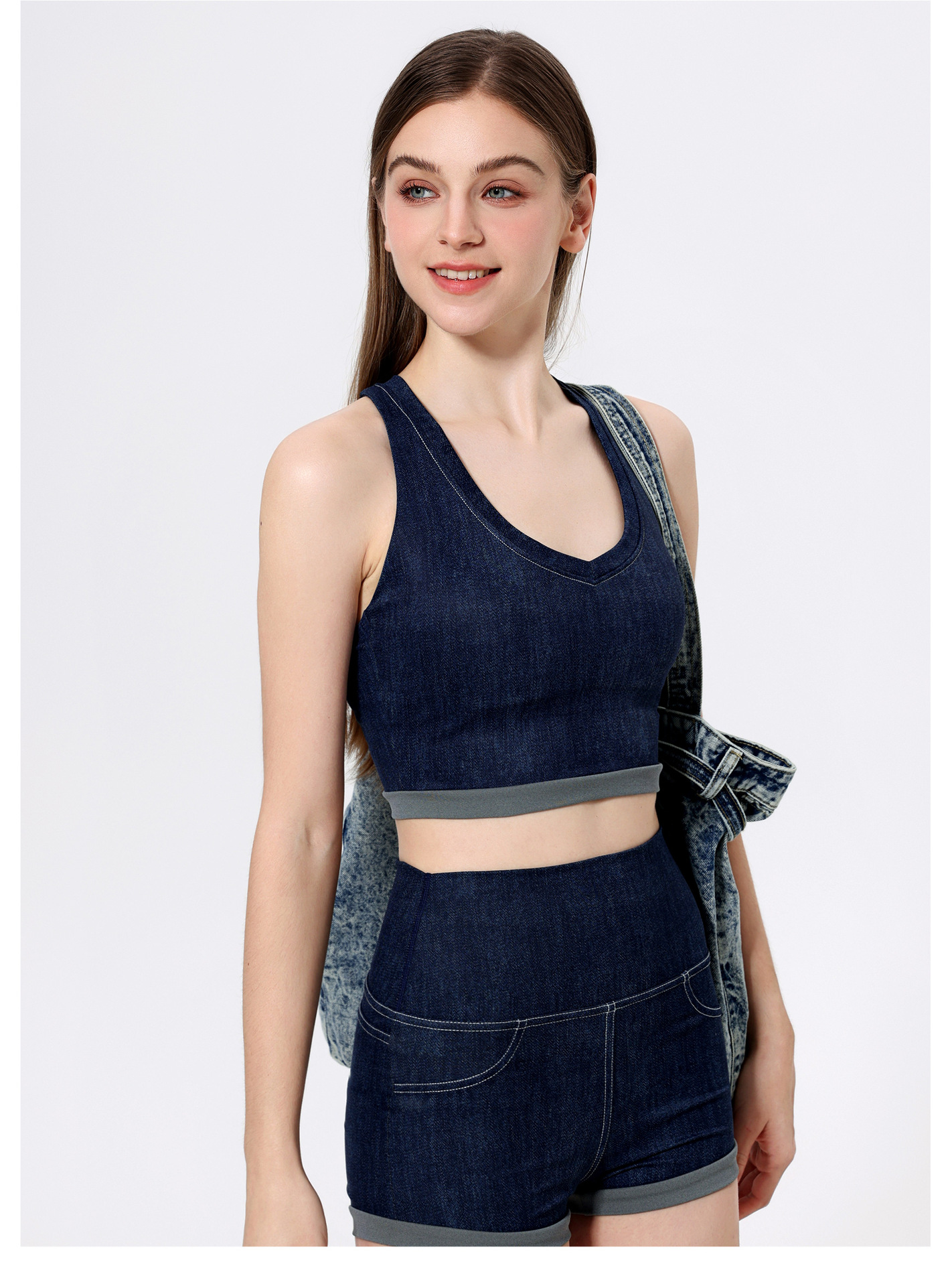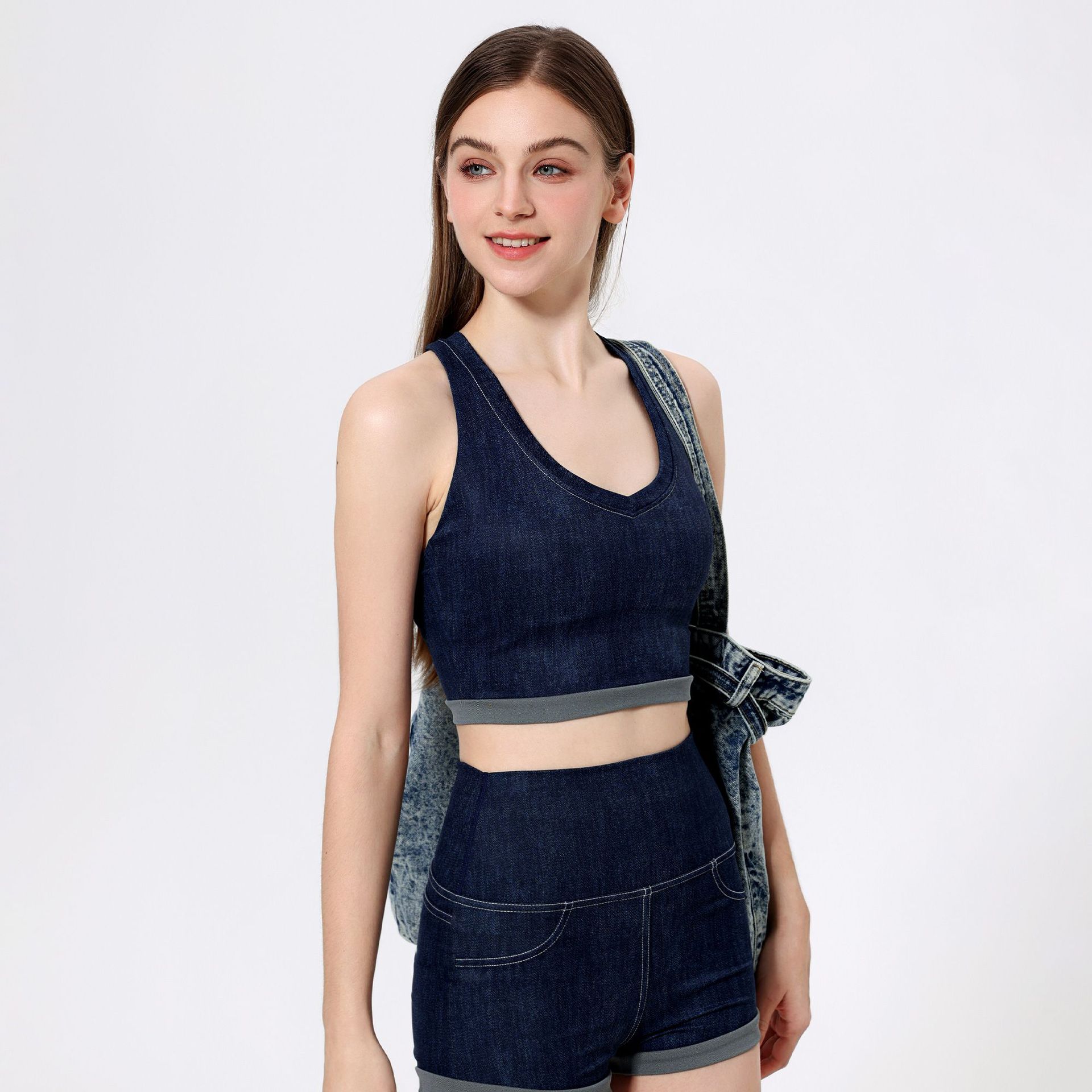 브라만 하트 모조 데님 스포츠 속옷 여성 달리기 아름다운 등받이 필라테스 피트니스 브라 아우터 조끼 요가 옷