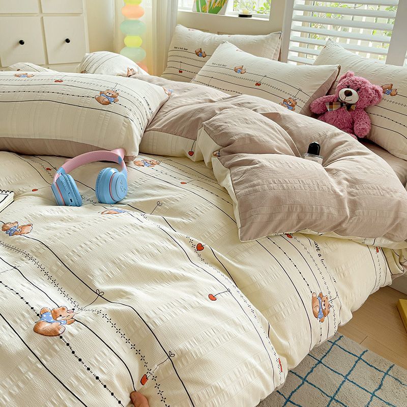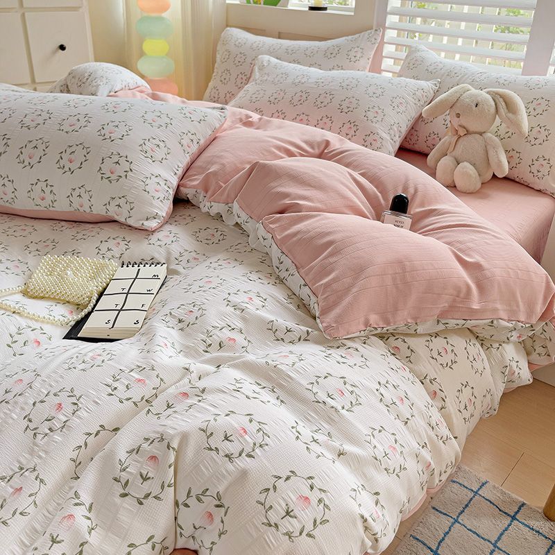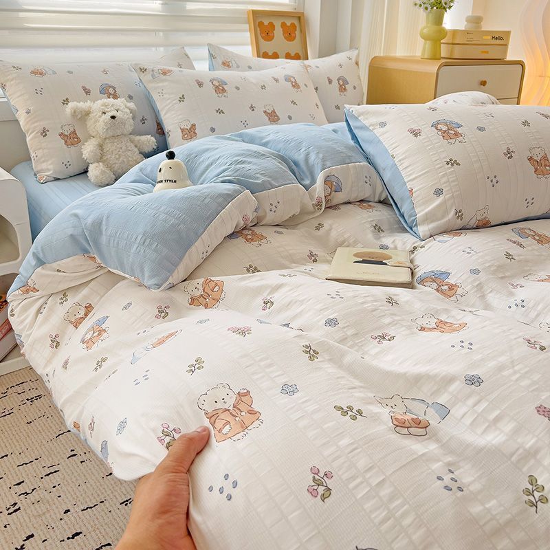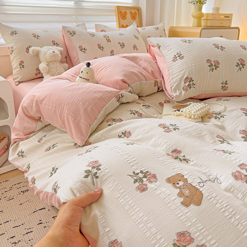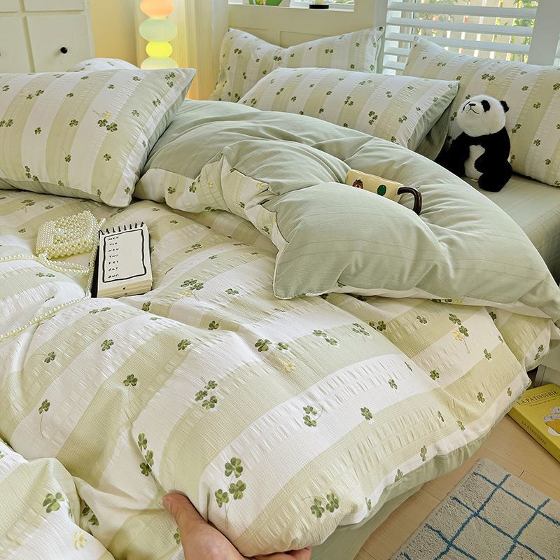 피부 친화적 인 통기성 폼 코튼 4 피스 세트 슈퍼 소프트 자카드 봄 여름 가을 Ins 스타일 학생 퀼트 커버 3 피스 세트스토어 가기
