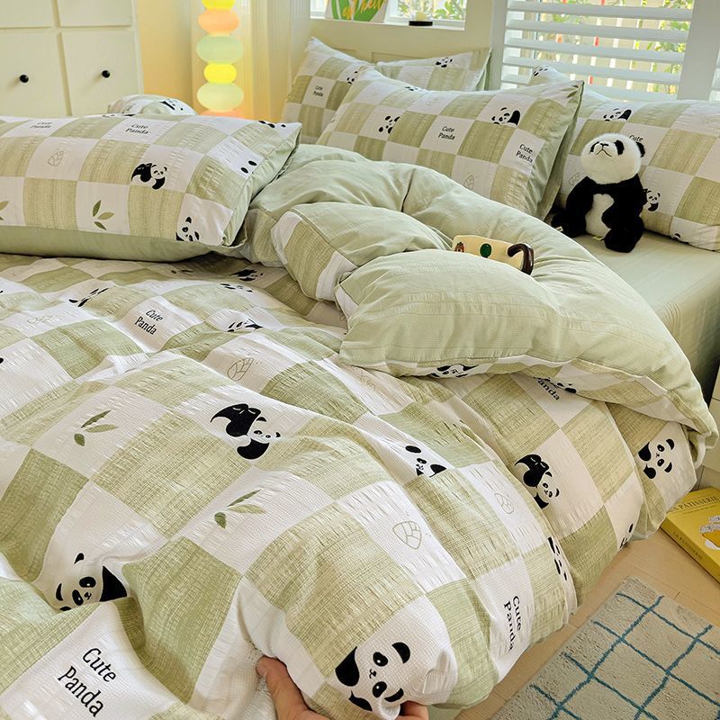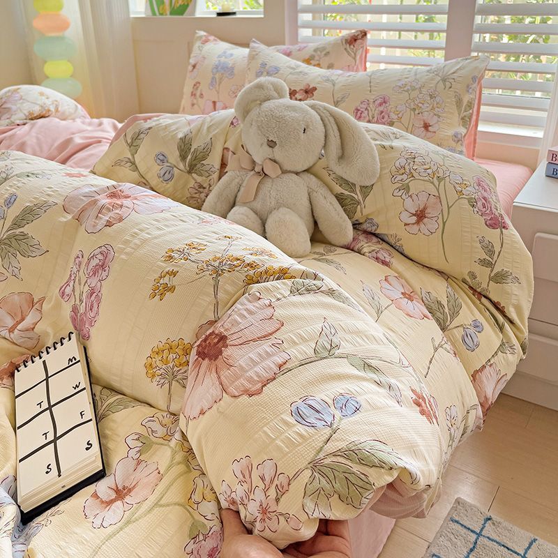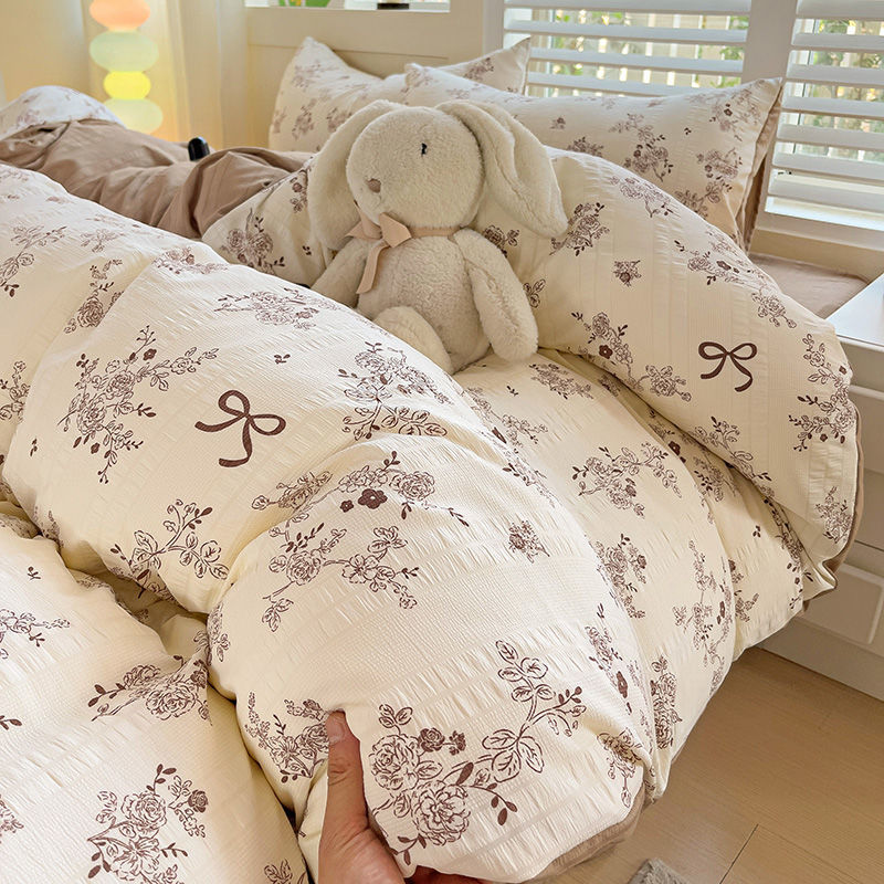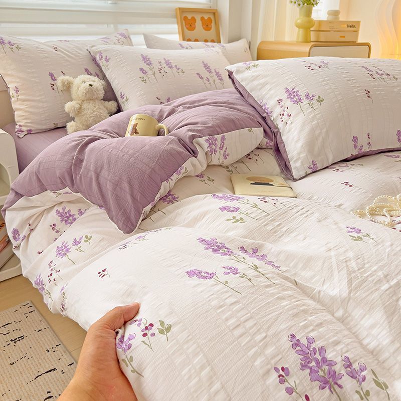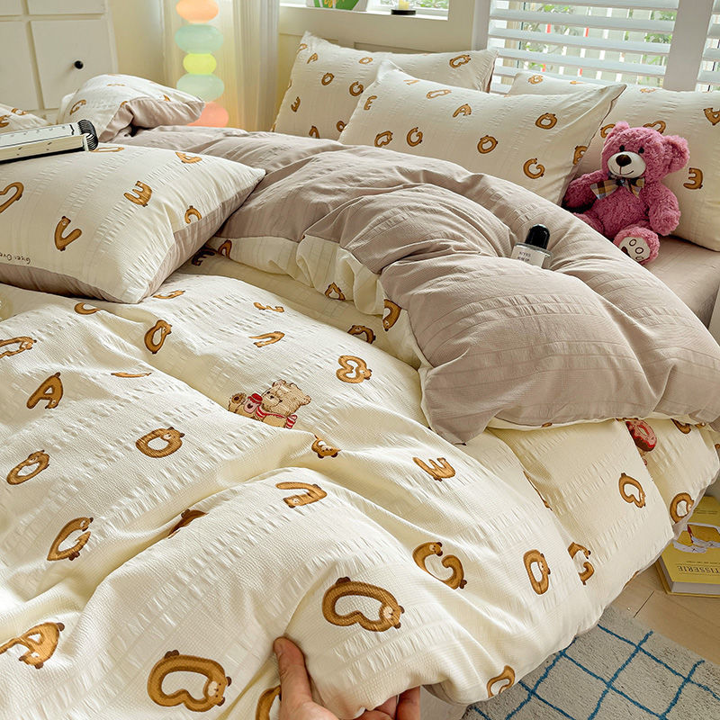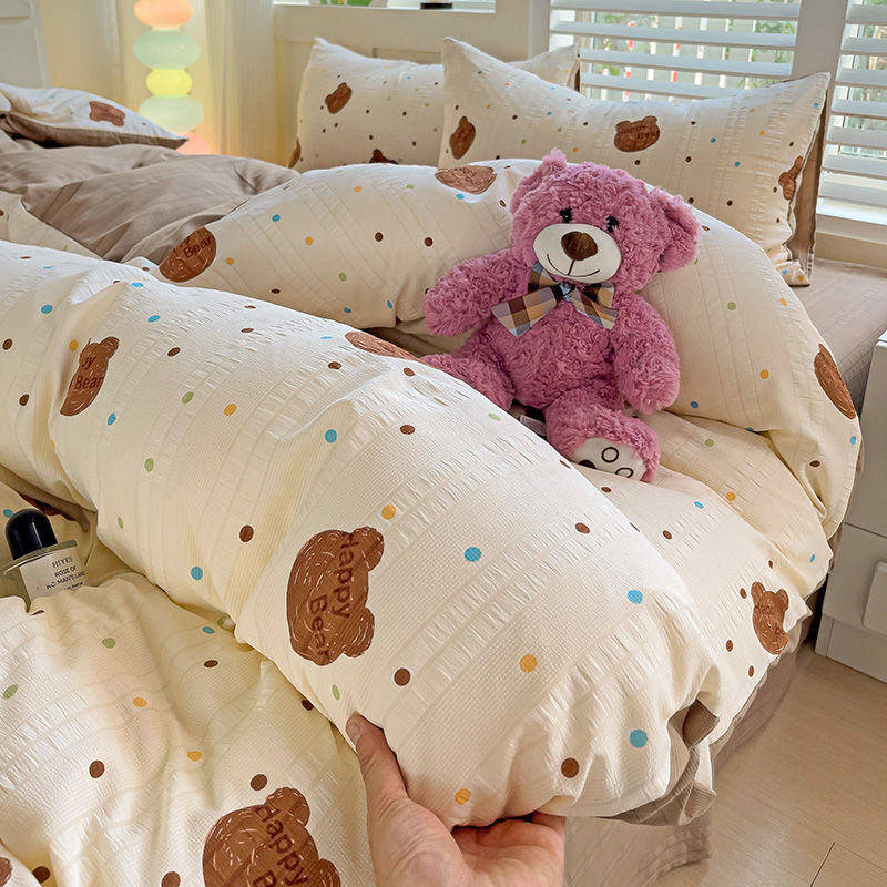 피부 친화적 인 통기성 폼 코튼 4 피스 세트 슈퍼 소프트 자카드 봄 여름 가을 Ins 스타일 학생 퀼트 커버 3 피스 세트스토어 가기