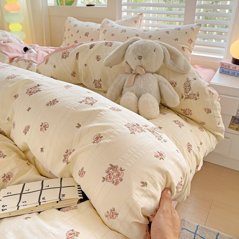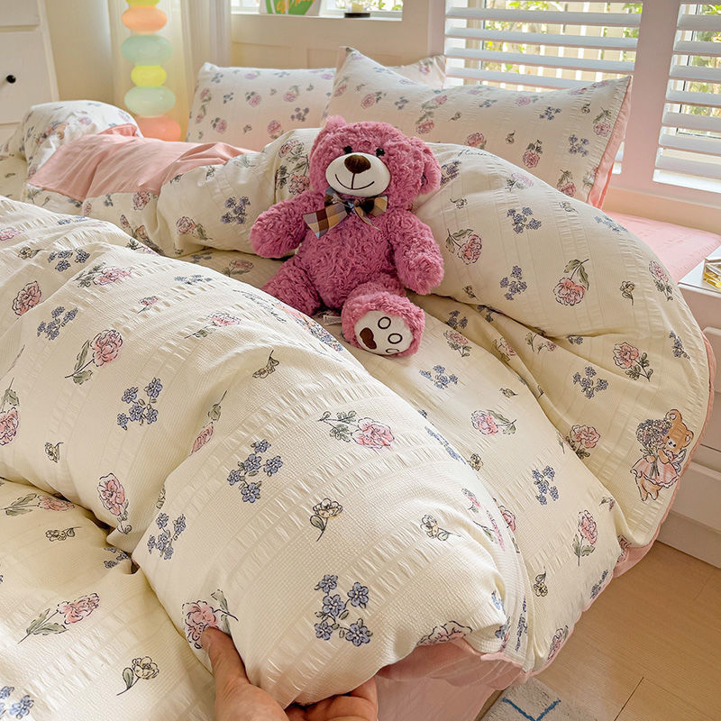 피부 친화적 인 통기성 폼 코튼 4 피스 세트 슈퍼 소프트 자카드 봄 여름 가을 Ins 스타일 학생 퀼트 커버 3 피스 세트