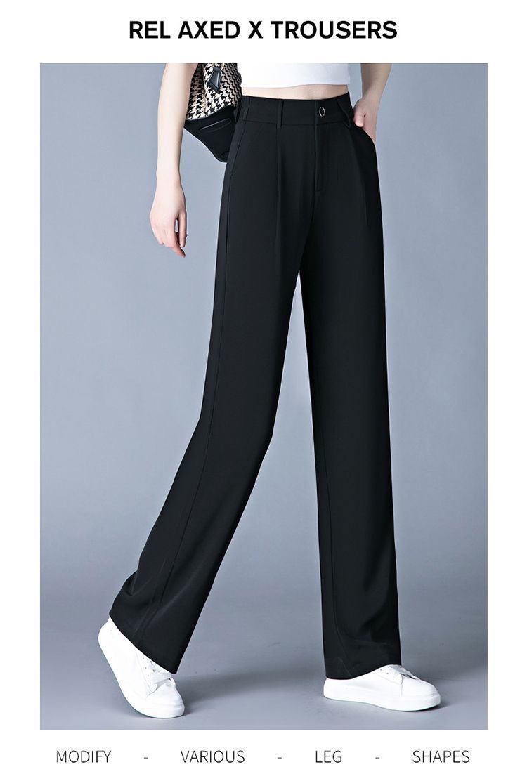 좁은 직선 다리 바지 여자 여름 얇은 높은 허리 넓은 다리 바지 느슨한 올매치 세트 바지 캐주얼 바지