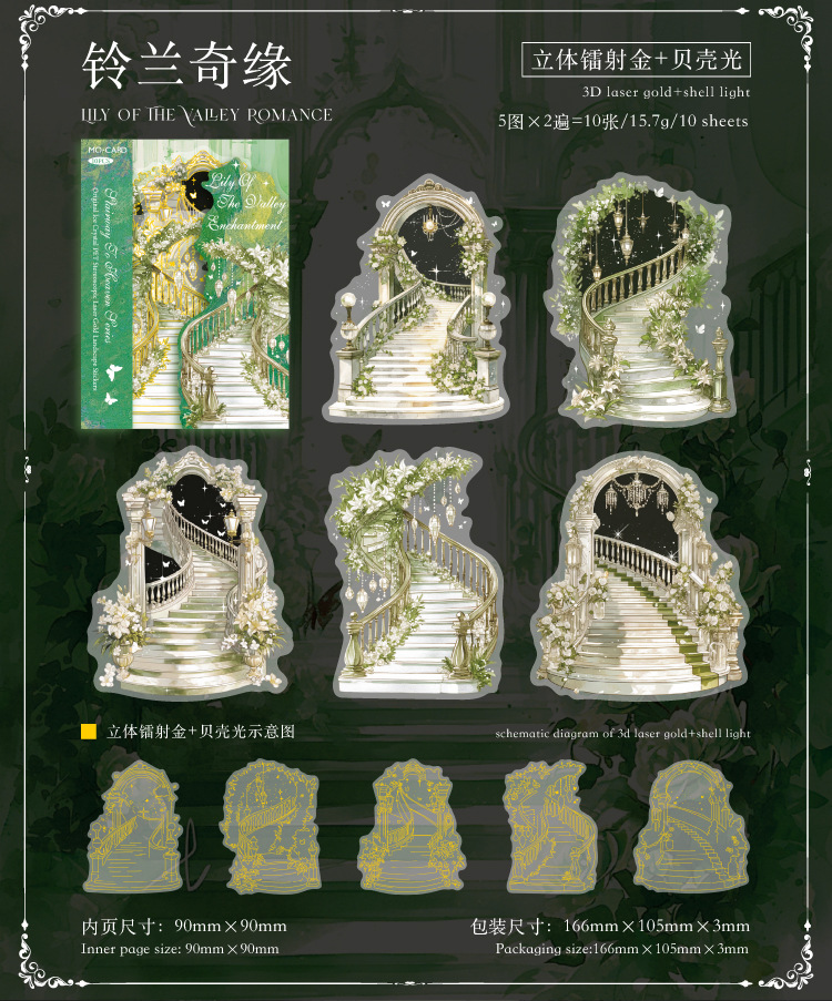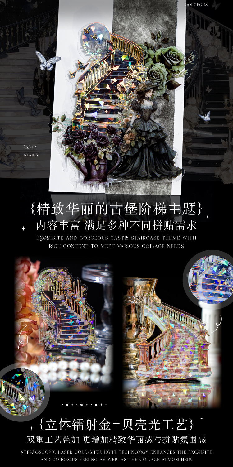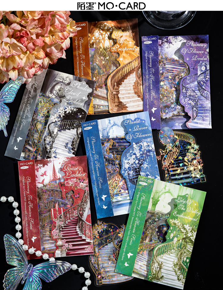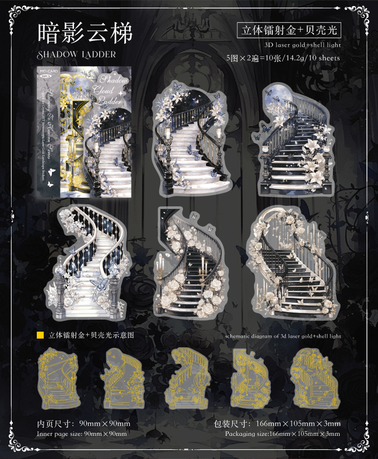모 잉크 얼음 크리스탈 PET 스테레오 레이저 골드 스티커-천국의 사다리 시리즈 장미 사다리 등 10 에서 6스토어 가기