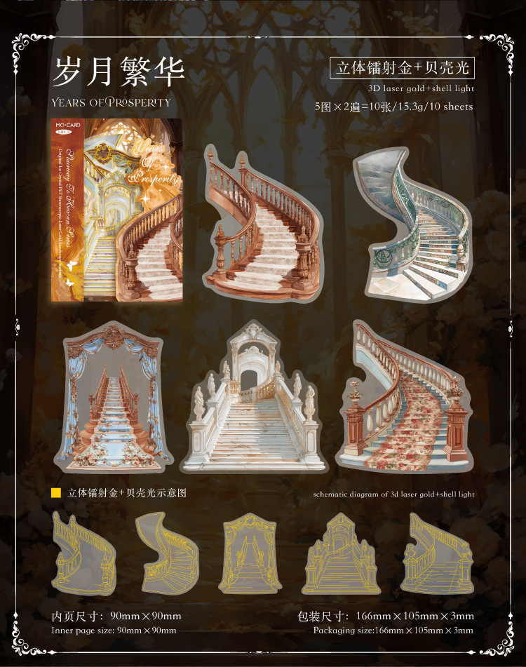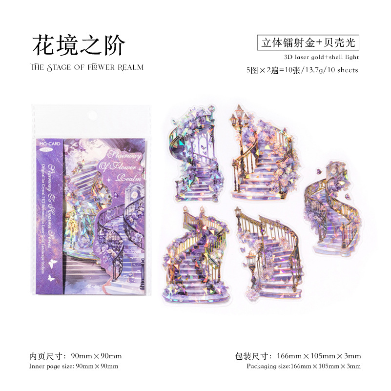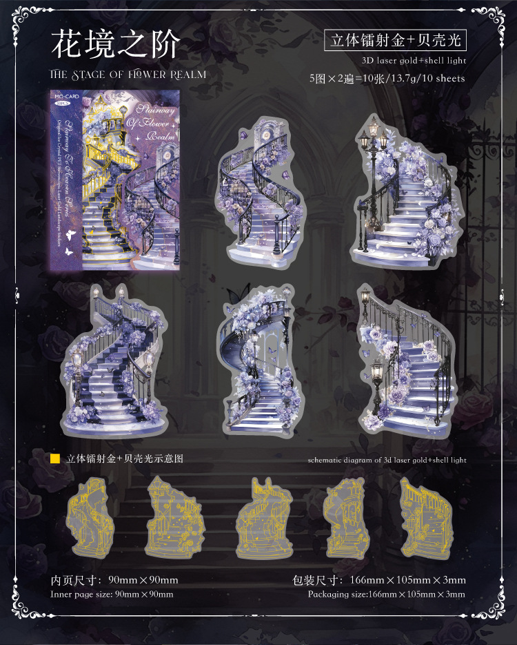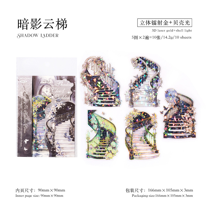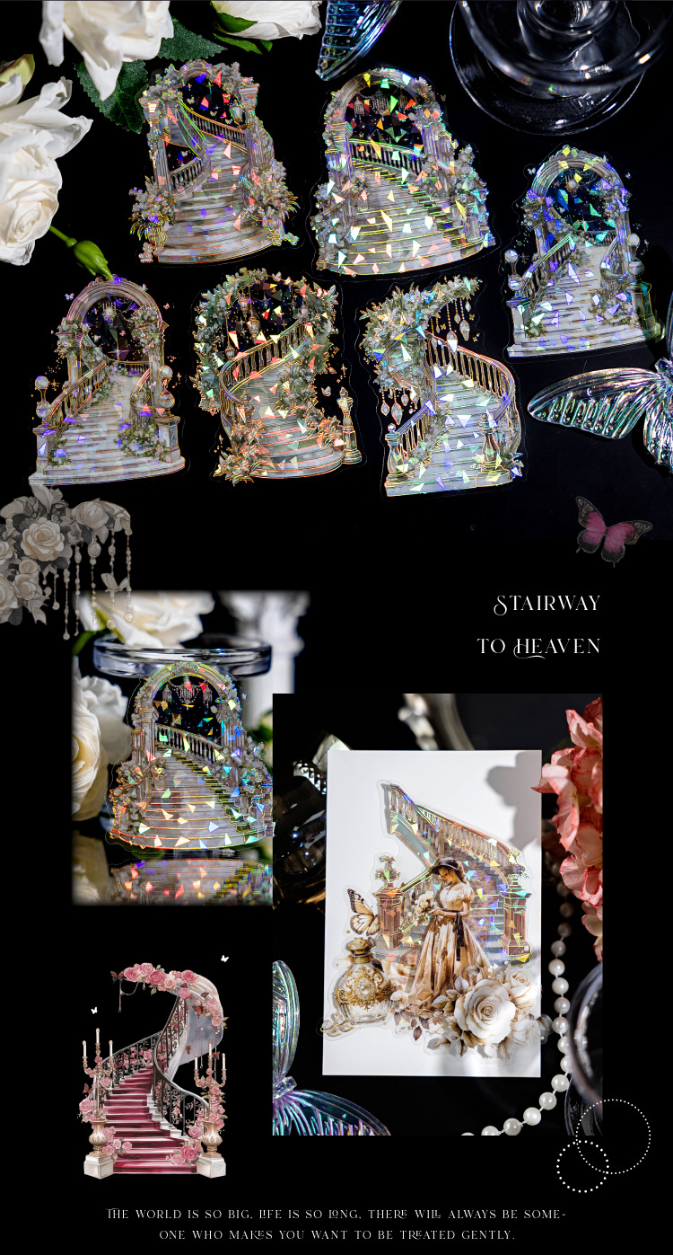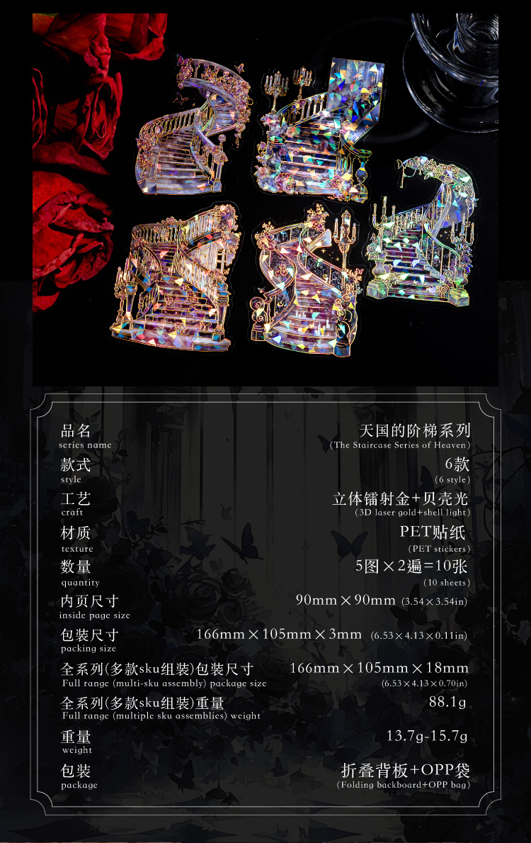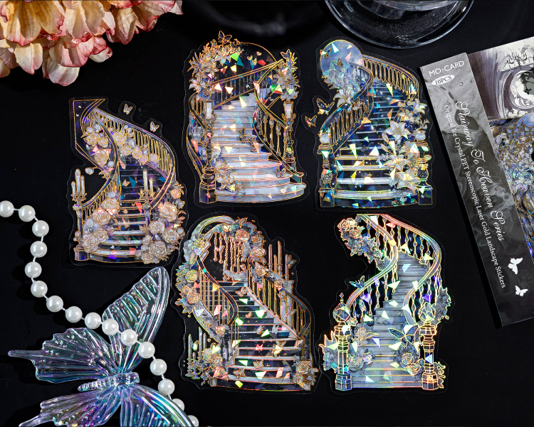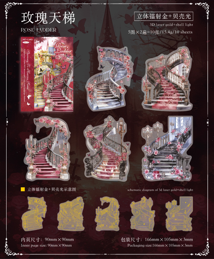 모 잉크 얼음 크리스탈 PET 스테레오 레이저 골드 스티커-천국의 사다리 시리즈 장미 사다리 등 10 에서 6
